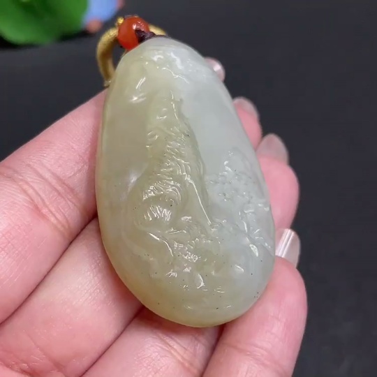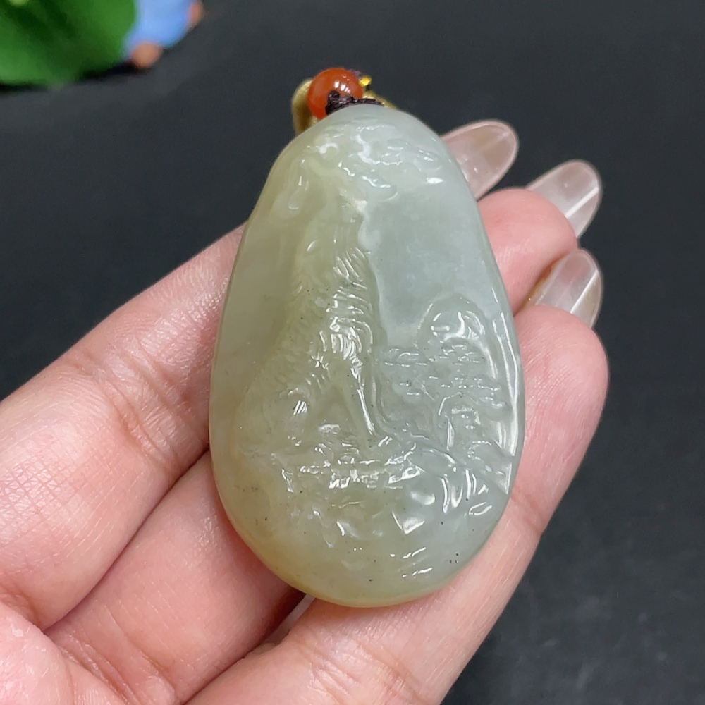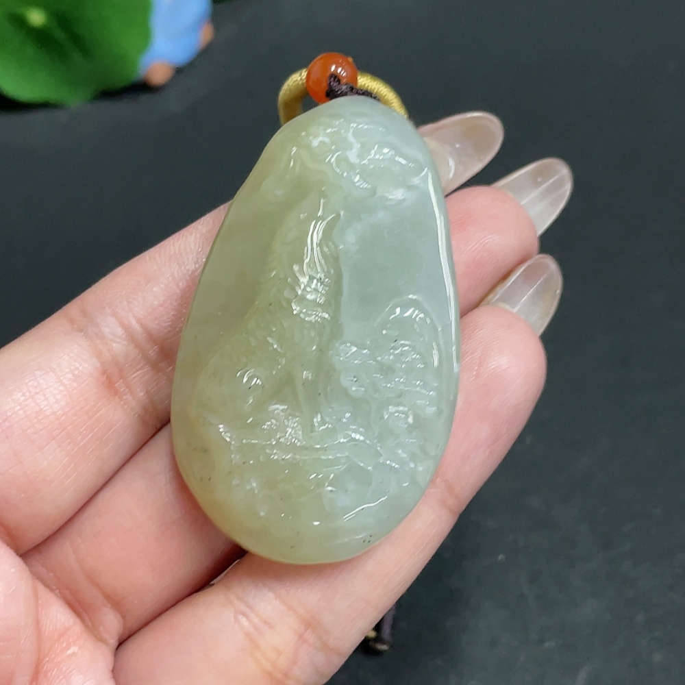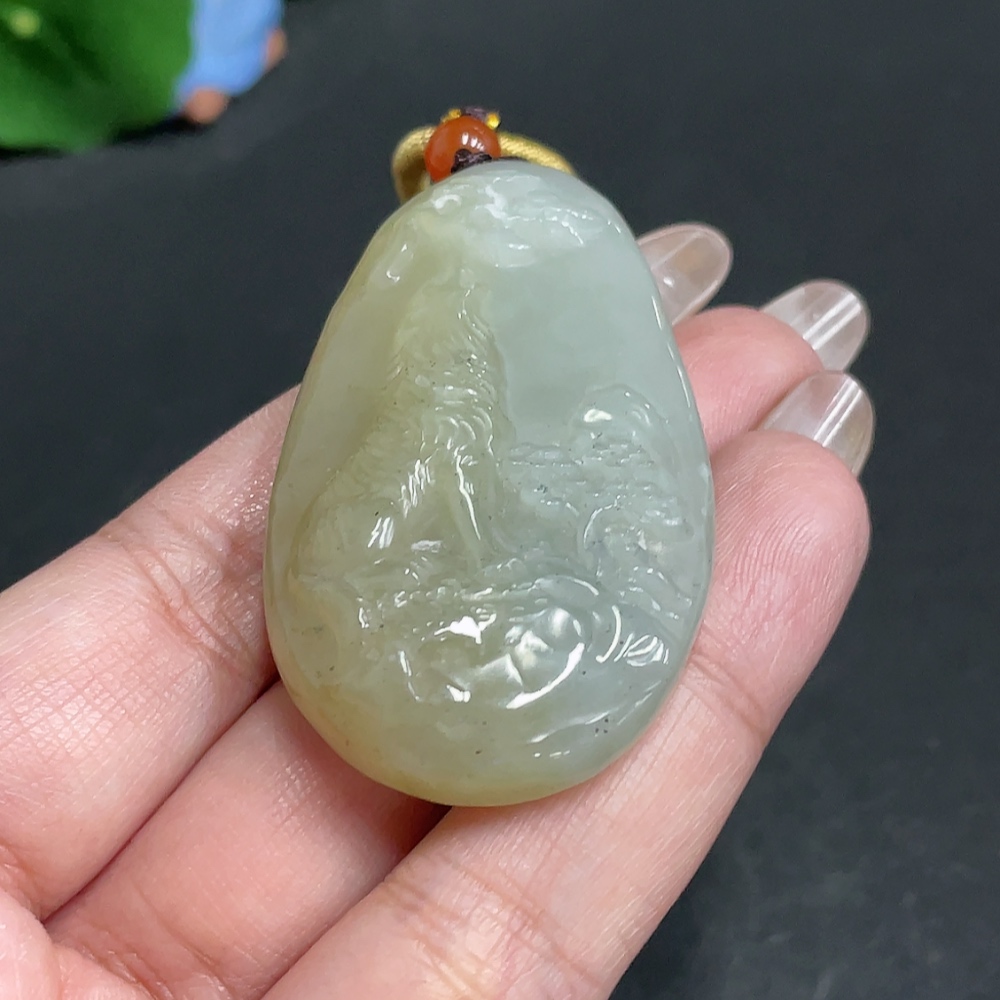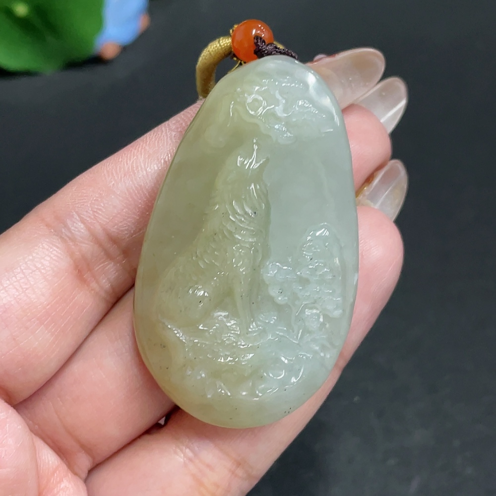 Hetian Jade Pendant Wolf Beads Not Hetian Jade Total Weight Approx. [with rope] 36.3g