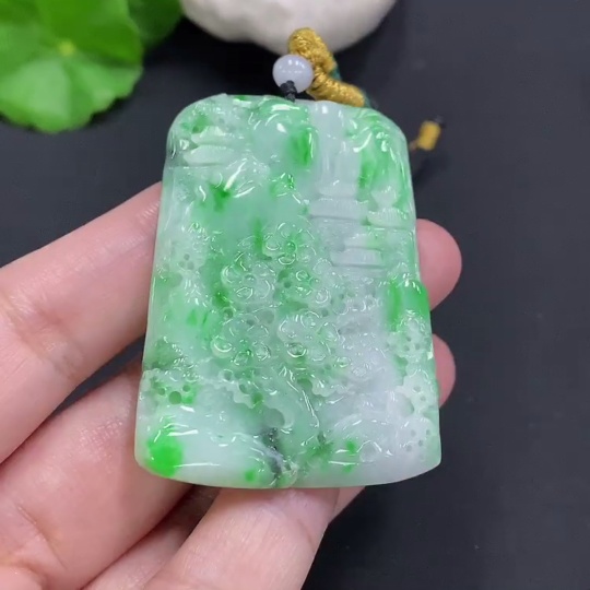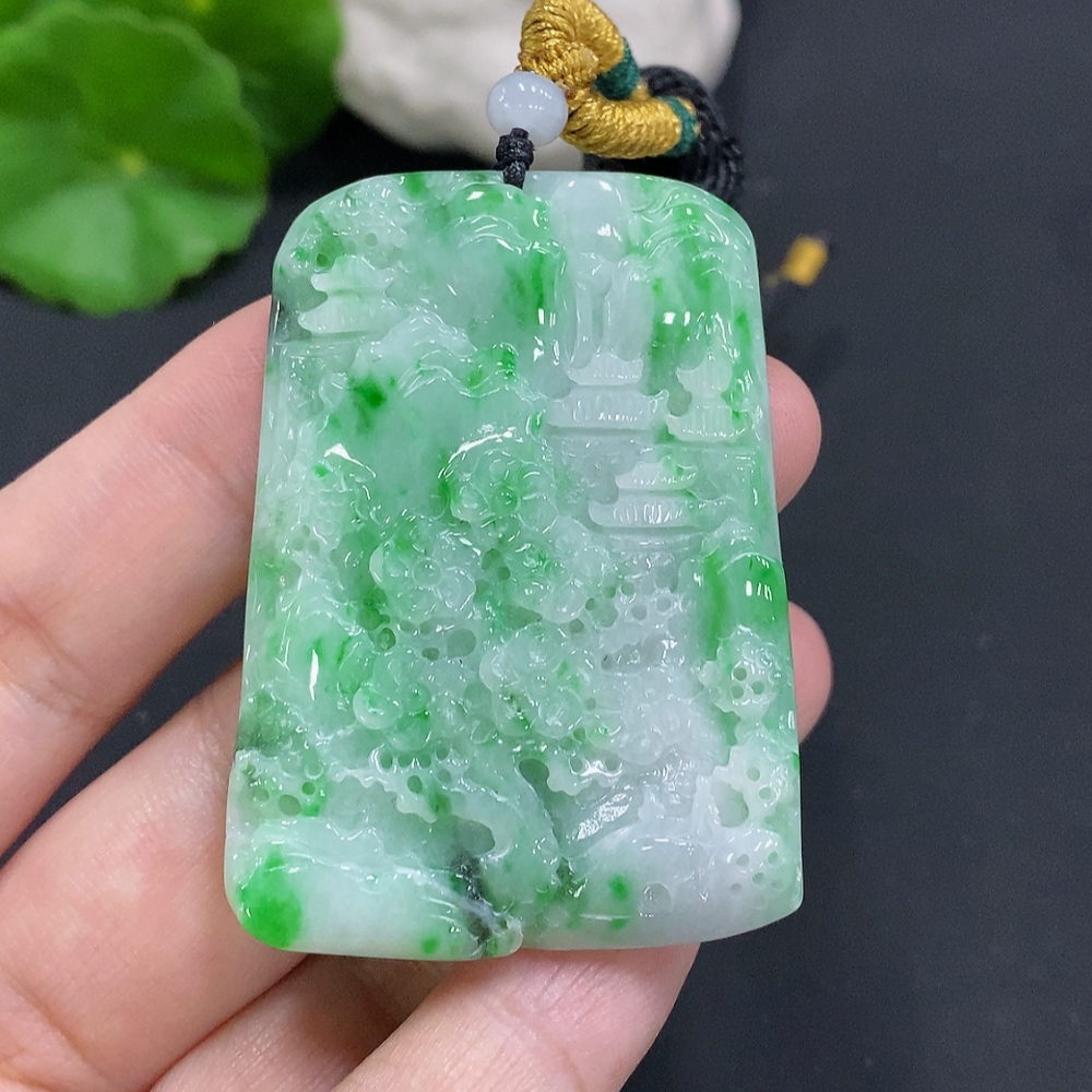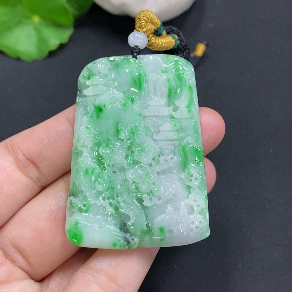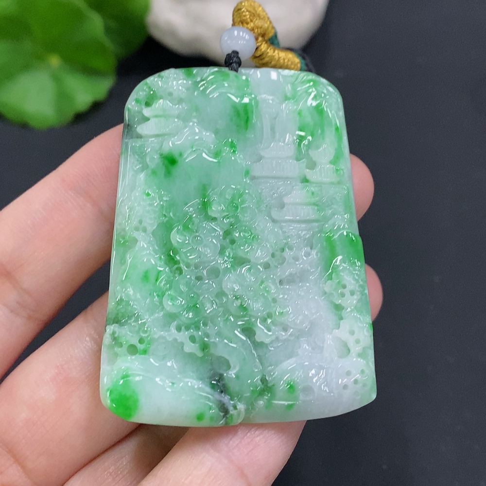 Jadeite Landscape Pendant with Cord, Total Weight Approx. 30.5g