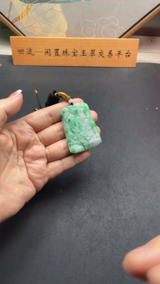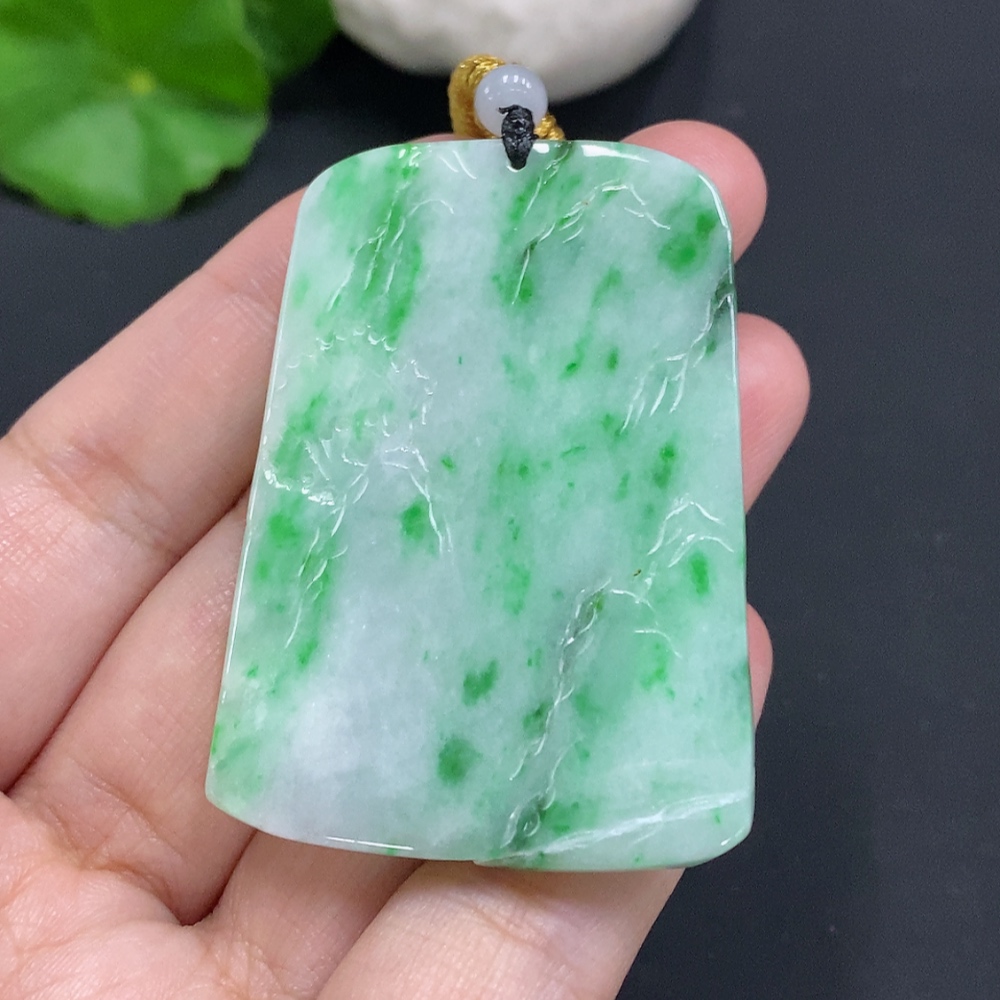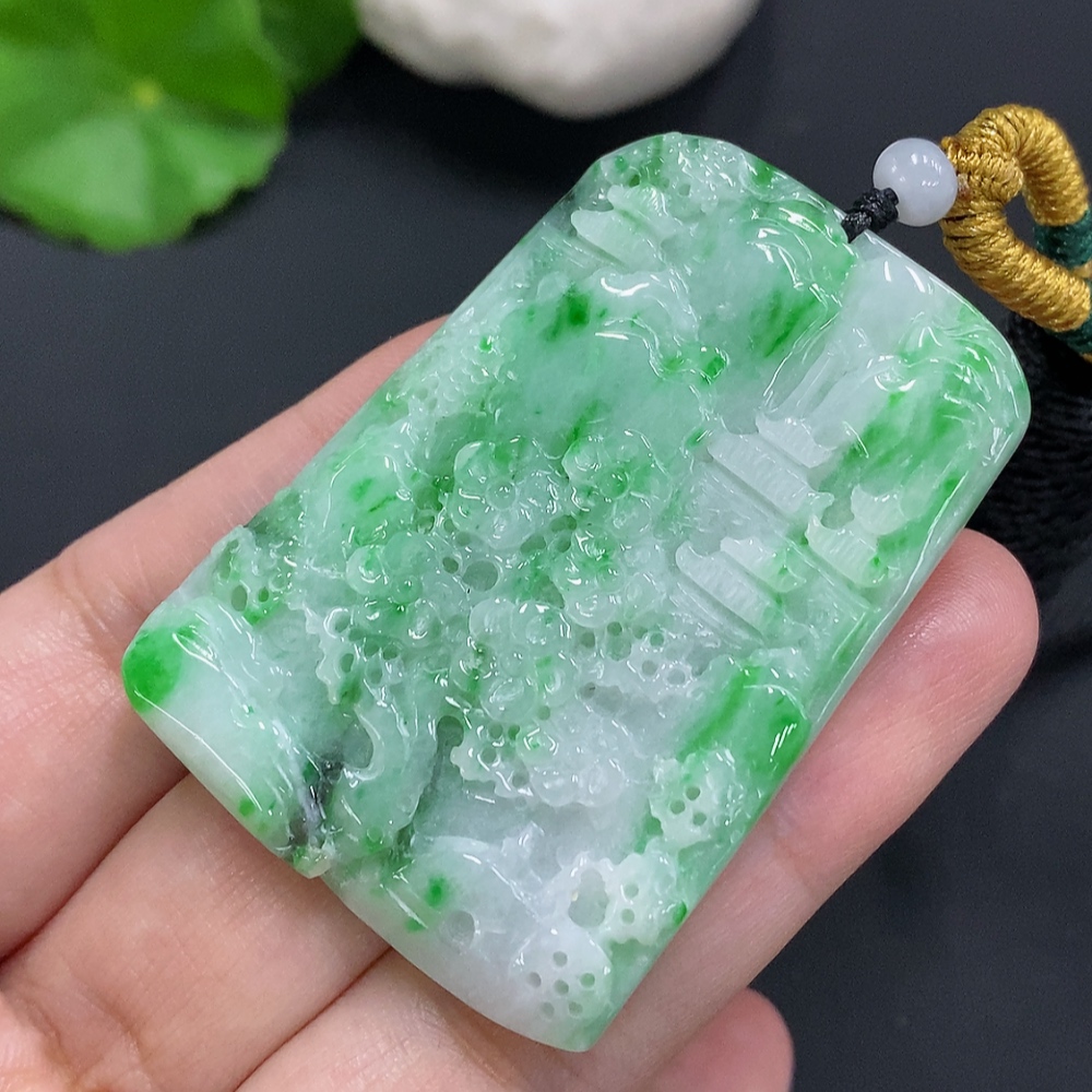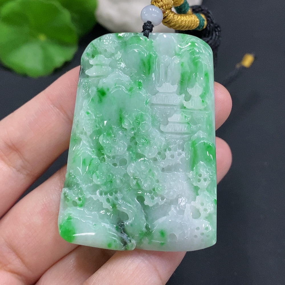 Jadeite Landscape Pendant with Cord, Total Weight Approx. 30.5g