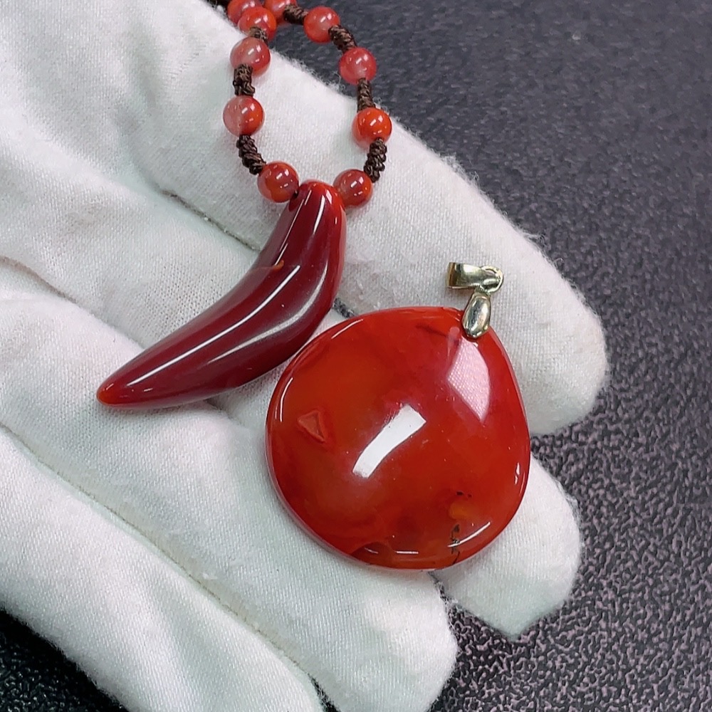 Red Agate Pendant, Non-Gold, Total Weight Approx. 22.35g, With Cord, Sell as a Lot