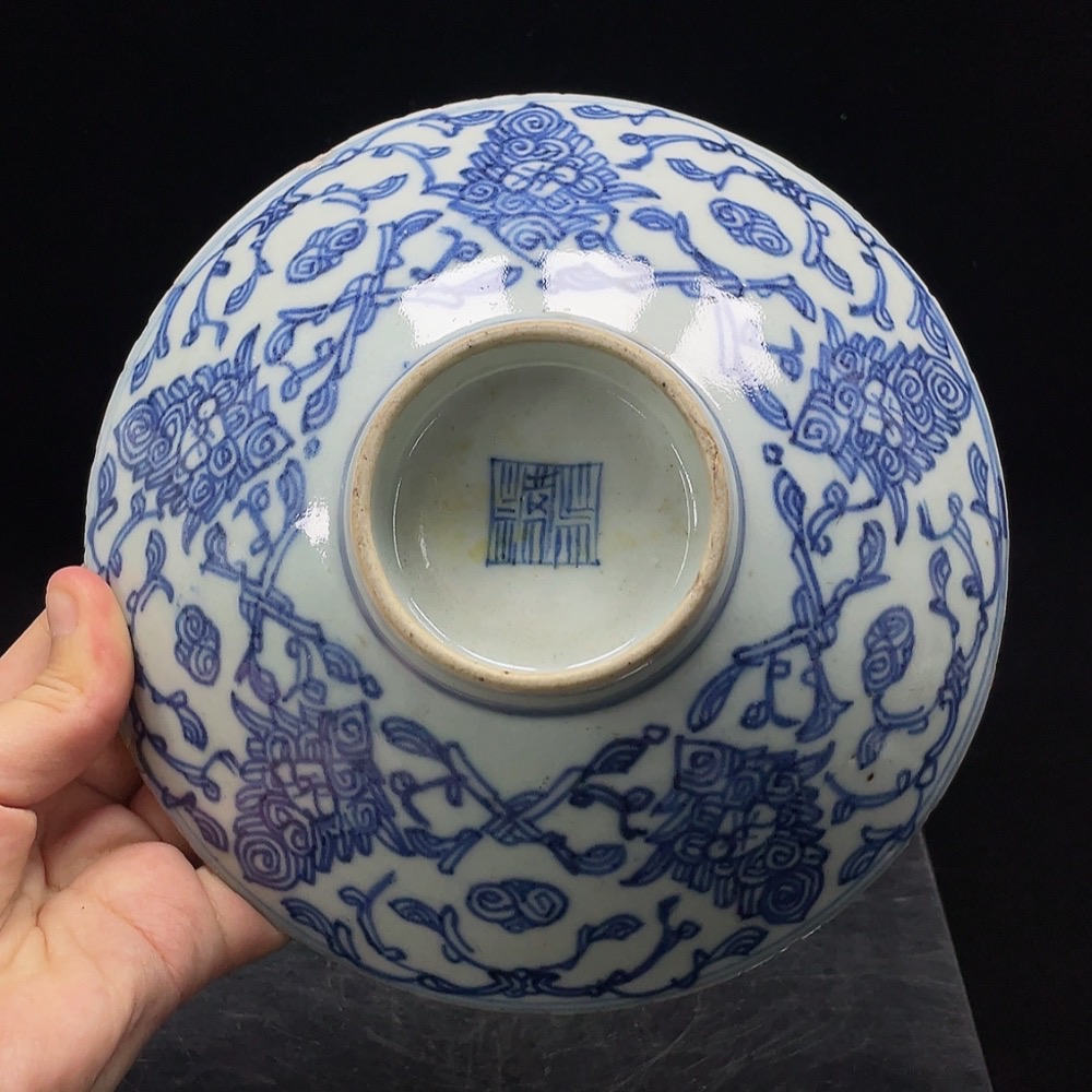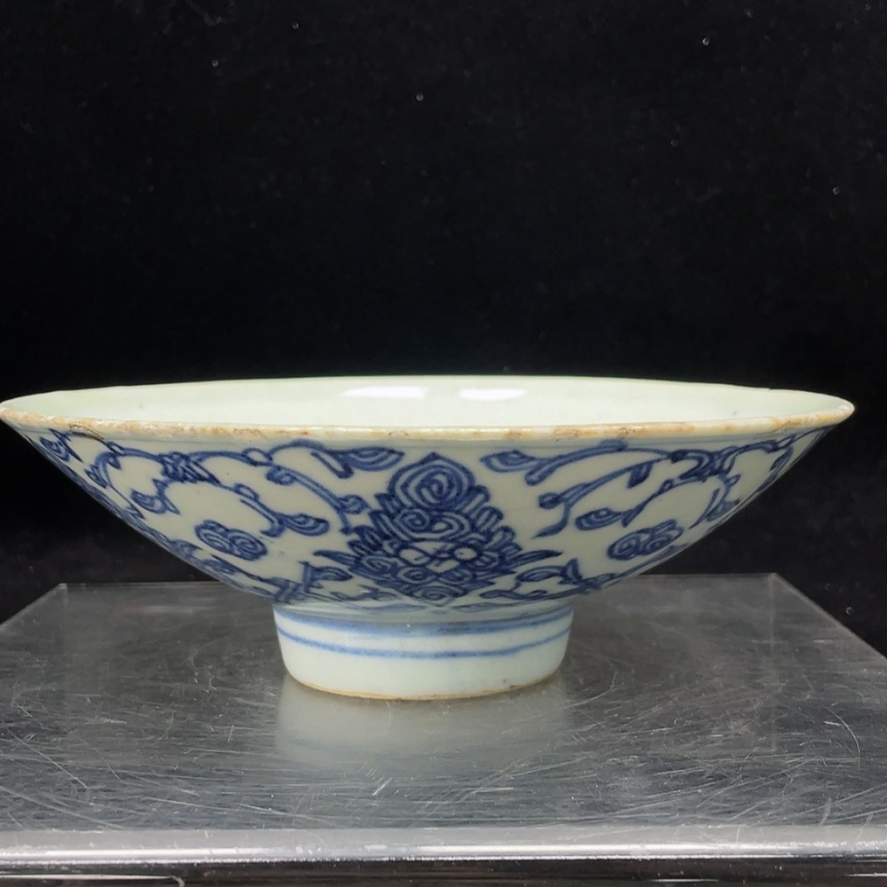 Porcelain Flaking Mid-Qing Blue and White Floral Bowl (subject to the actual item)