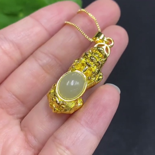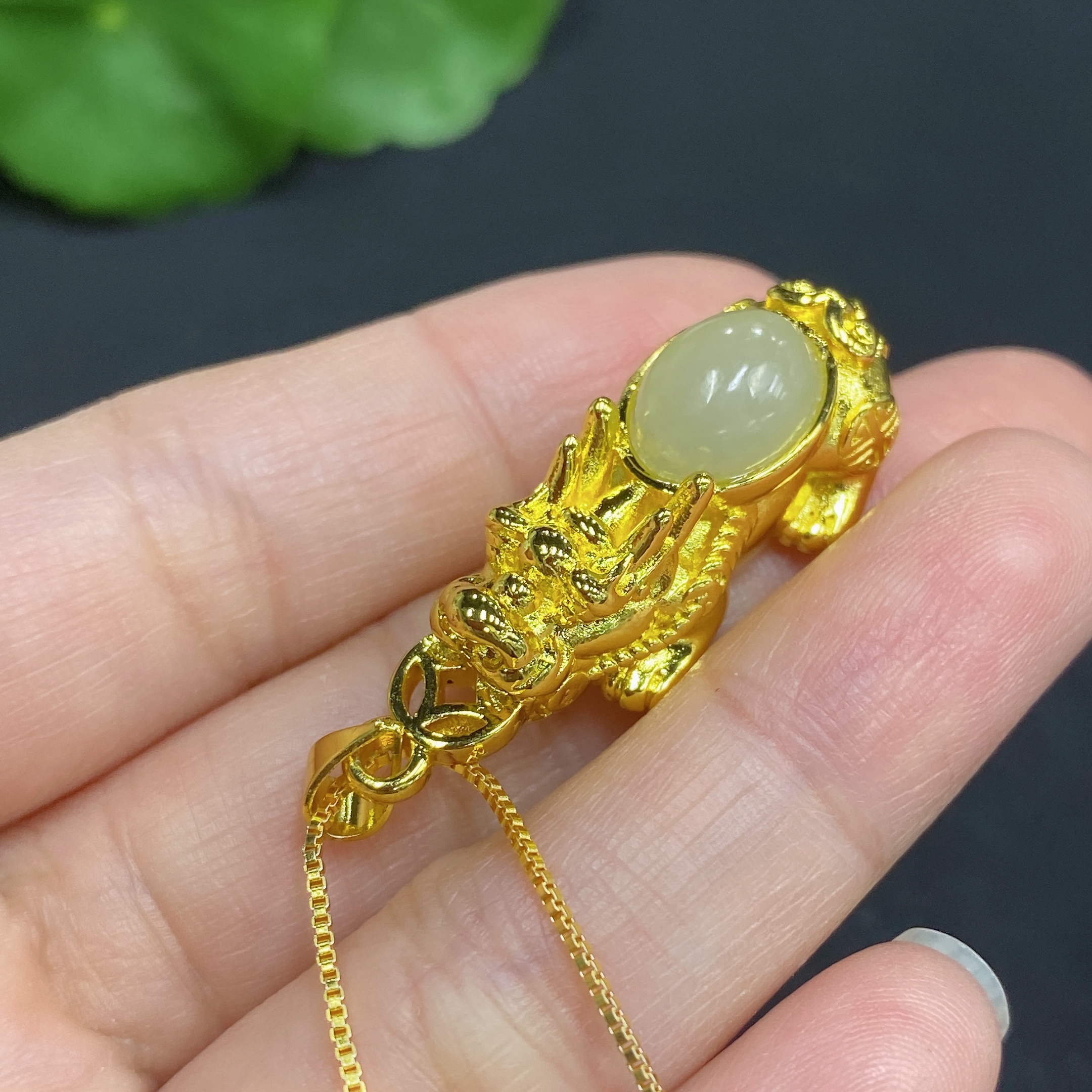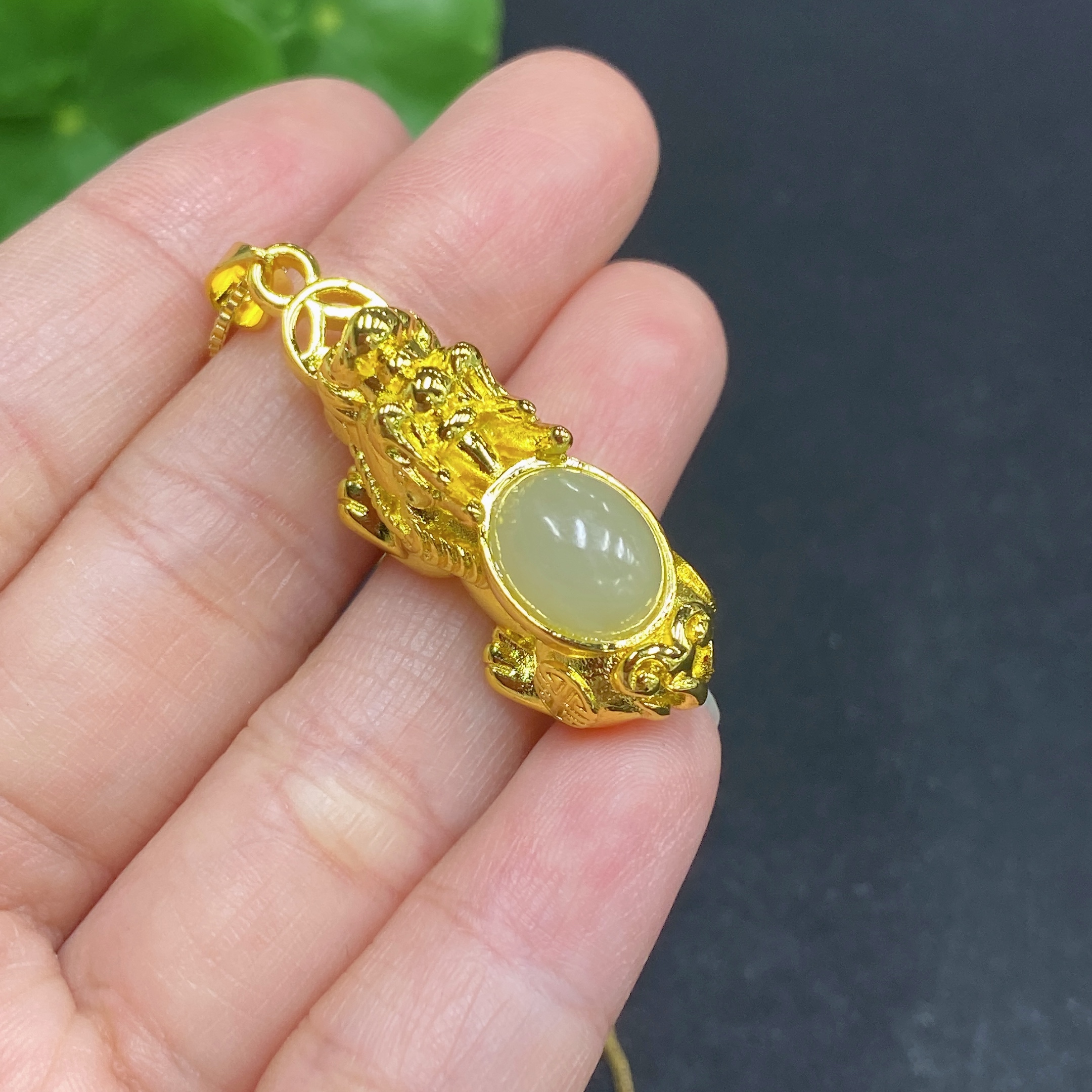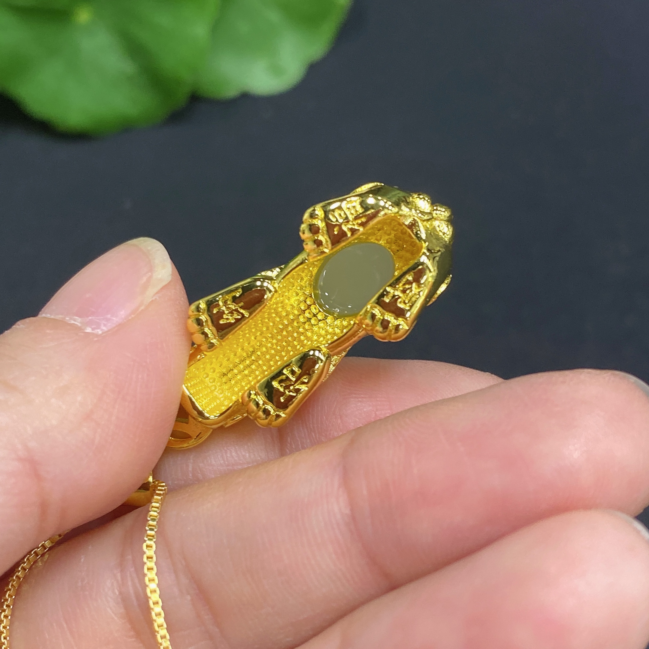 Hetian Jade Inlaid Pendant (Non-gold Inlaid, Non-gold Chain, Total Weight Approx. 11.5g Including Chain)