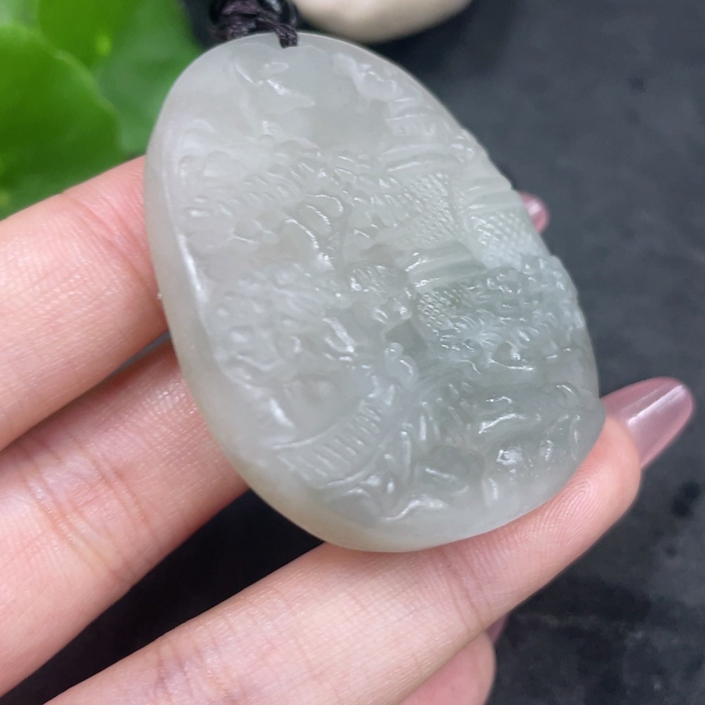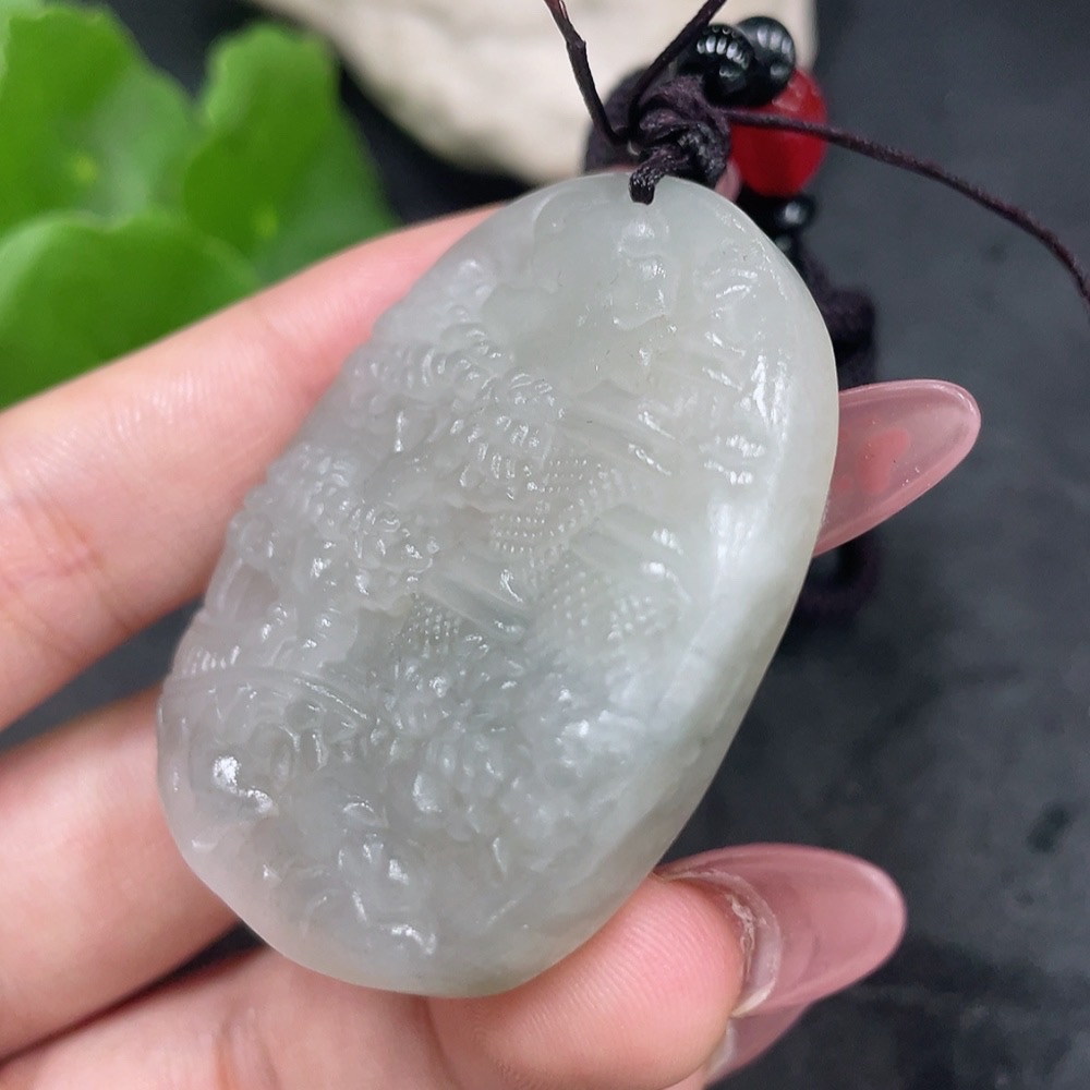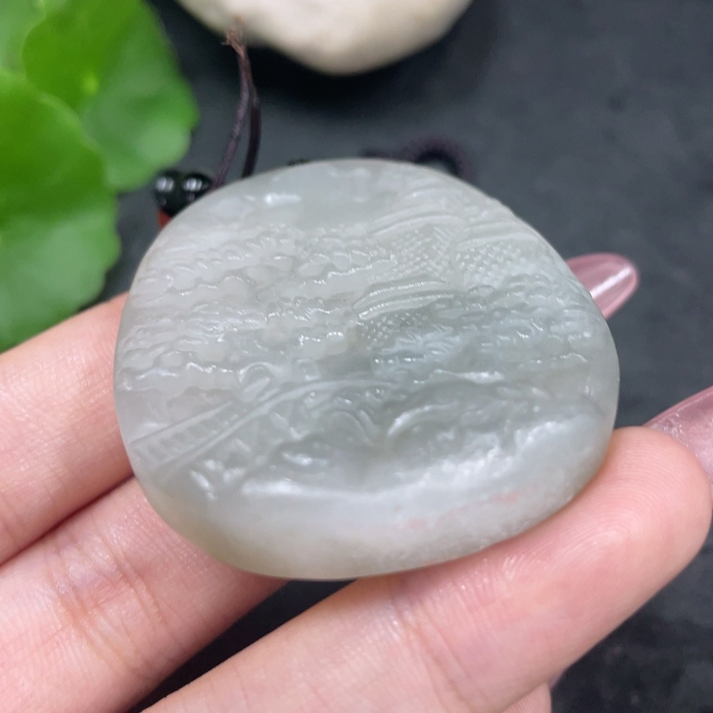 Hetian Jade Pendant - Landscape Plaque with Other Mineral Components, Non-Hetian Jade Beads, Total Weight (Including Rope) Approx. 46.2g