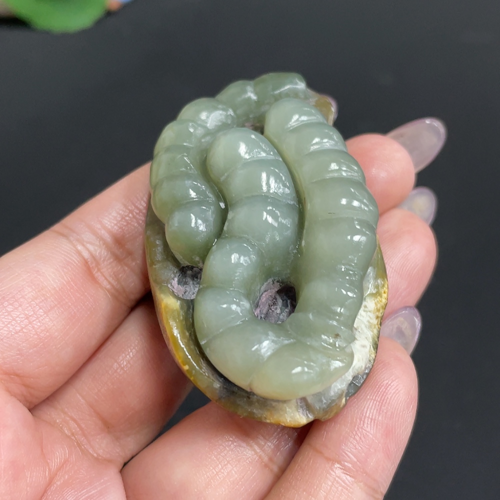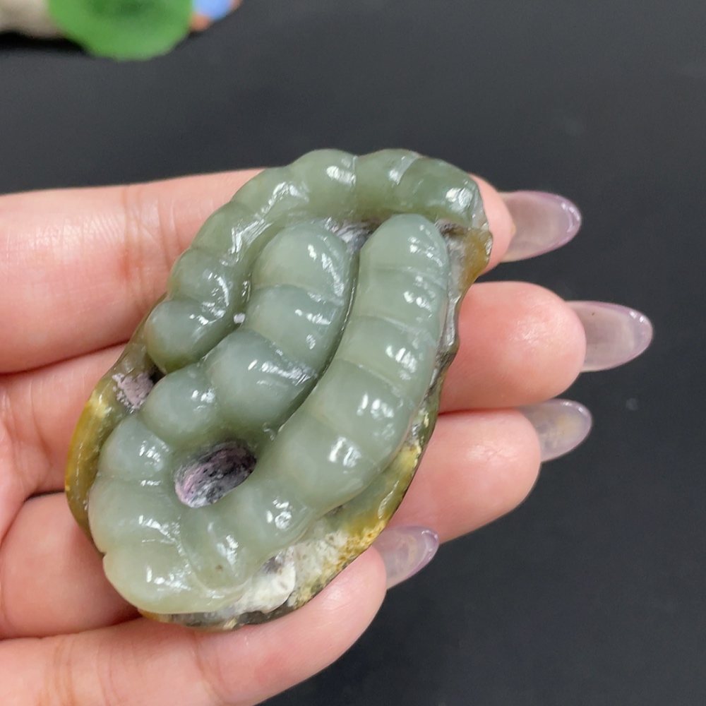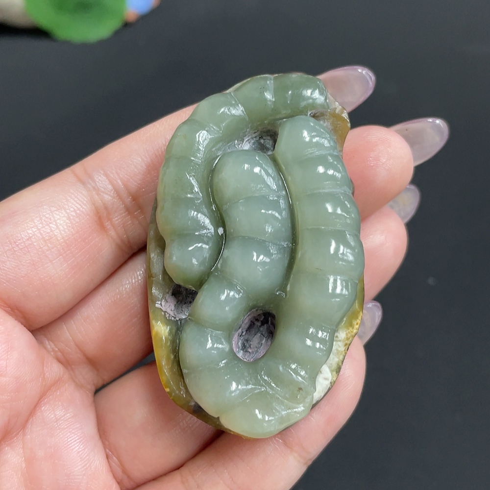 Hetian Jade Pendant - Silkworm Larva, Total Weight Approx. 59.4g, Undetermined Skin Color Origin