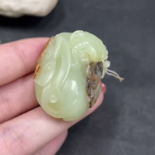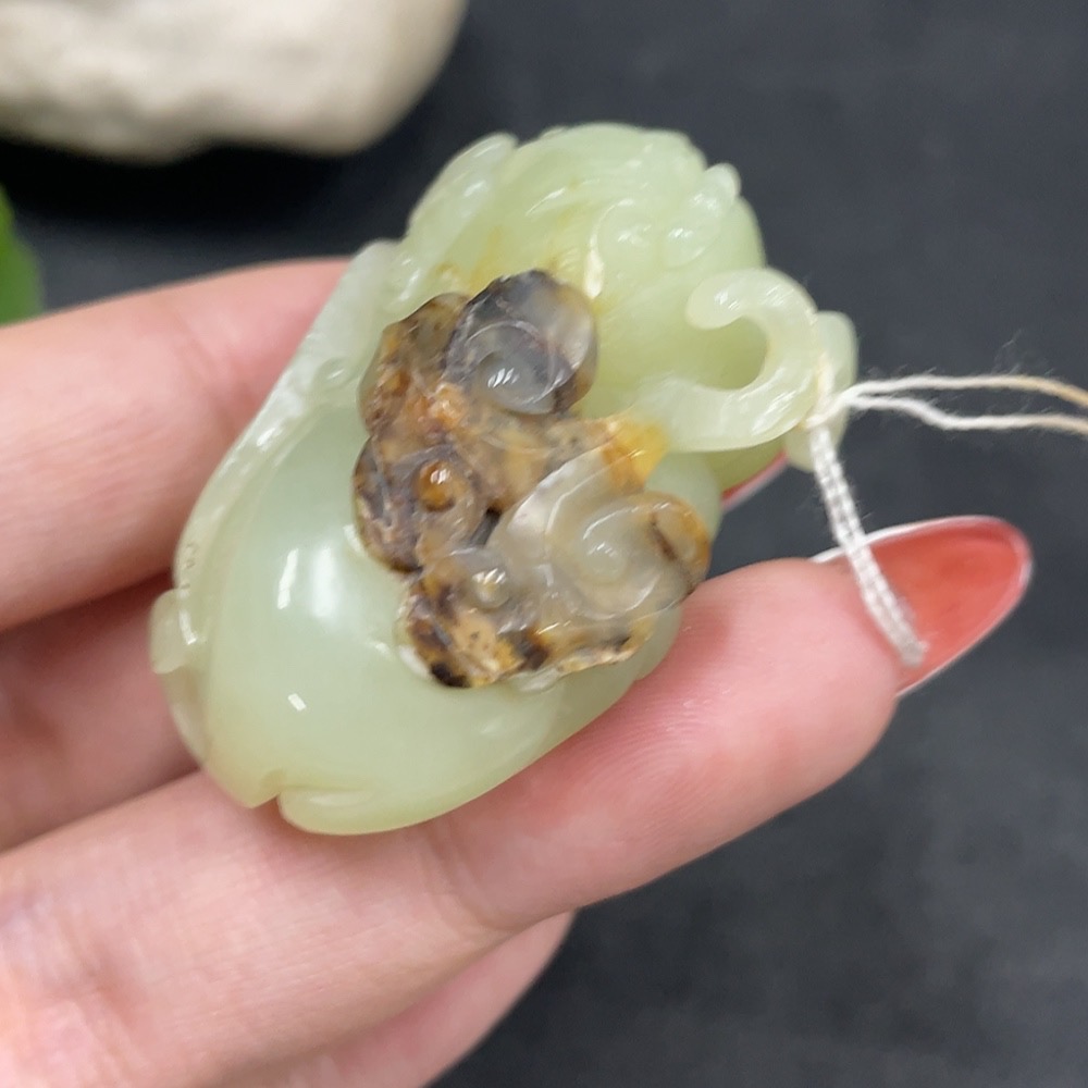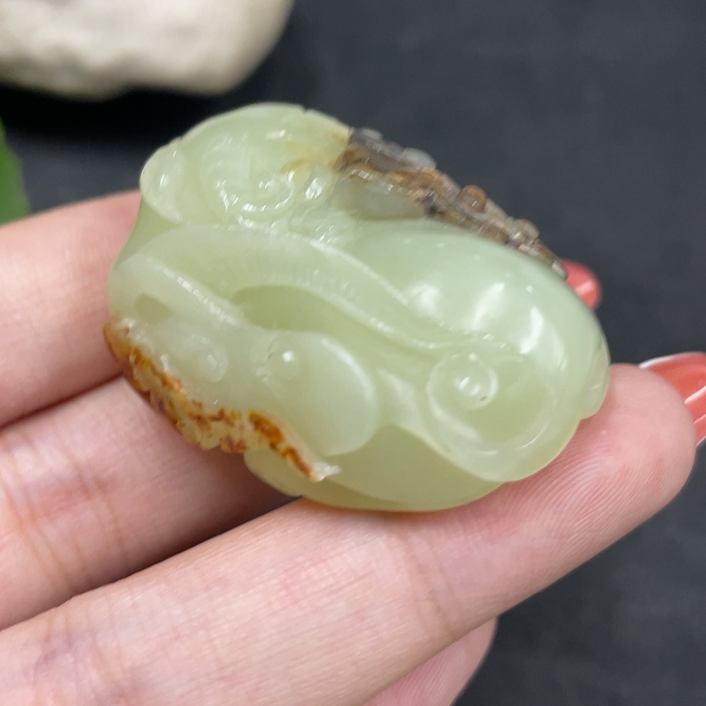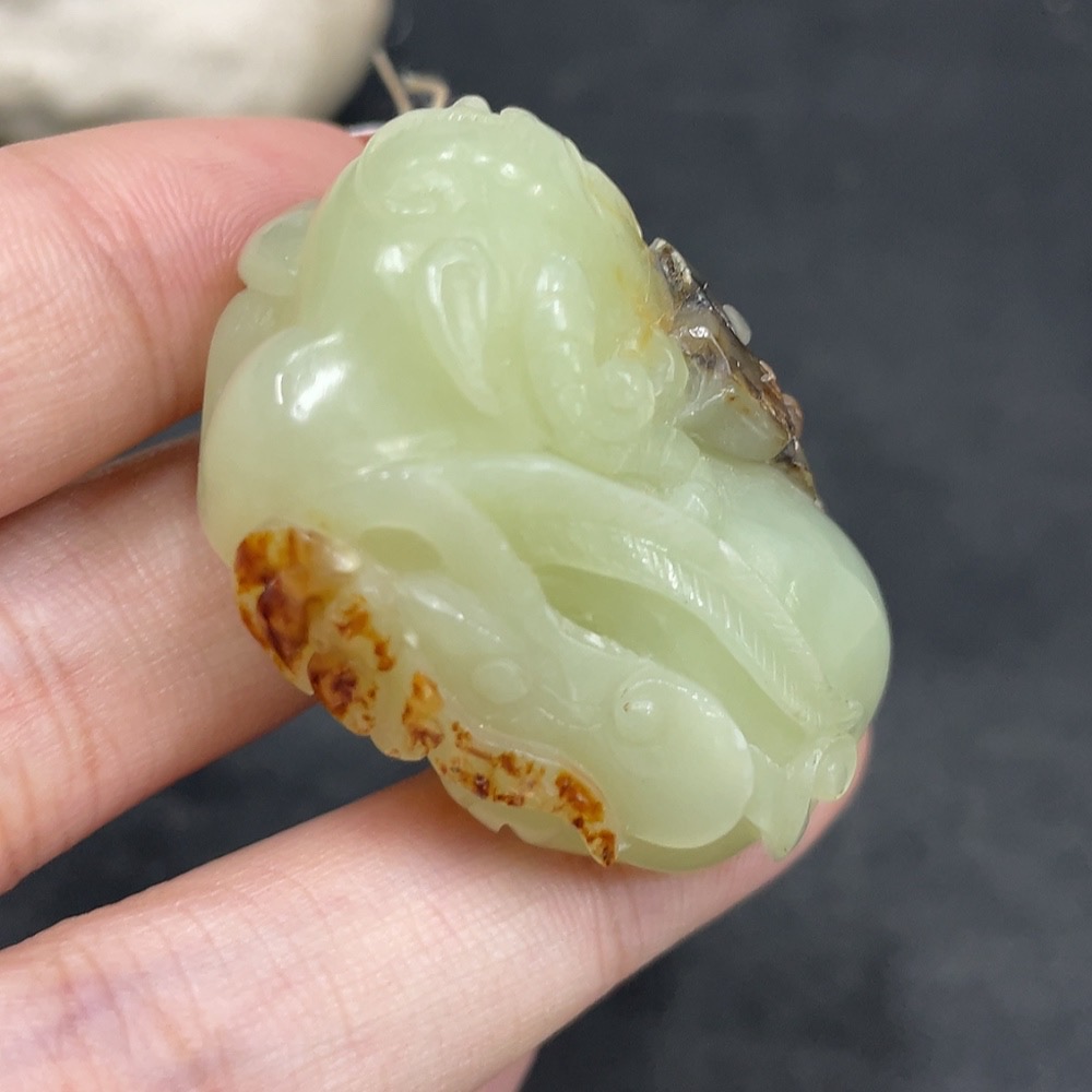 Hetian Jade Pendant, Auspicious Beast, Undetermined Skin Color Origin, Total Weight Approx. 37.8g