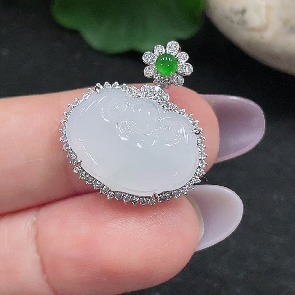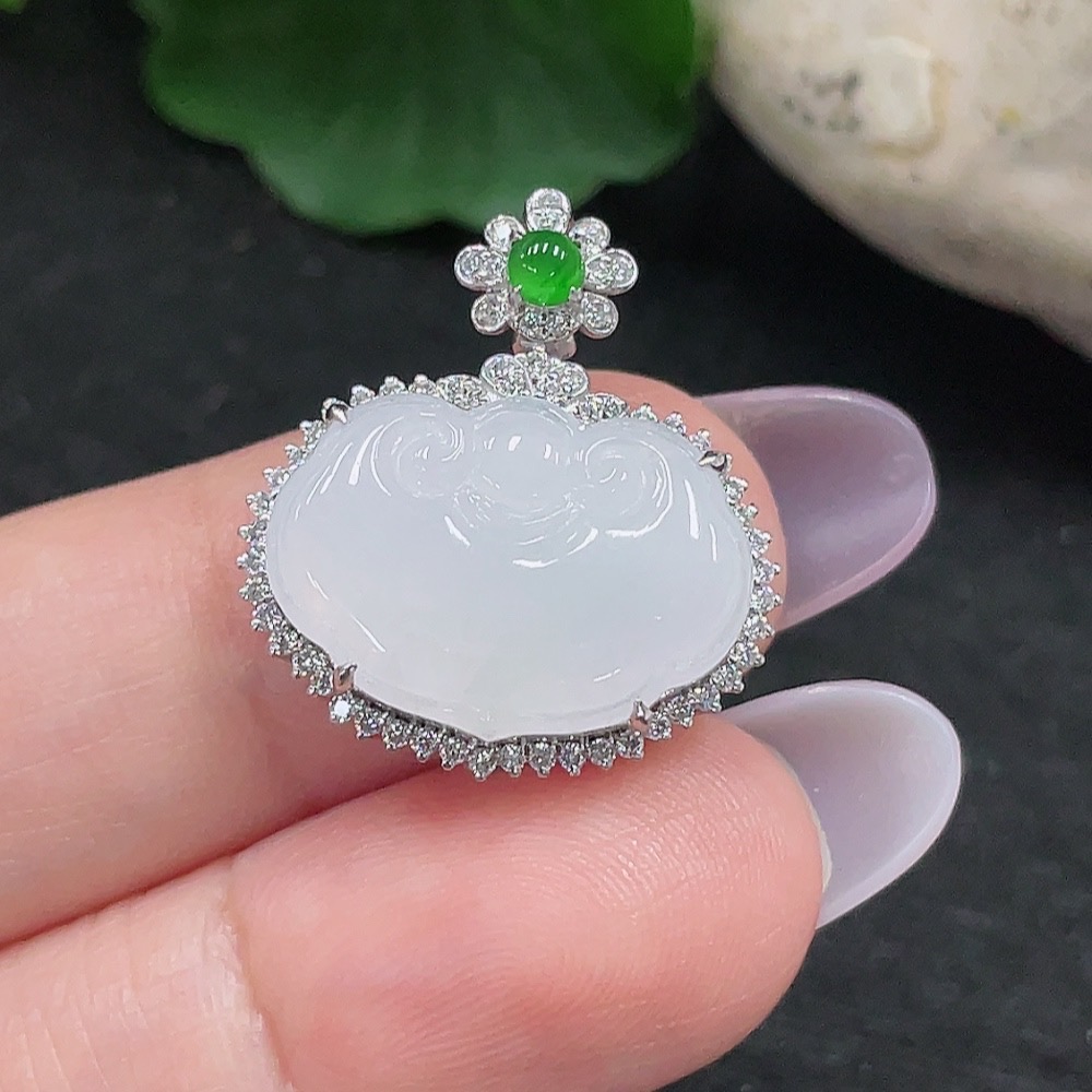 Jadeite Ruyi Inlaid Pendant 37% Gold Total Weight Approx. 3.4g (Non-Diamond)