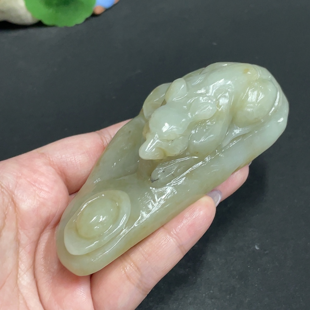 Hetian Jade Handheld Carving "Wealth-Bringing Mouse" Approx. 199.3g