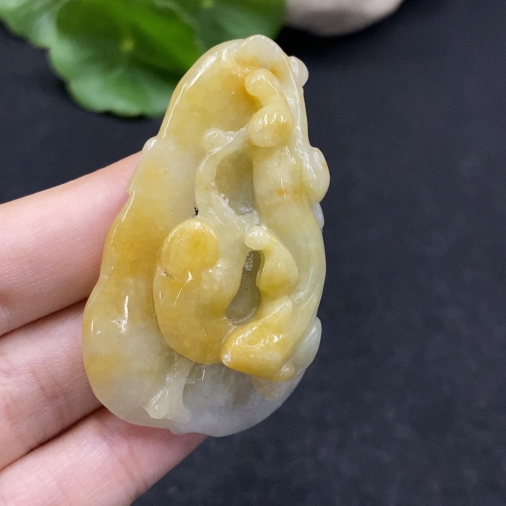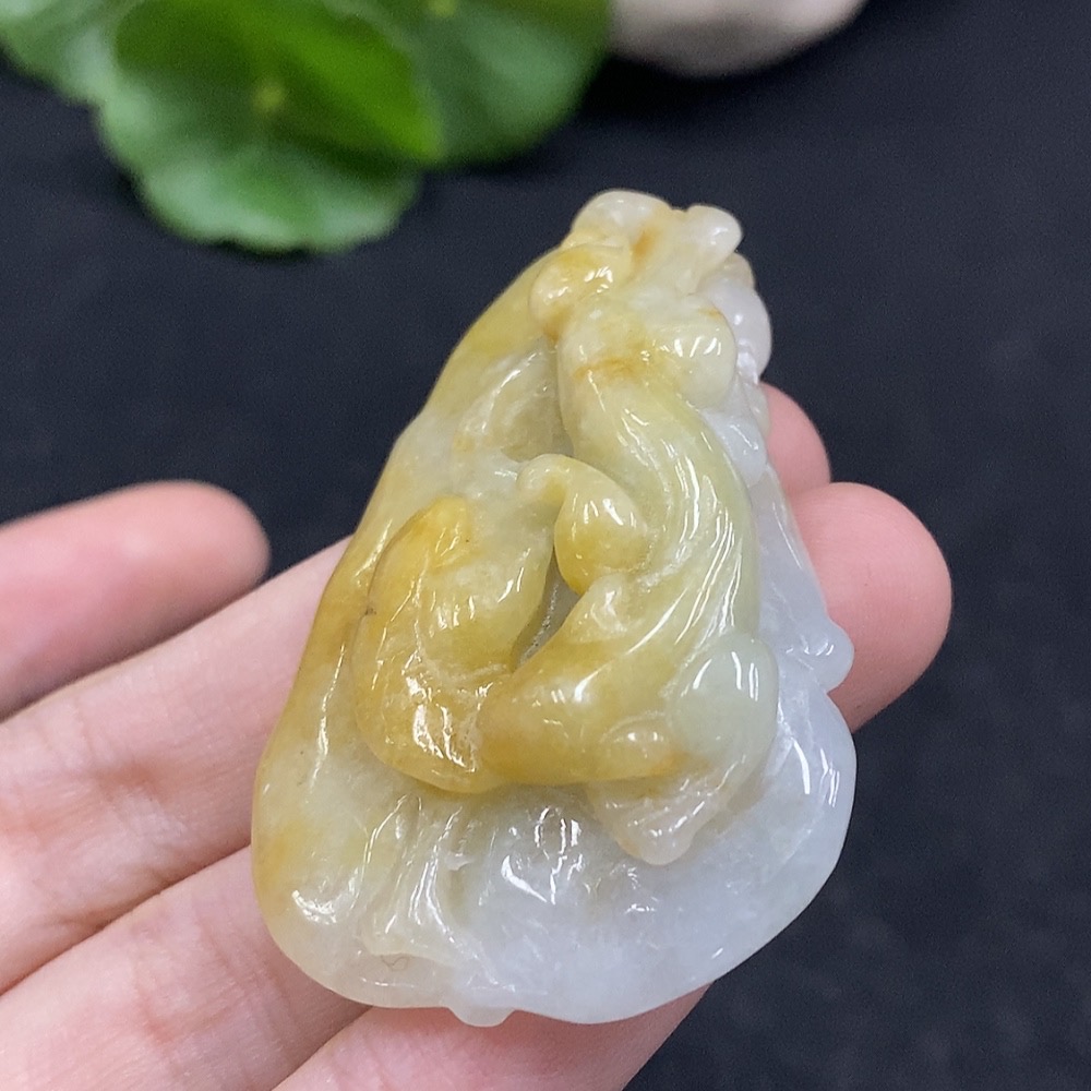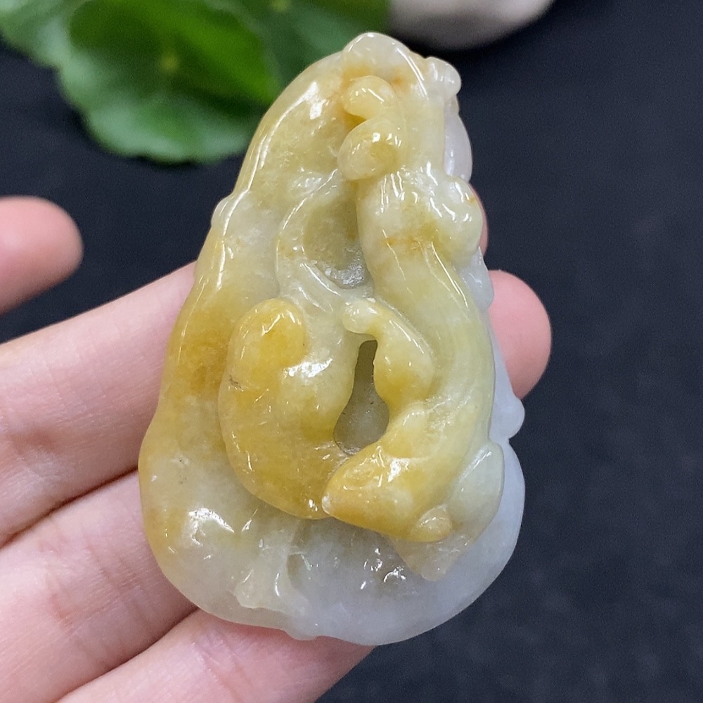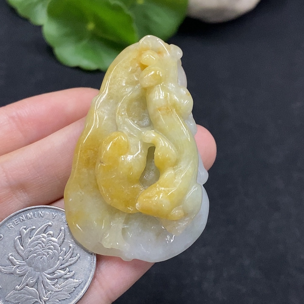 Jadeite Pi Xiu Pendant, Yellow Part Color Origin Undetermined, Total Weight About 25.52g