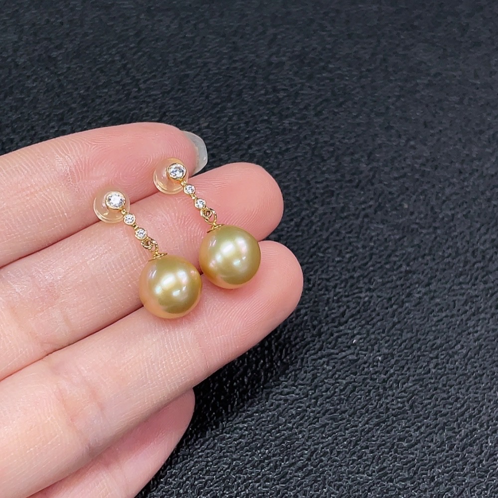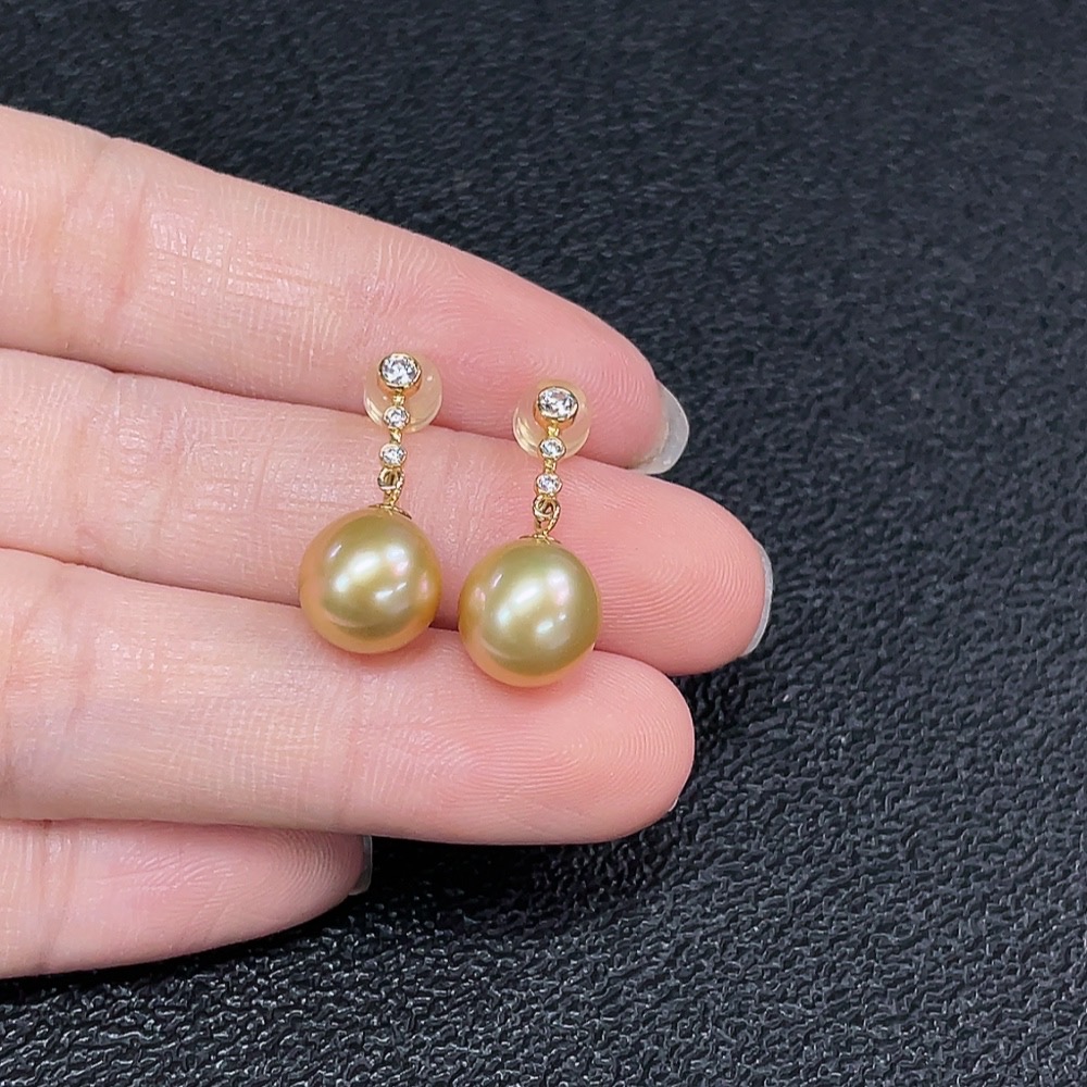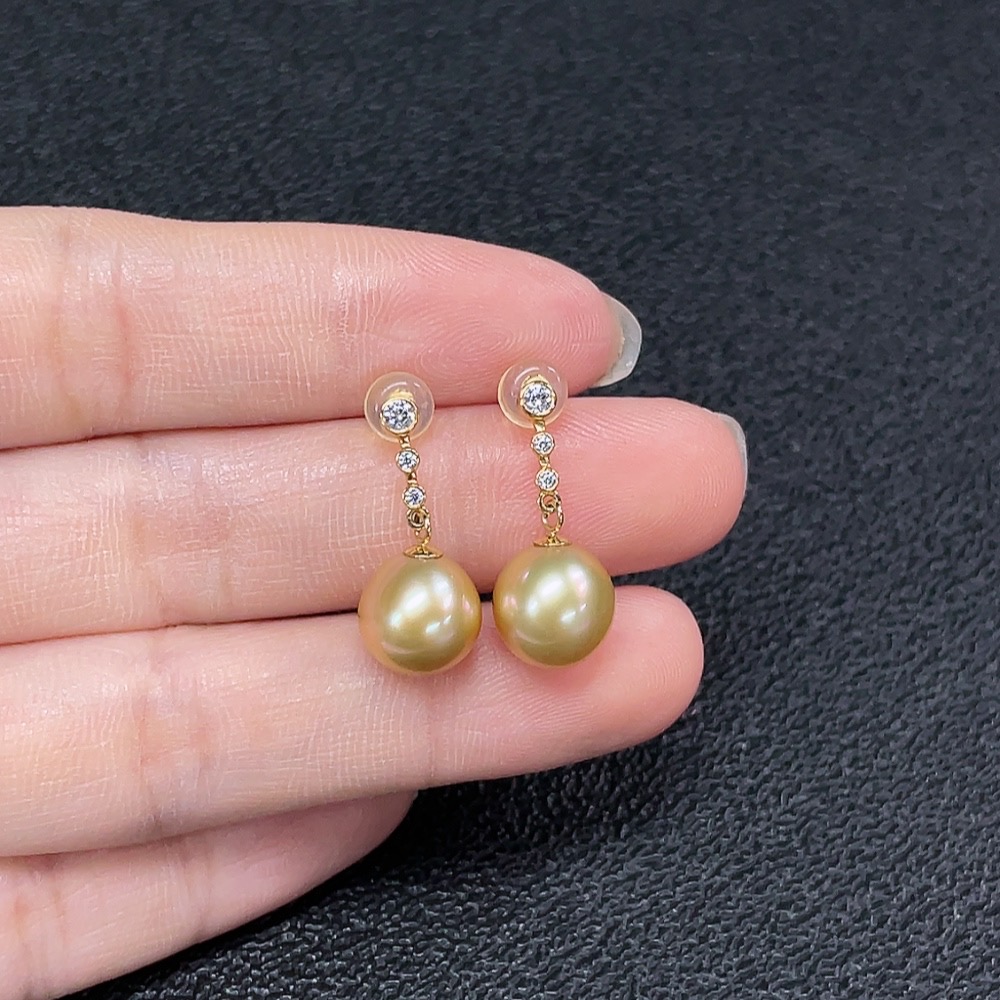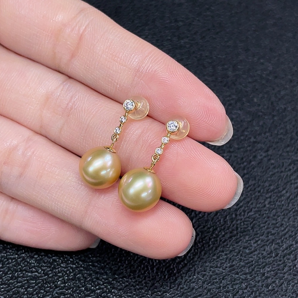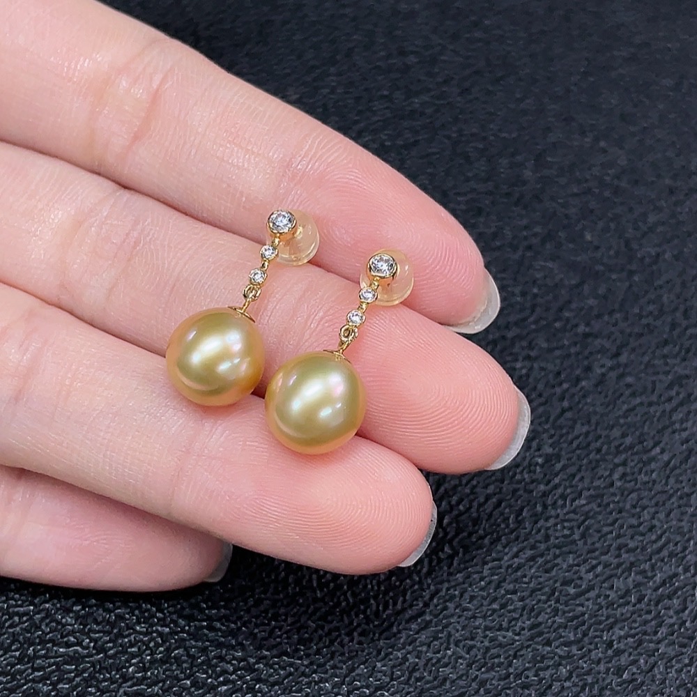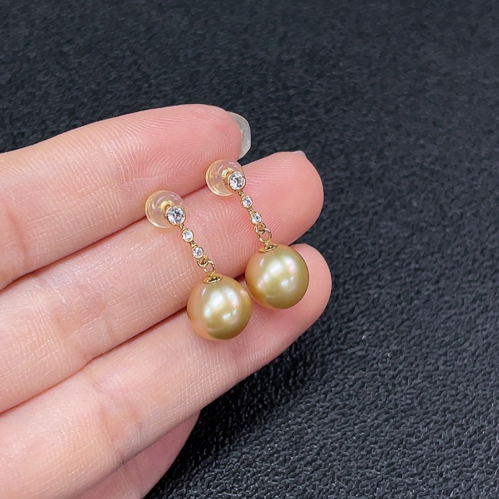 18K Sea Water Pearl Earrings, Color Origin Undetermined, Total Weight Approx. 2.84g, Size 8.9mm