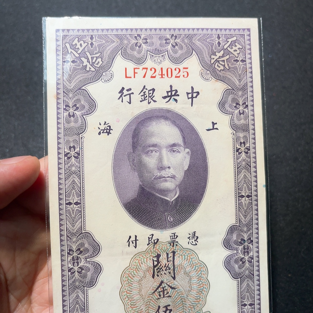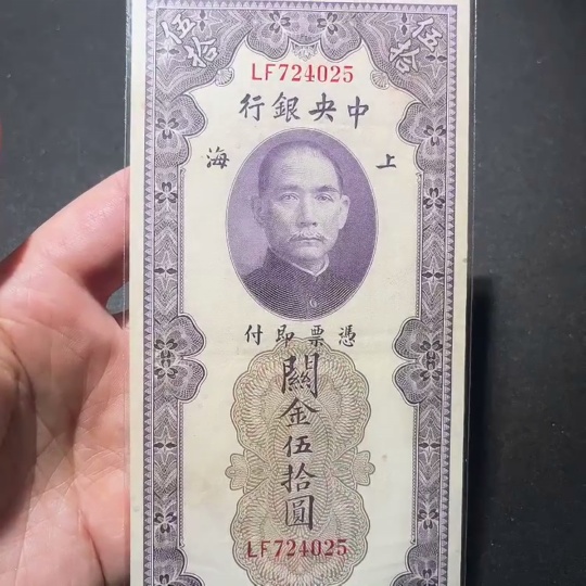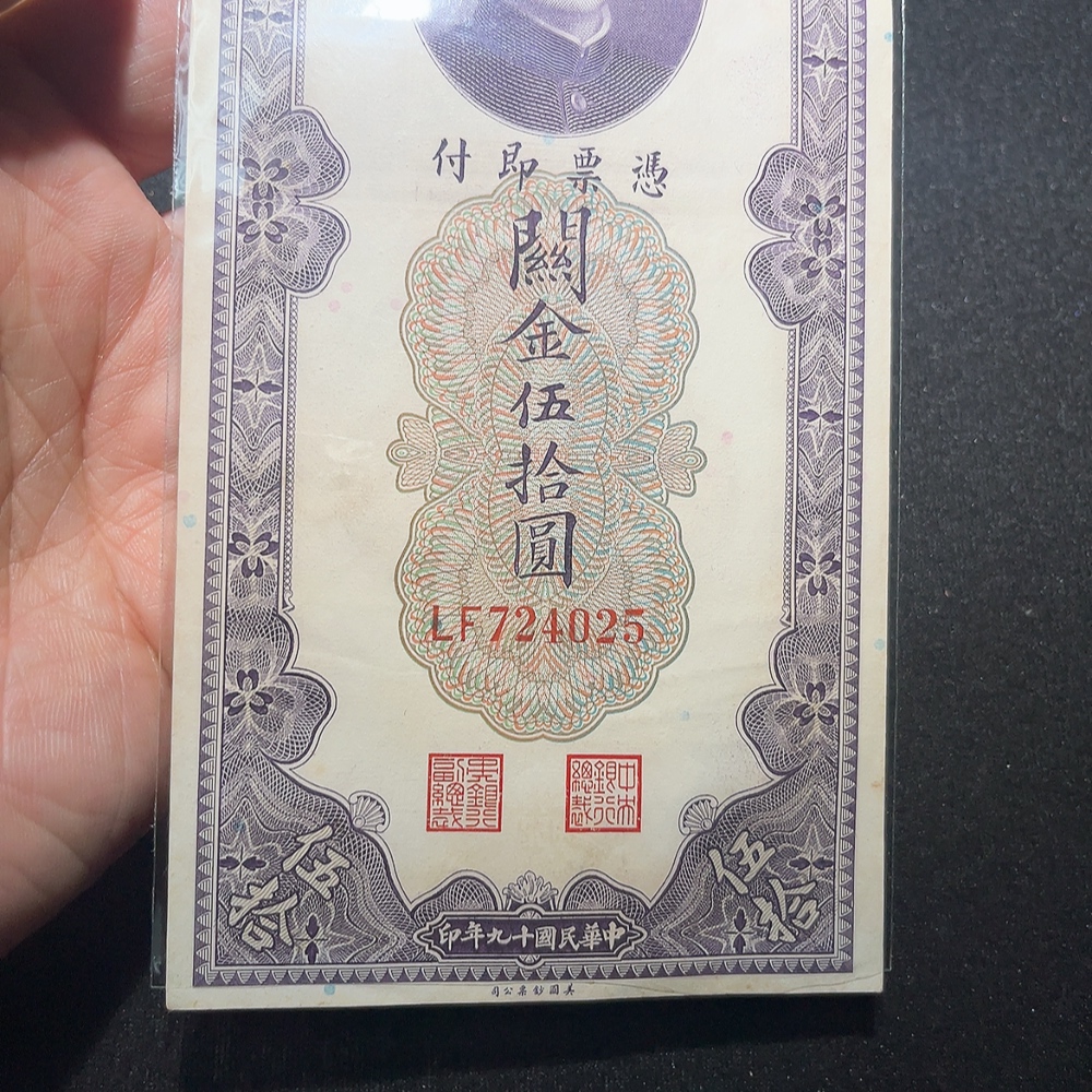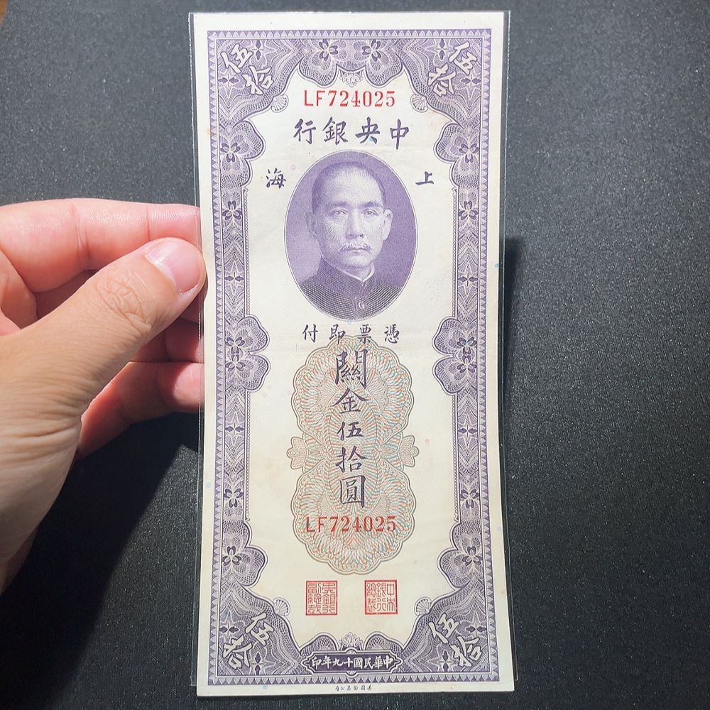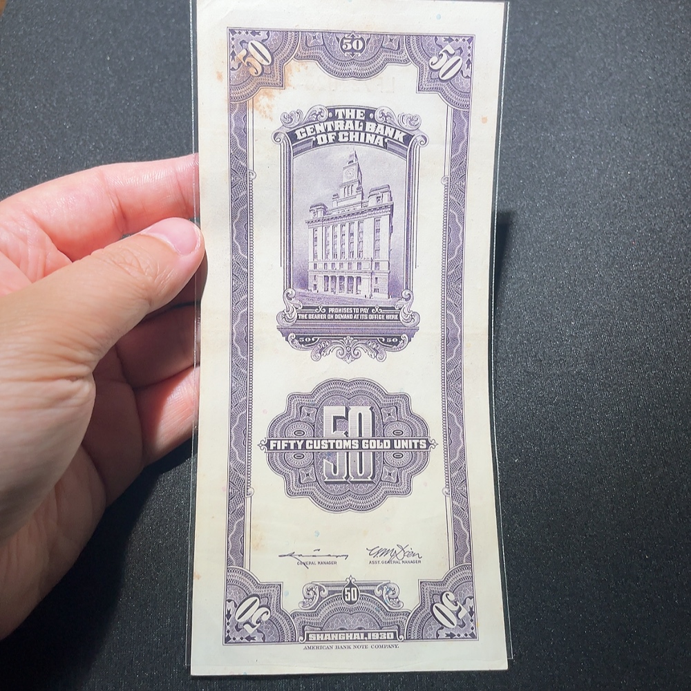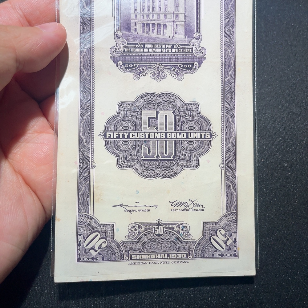 Republic of China 19th Year Customs Gold Unit Fifty Yuan Banknote