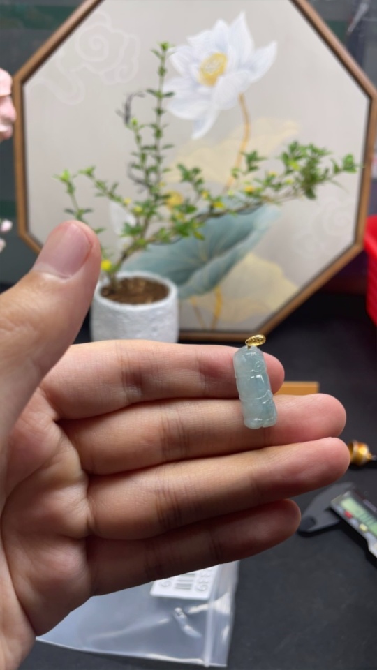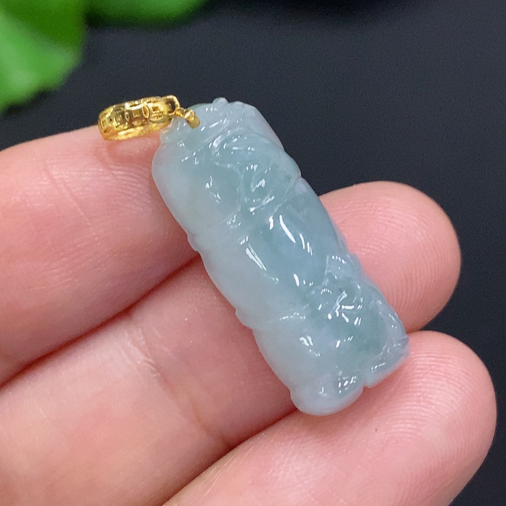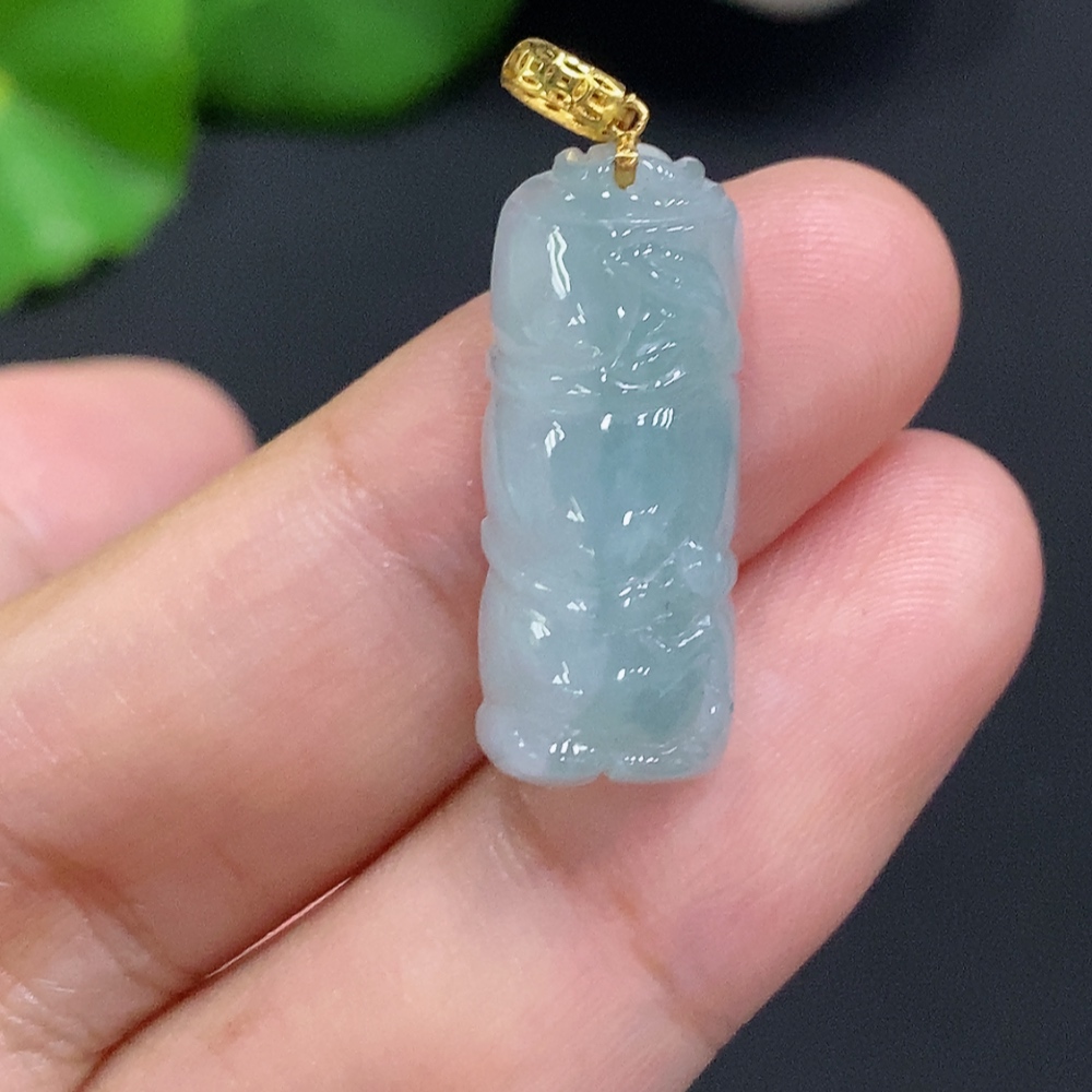 Jadeite Rising Higher Pendant with 18K Gold Clasp, Total Weight Approx. 3g
