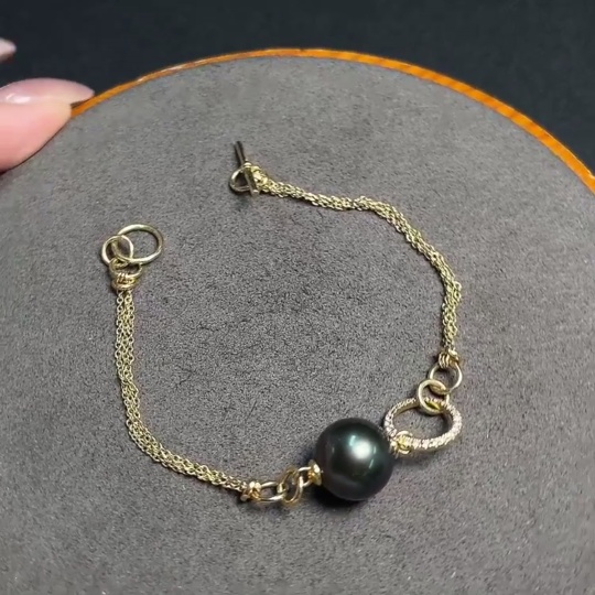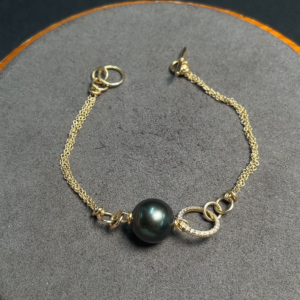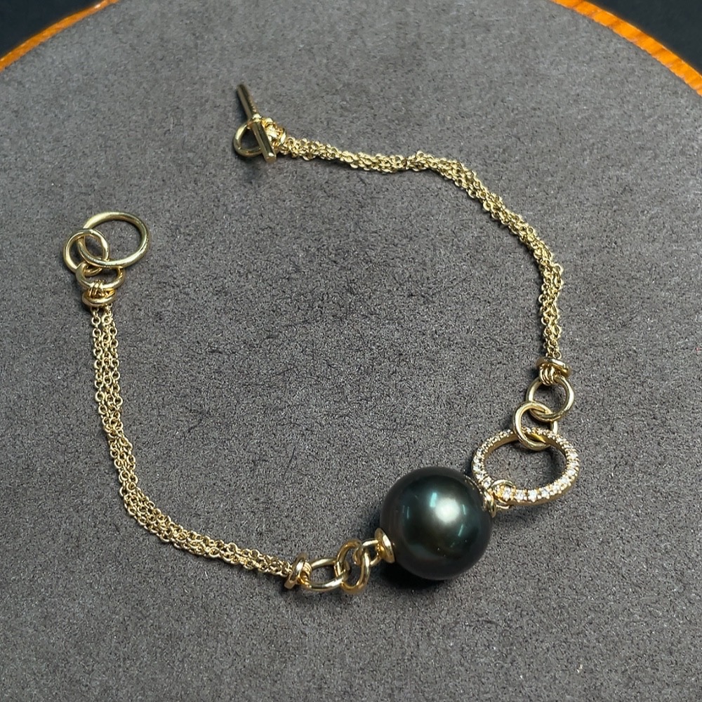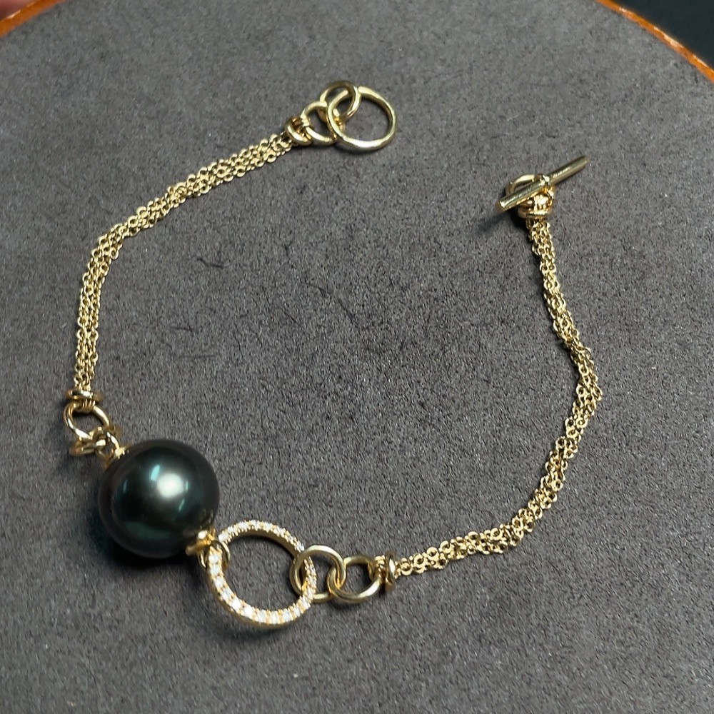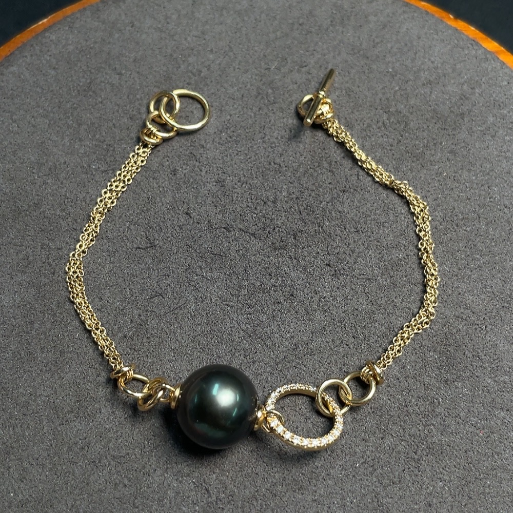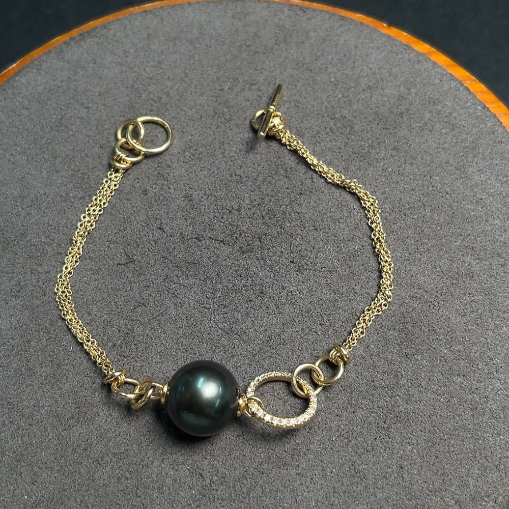 Seawater Pearl Bracelet with Diamond Accents, 18K Gold, Total Weight Approx. 5.5g, Pearl Size About 10.8mm