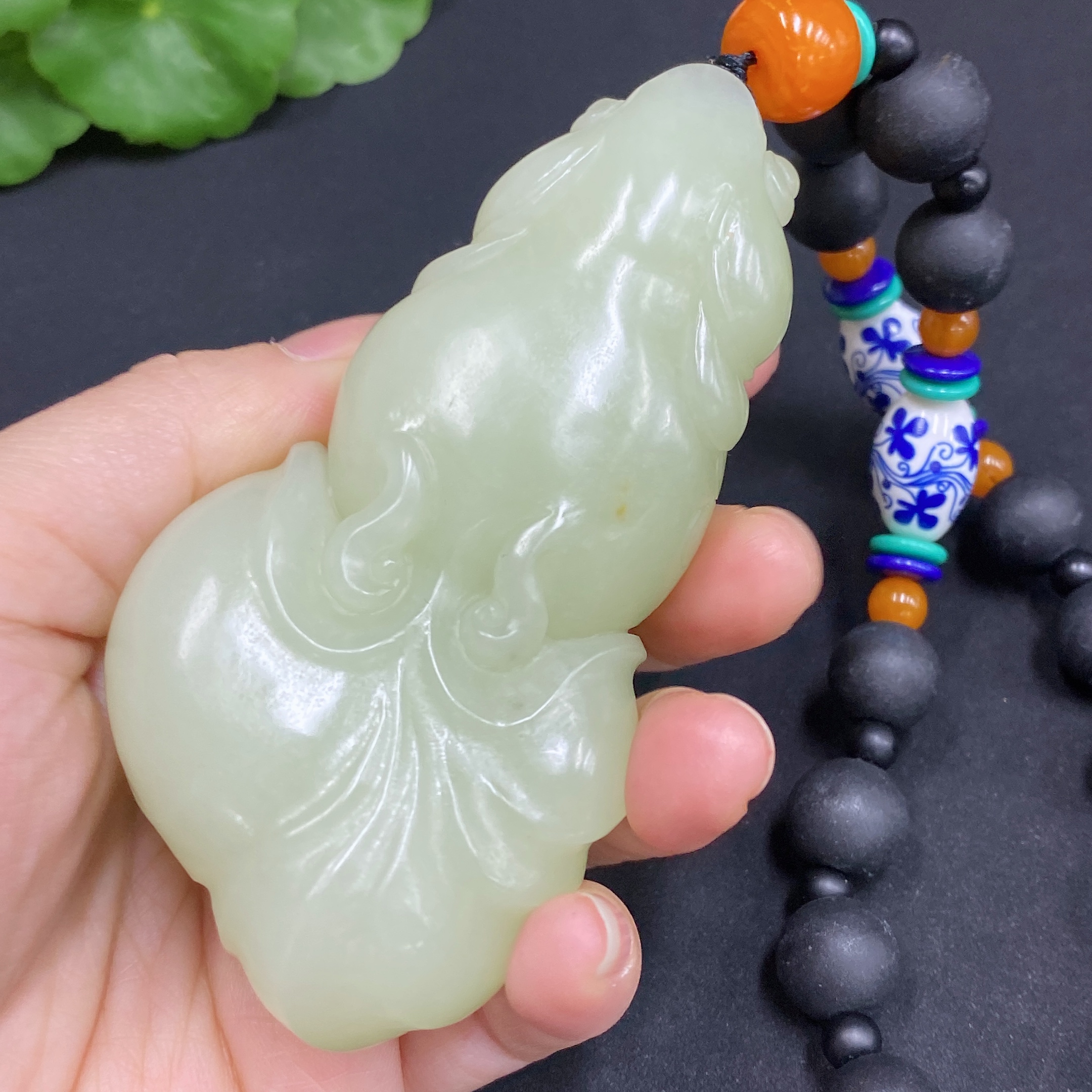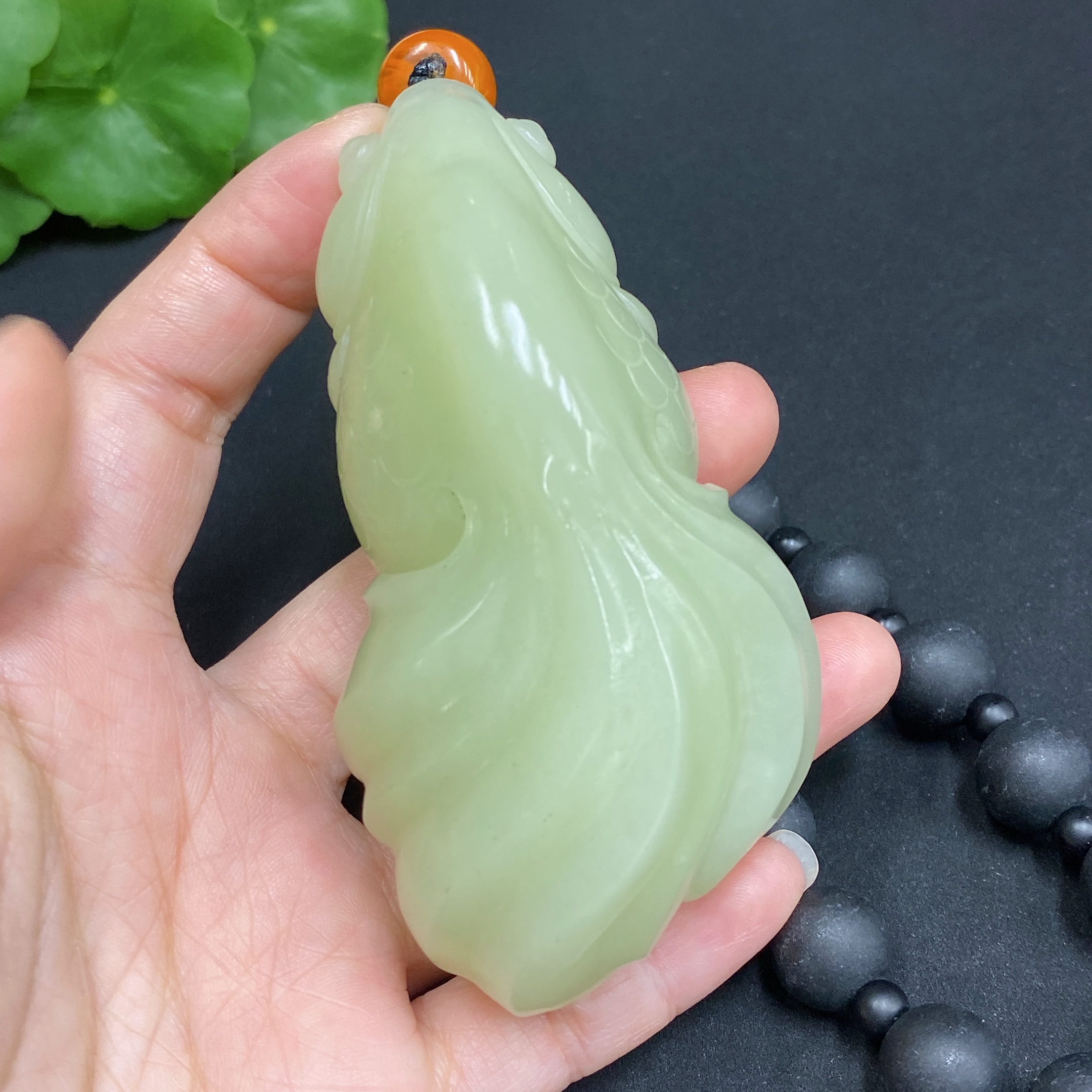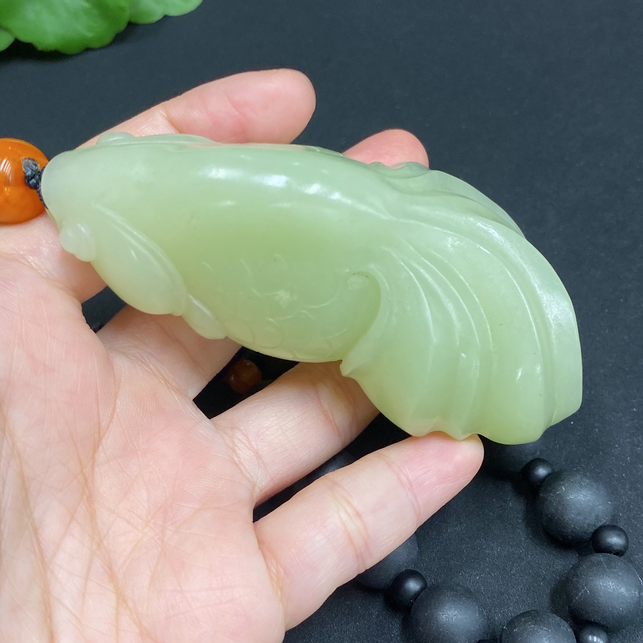 Hetian Jade Handheld Ornament - Abundance Every Year (chain not Hetian jade)