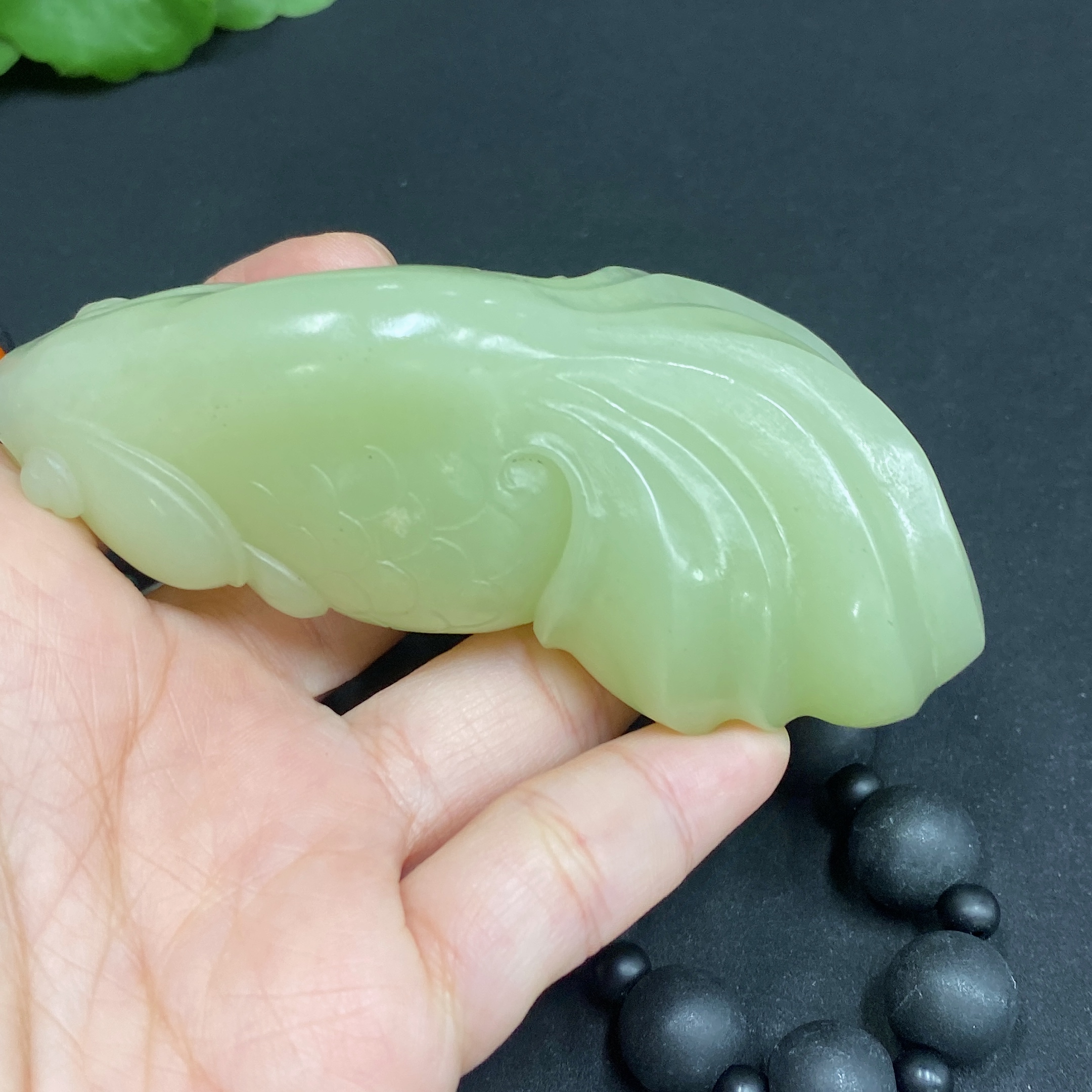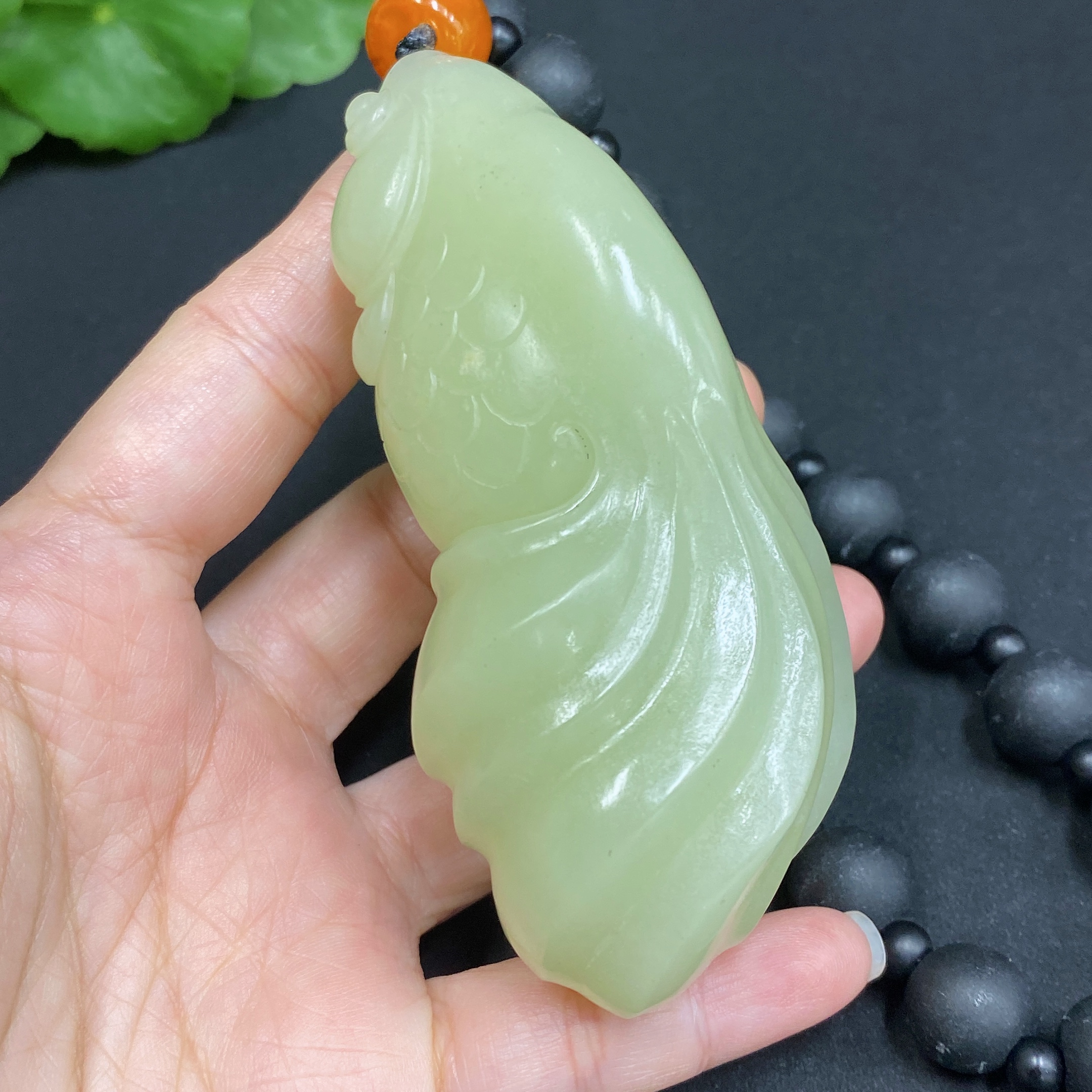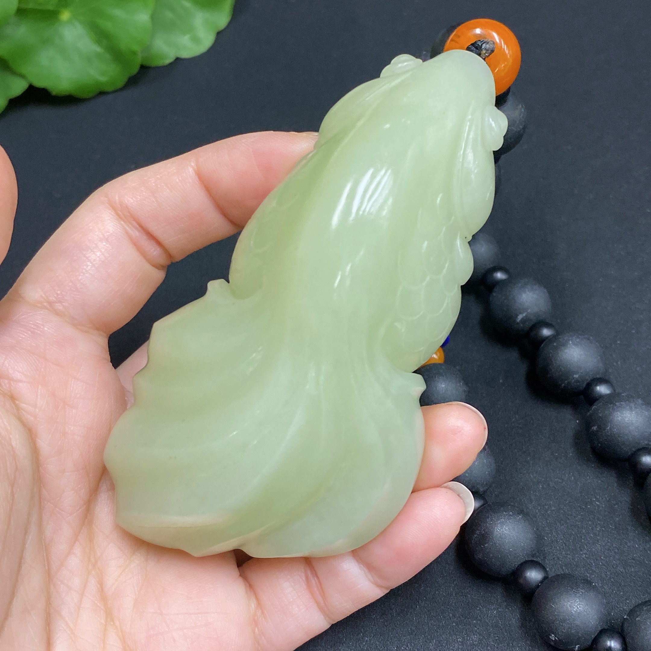Hetian Jade Handheld Ornament - Abundance Every Year (chain not Hetian jade)