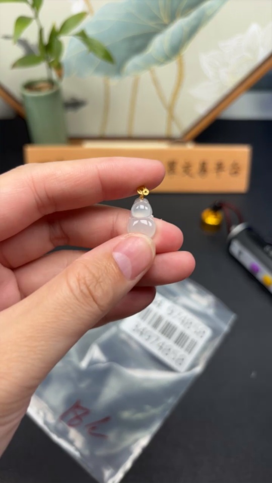 Jadeite Pendant Gourd with 18k Bale Total Weight Approx. 1g