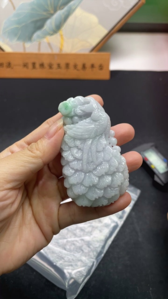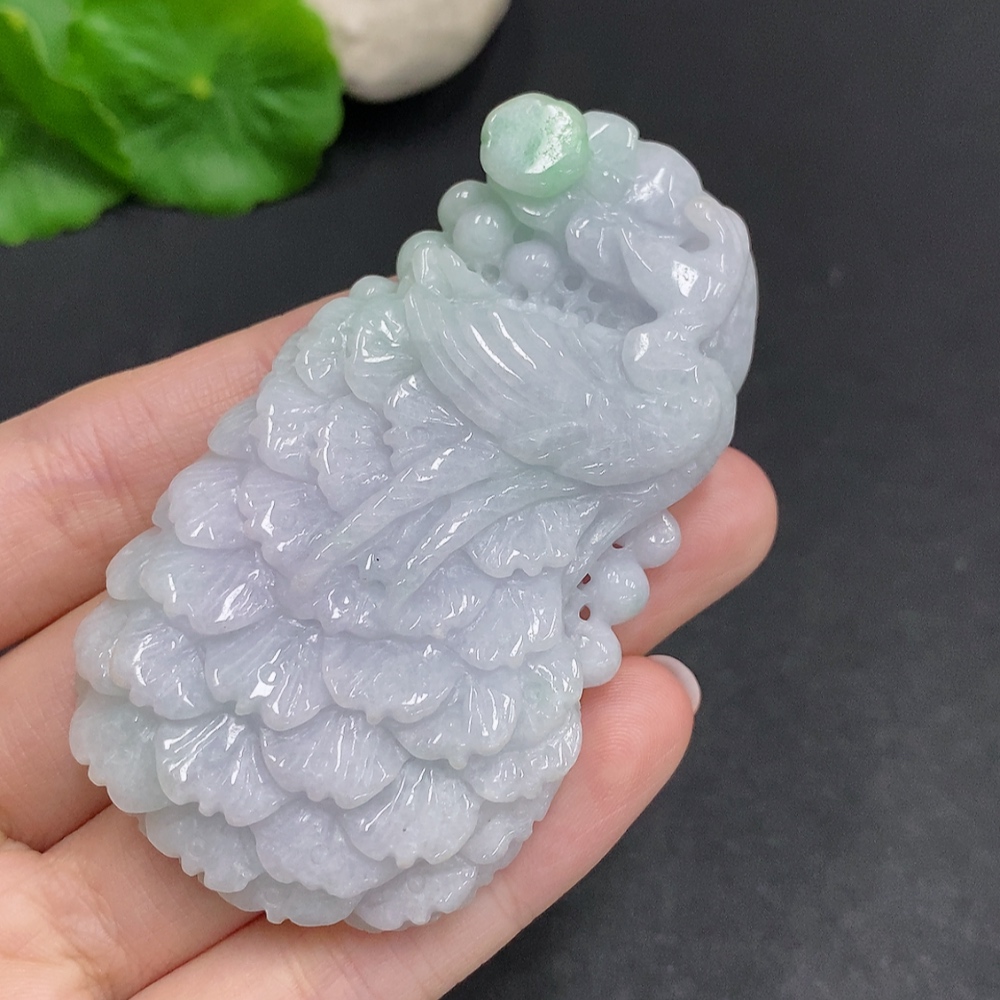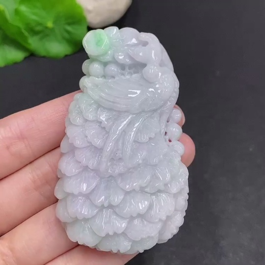 Jadeite Peacock Pendant Total Weight Approximately 69.9g