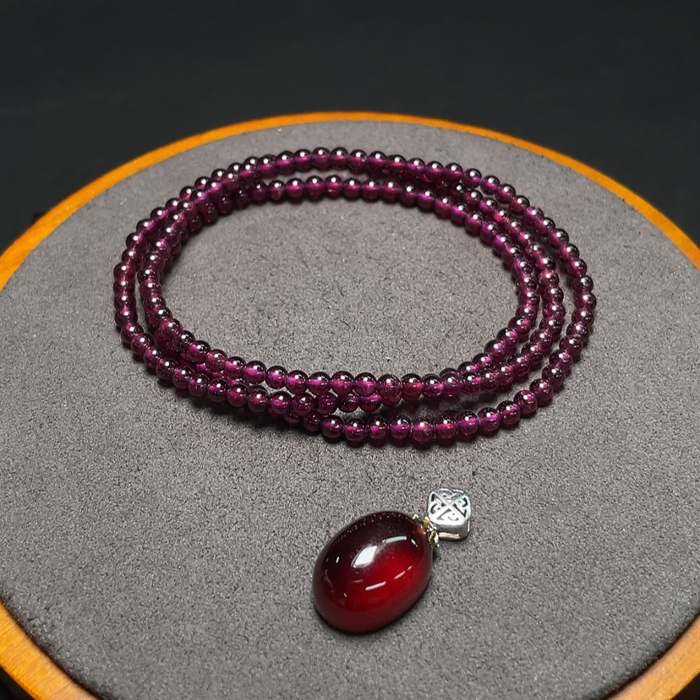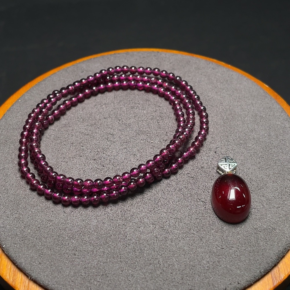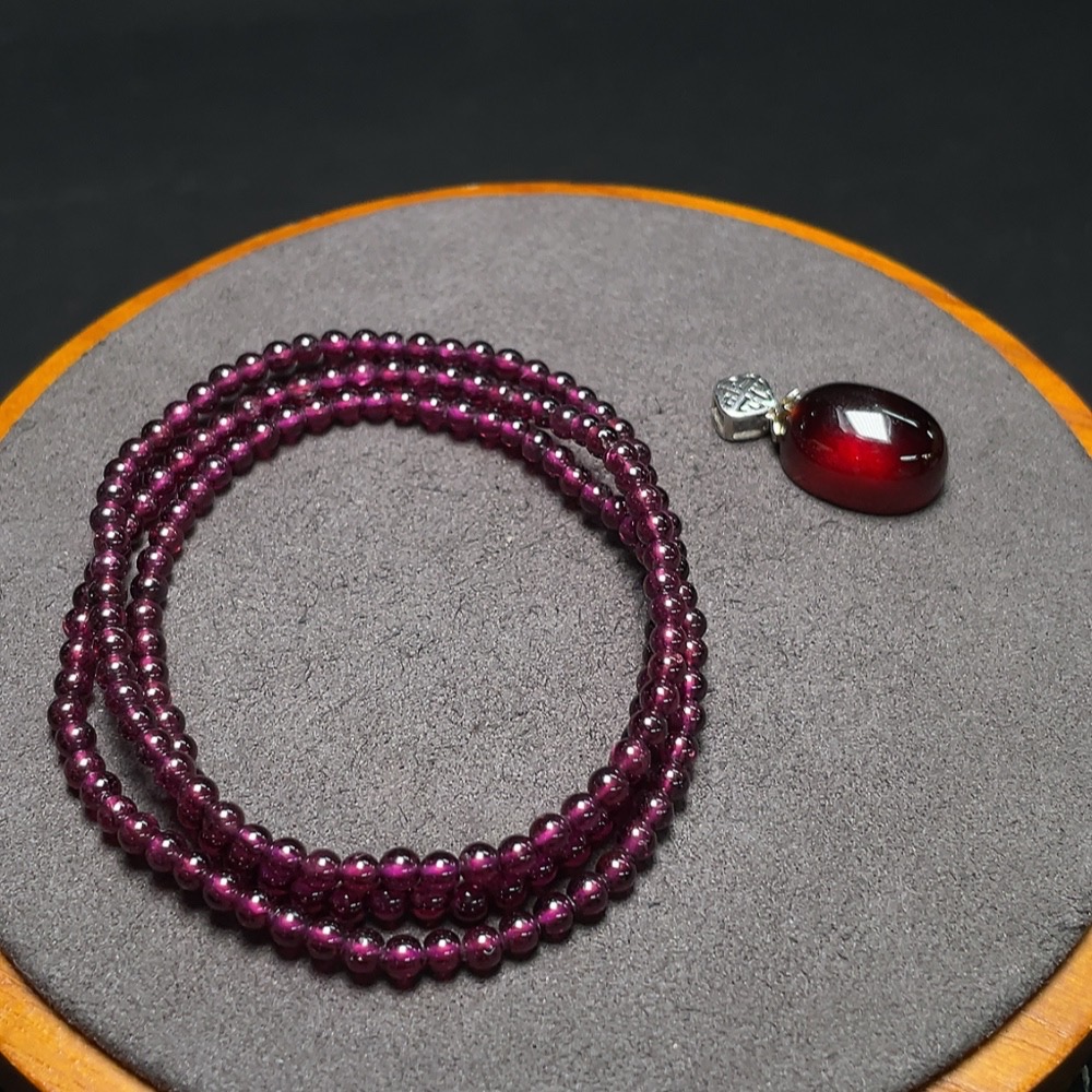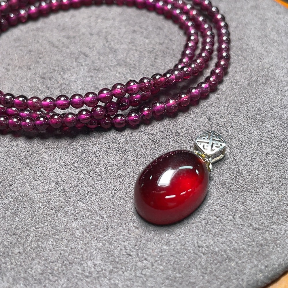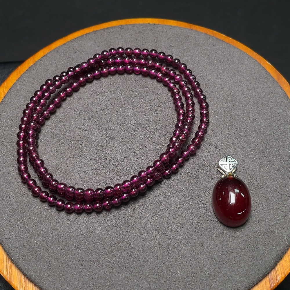 Garnet Beaded Necklace with Pendant Non-Gold Total Weight Approx.16g Sell as a Lot