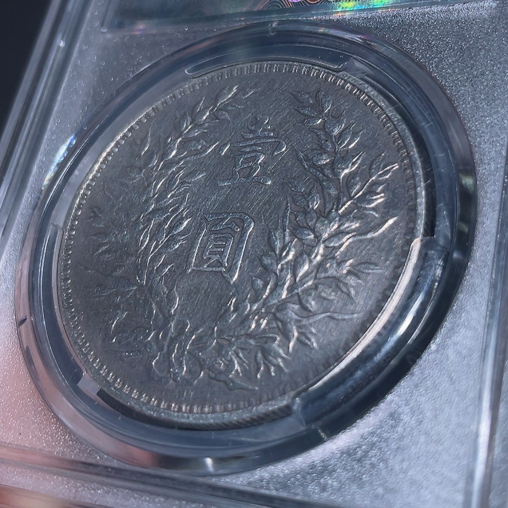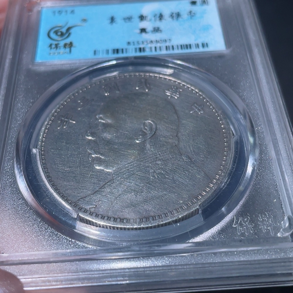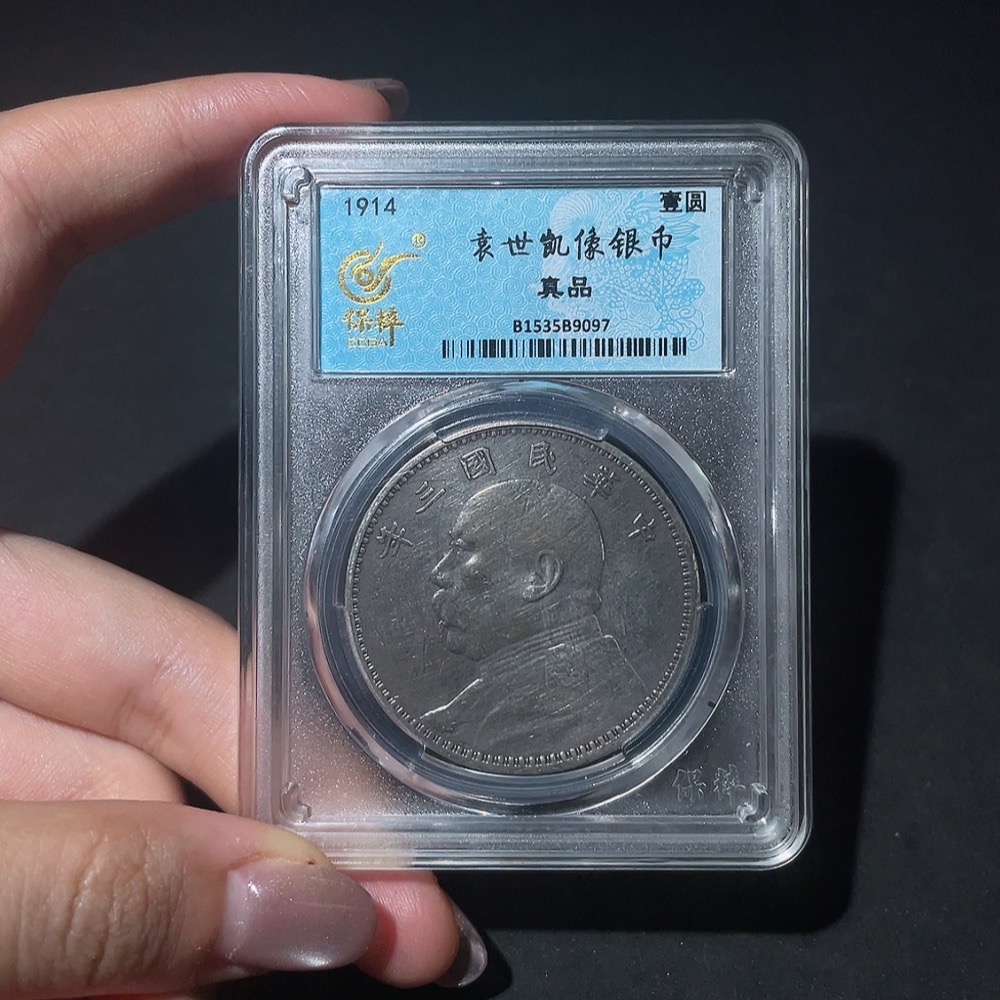 Doubtful Yuan Datou Coin from the 3rd Year of the Republic of China, Encased in Baocui Grading Box