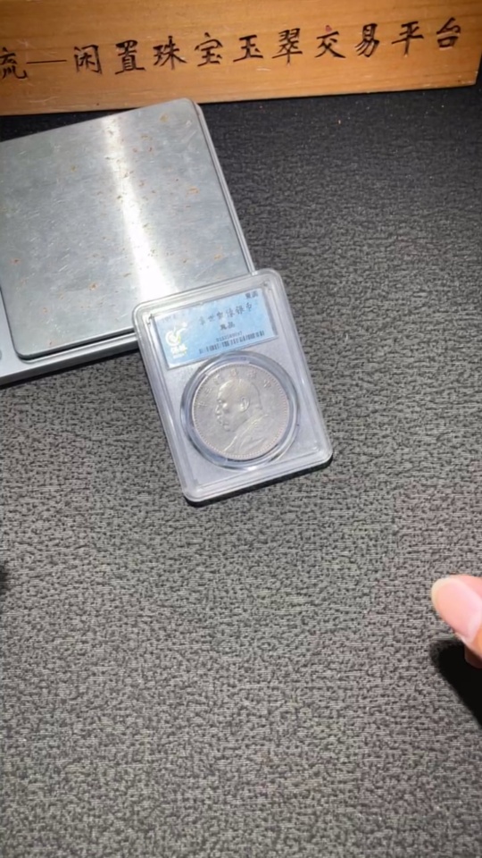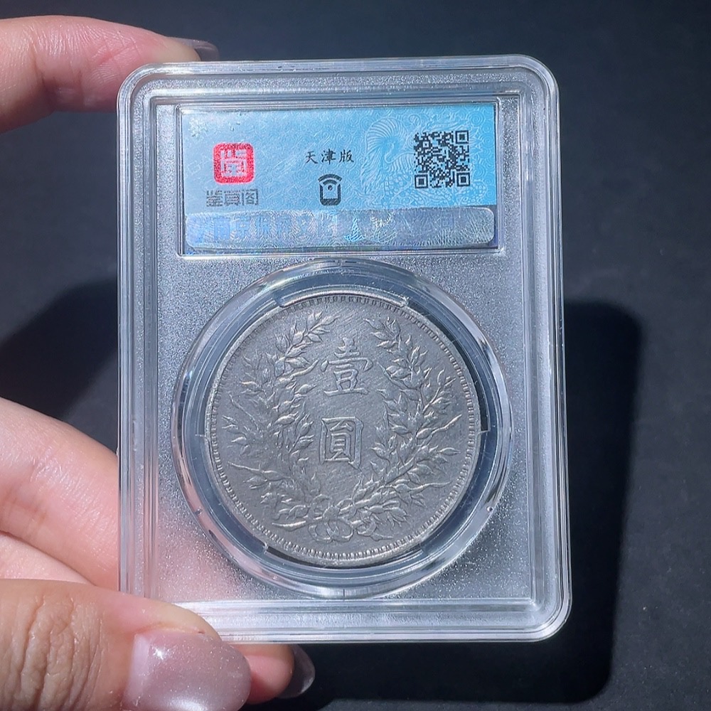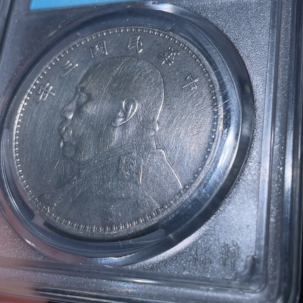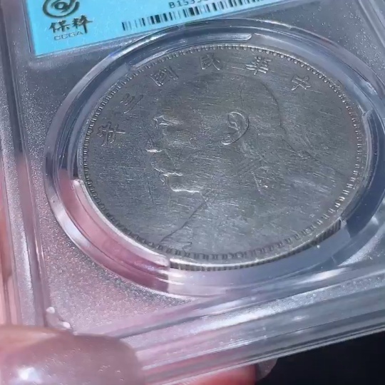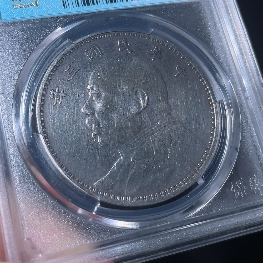 Doubtful Yuan Datou Coin from the 3rd Year of the Republic of China, Encased in Baocui Grading Box