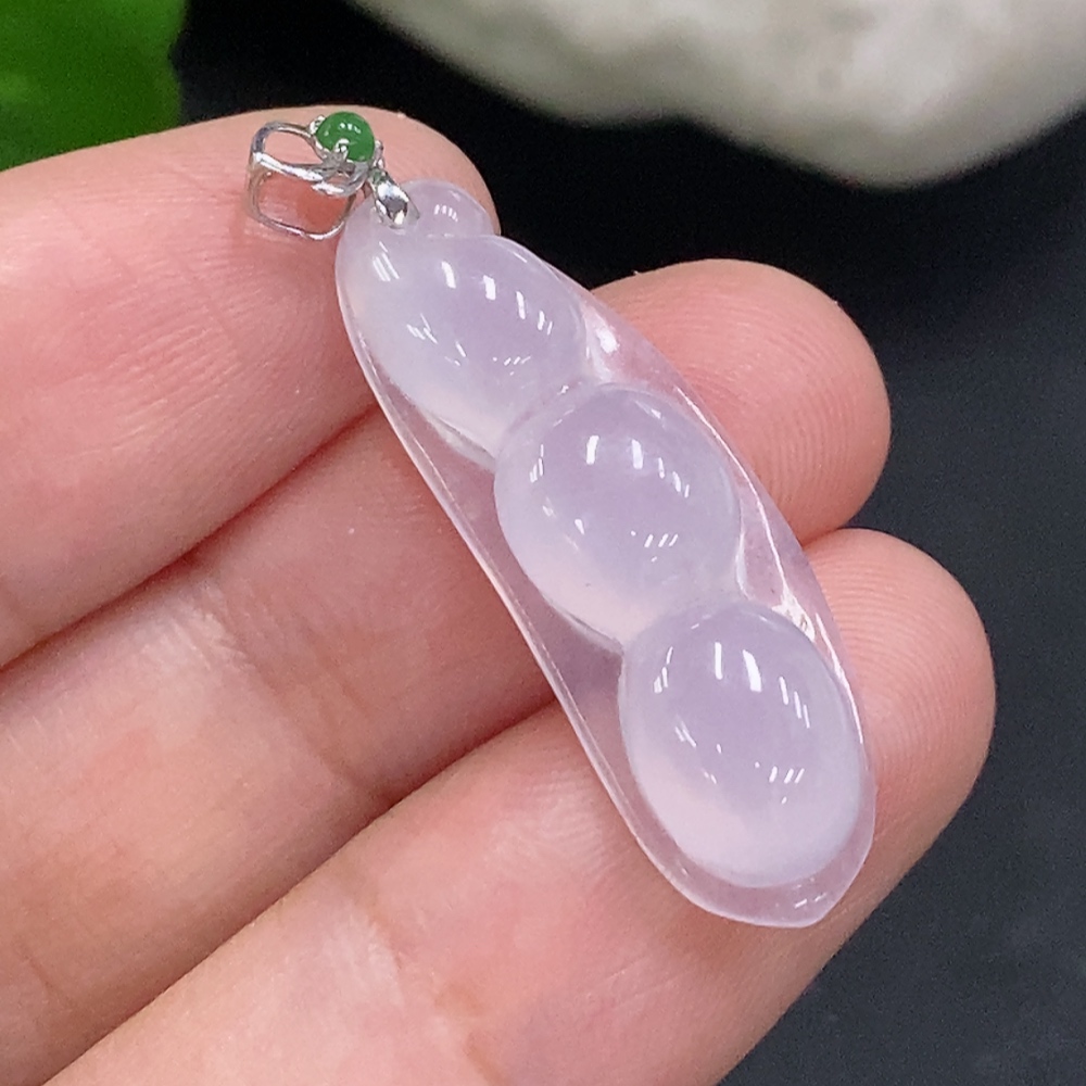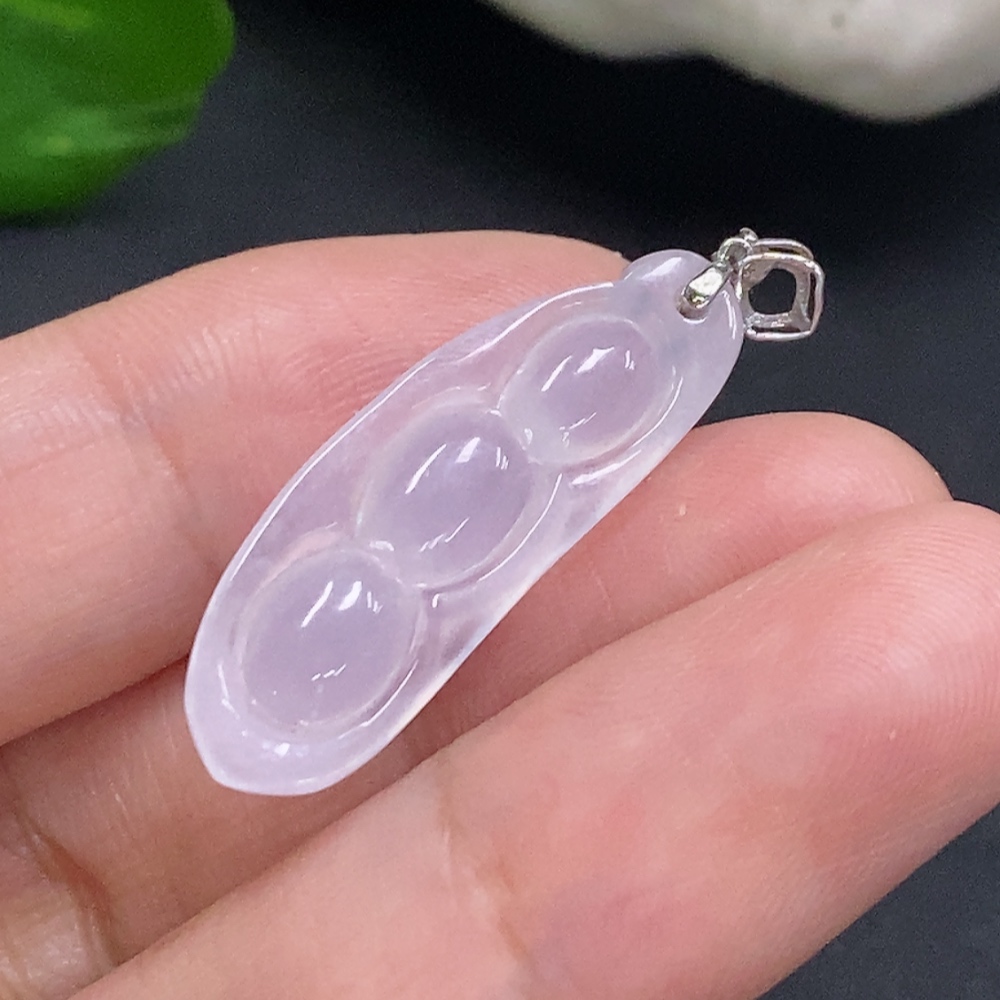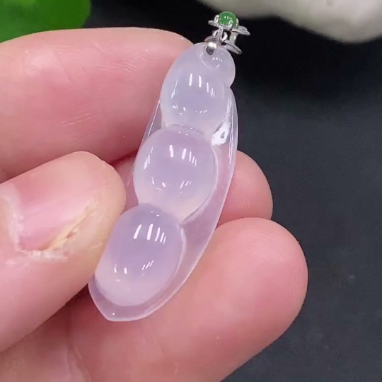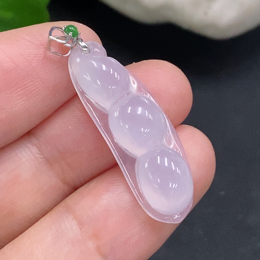 Jadeite Lucky Bean Pendant with 18K Gold Clasp, Total Weight Approx. 2.9g