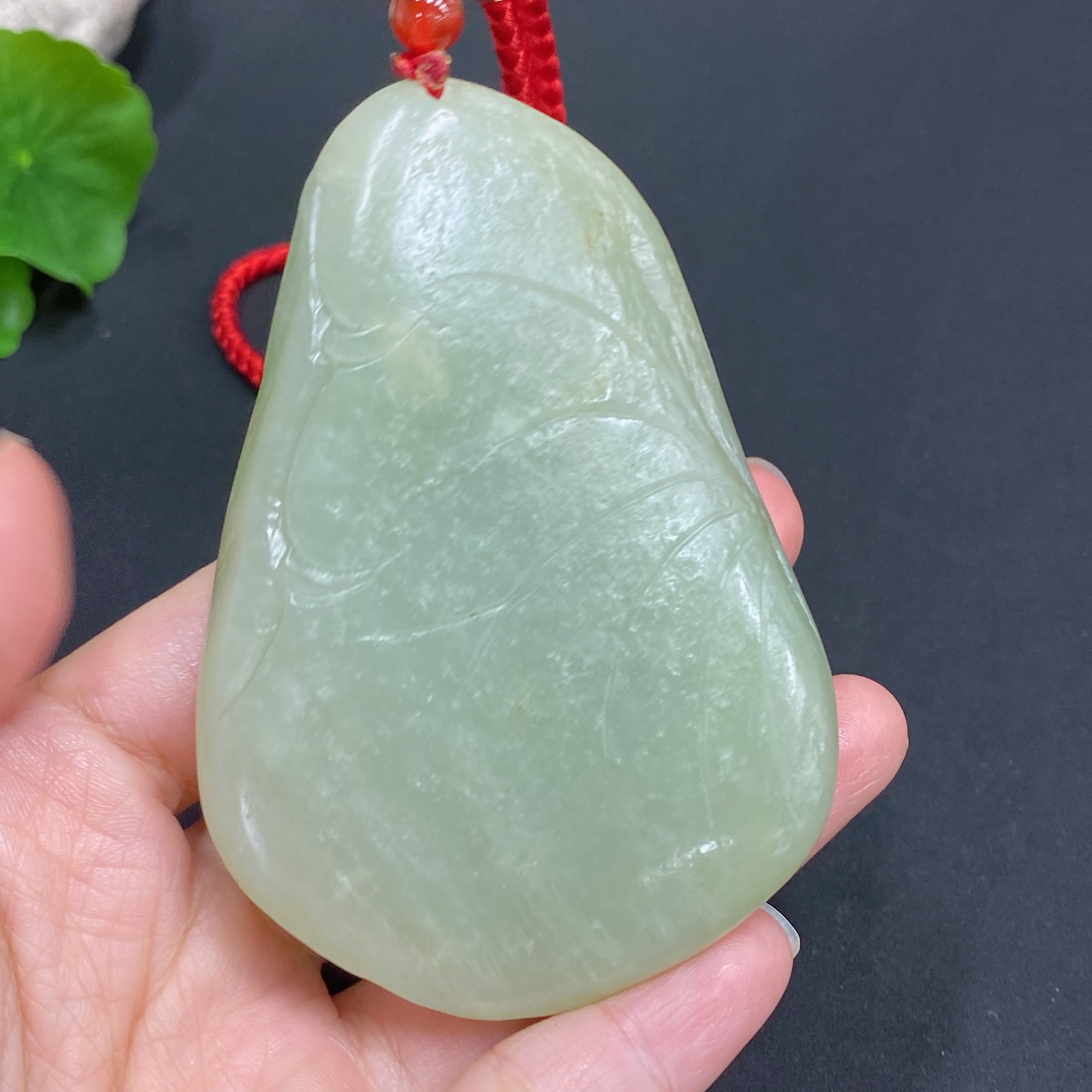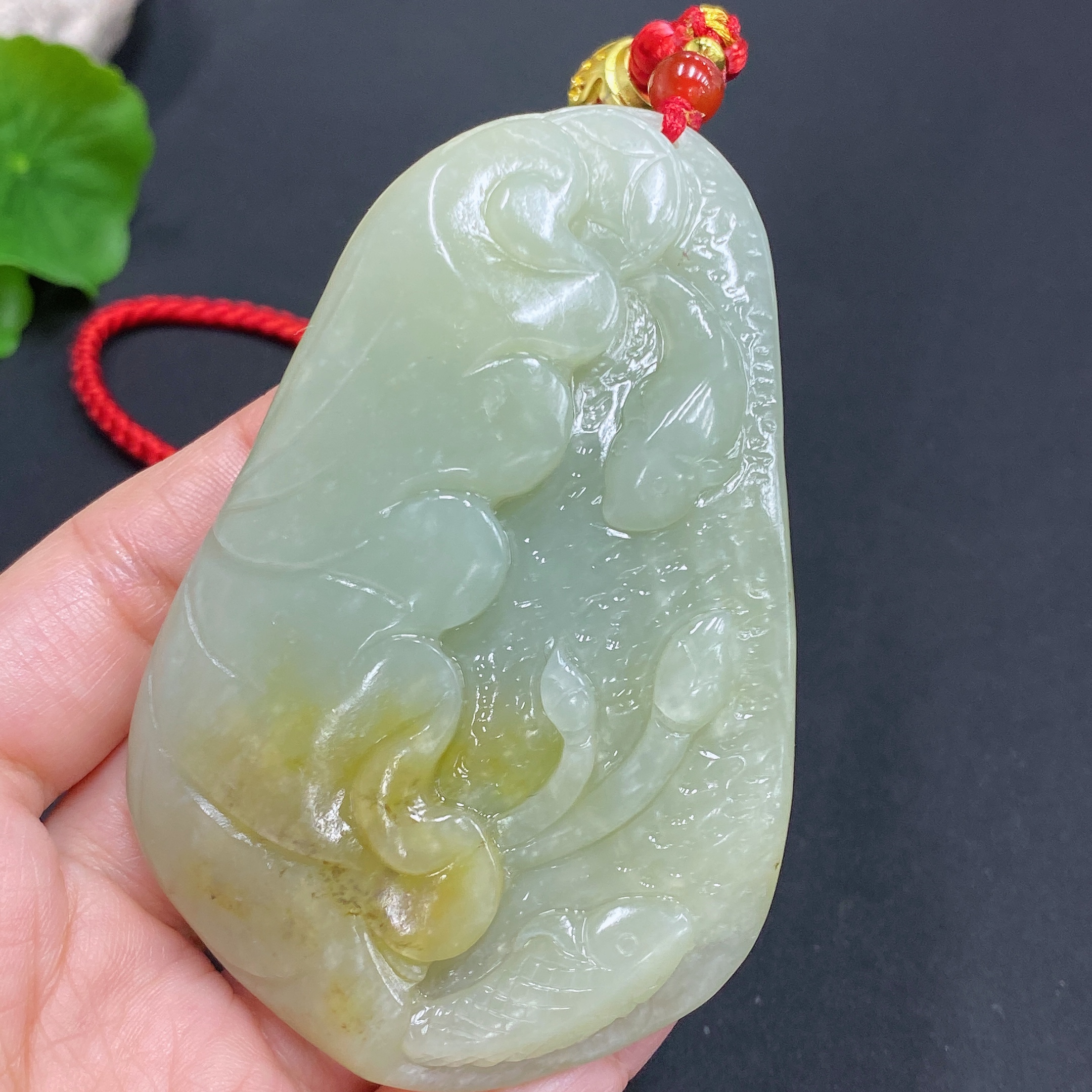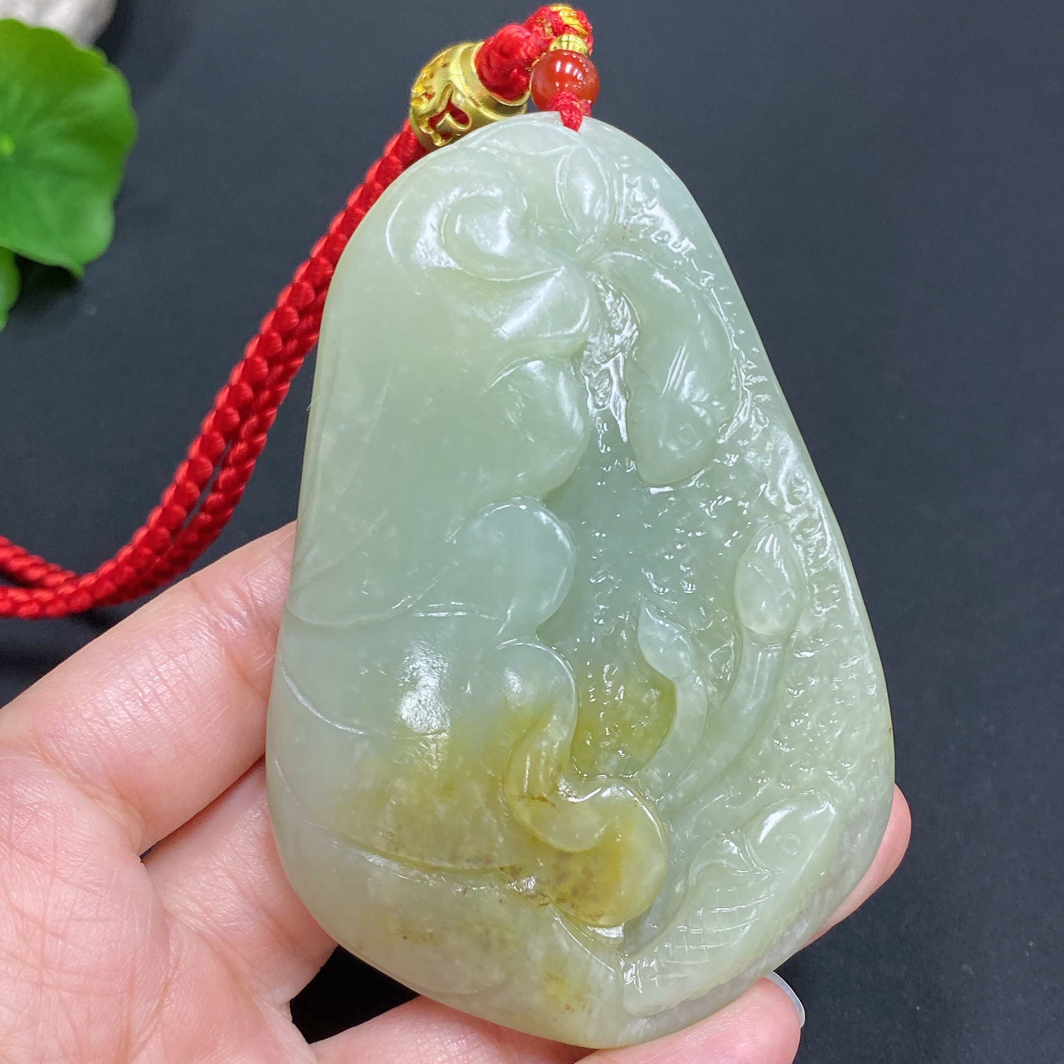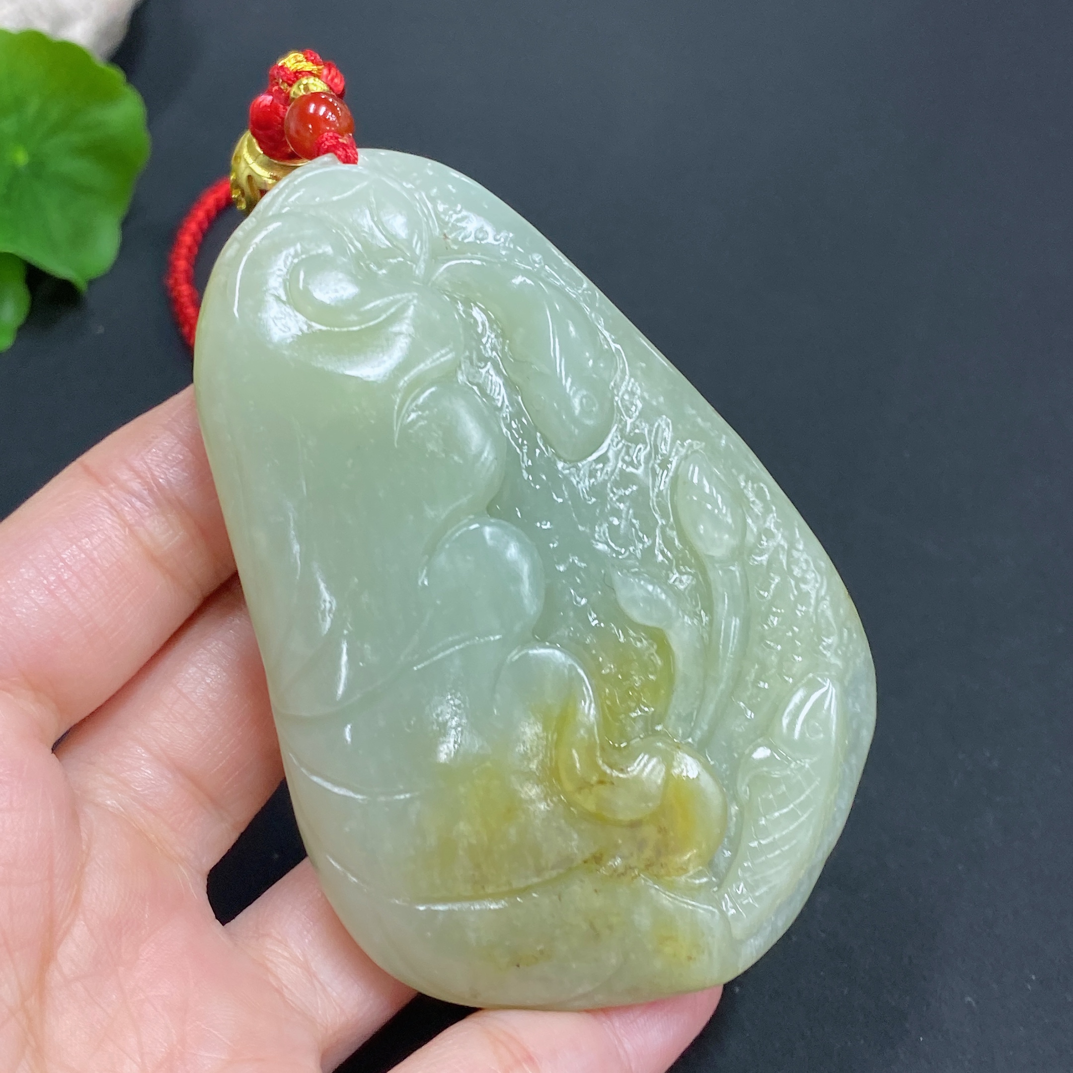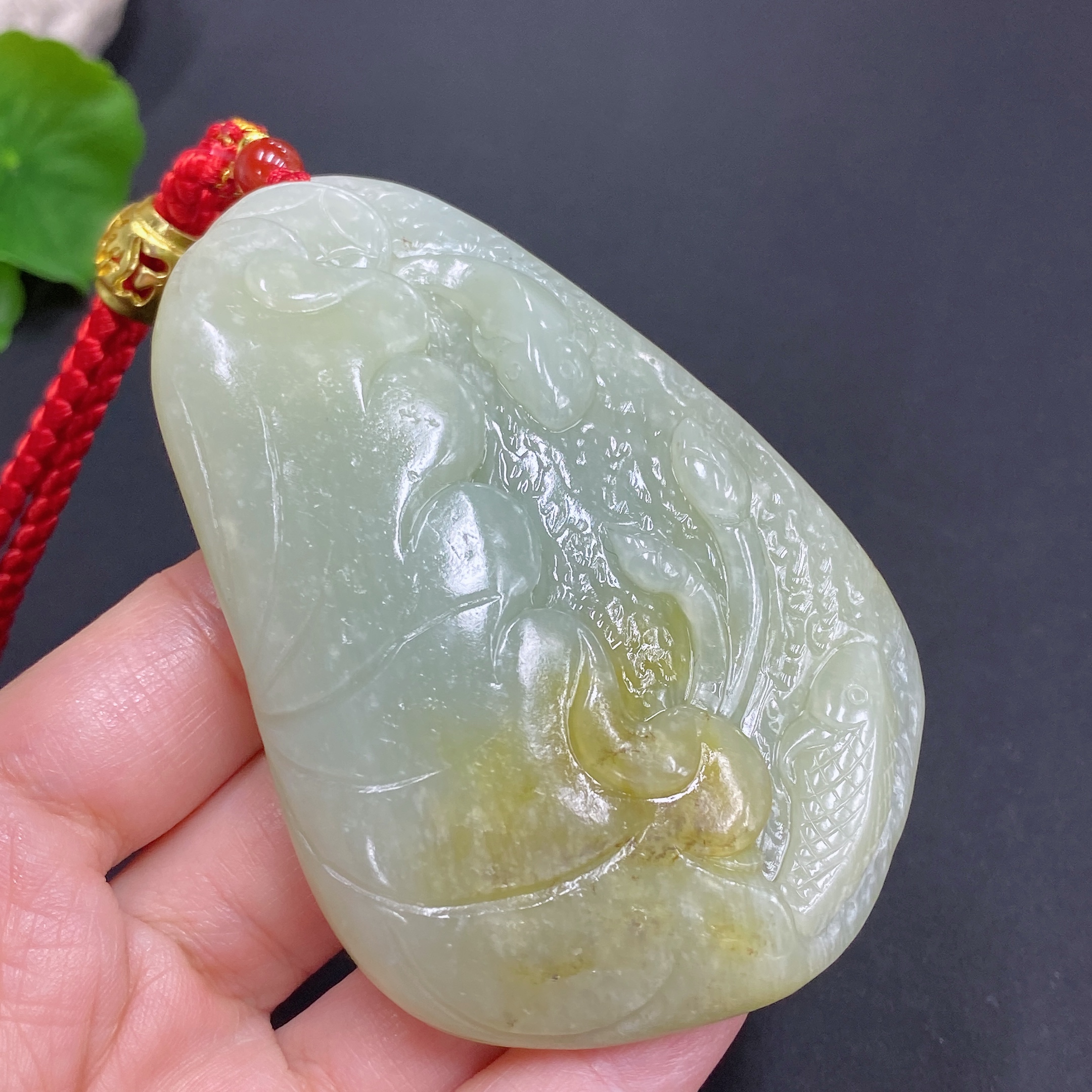 Hetian Jade Handheld Piece - Lotus Leaf and Fish
