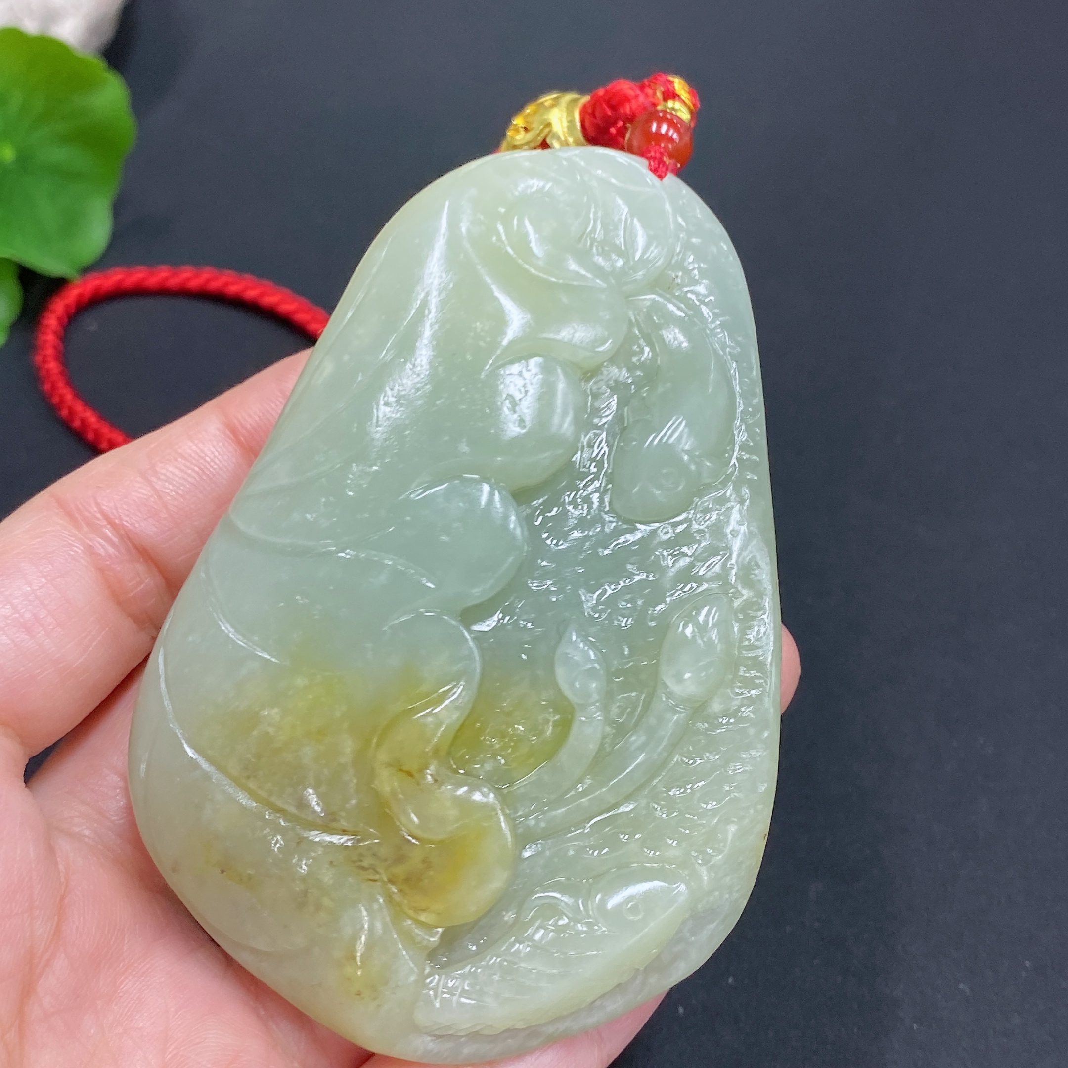 Trezaar - Hetian Jade Handheld Piece - Lotus Leaf and Fish