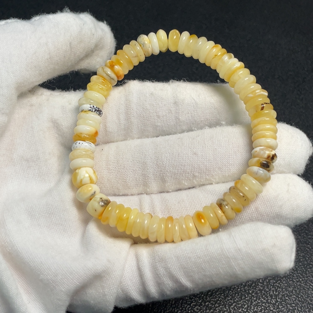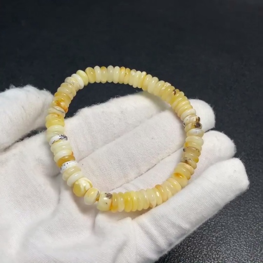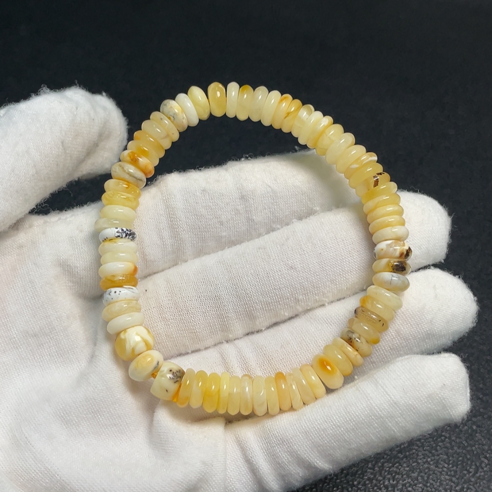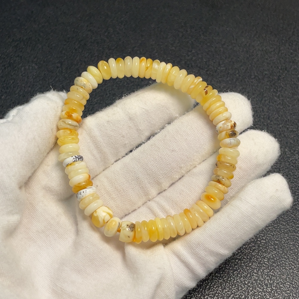 Amber and Beeswax Bracelet, Total Weight Approx. 7.64g, Bead Size About 7.6mm
