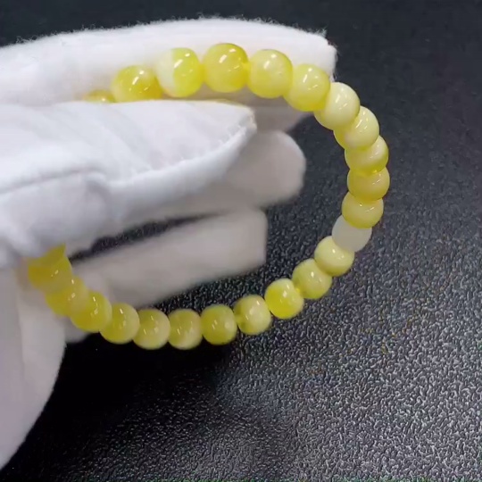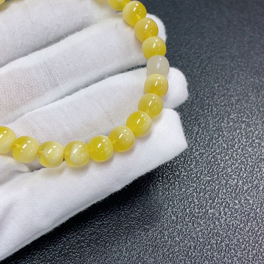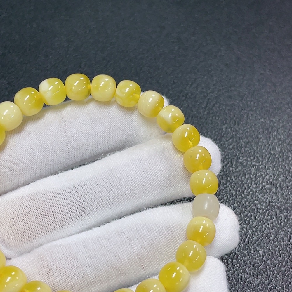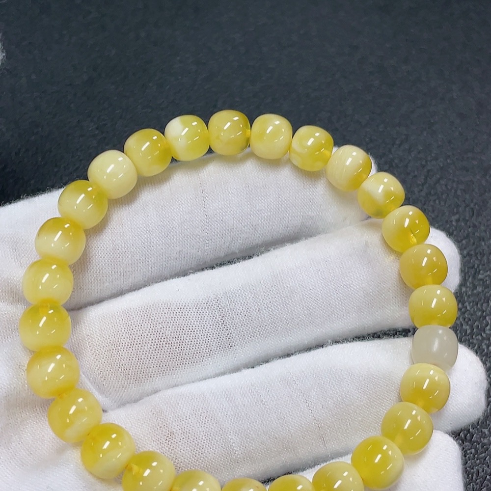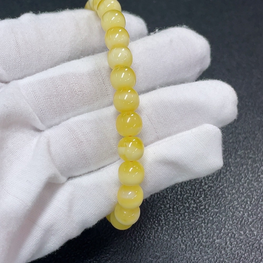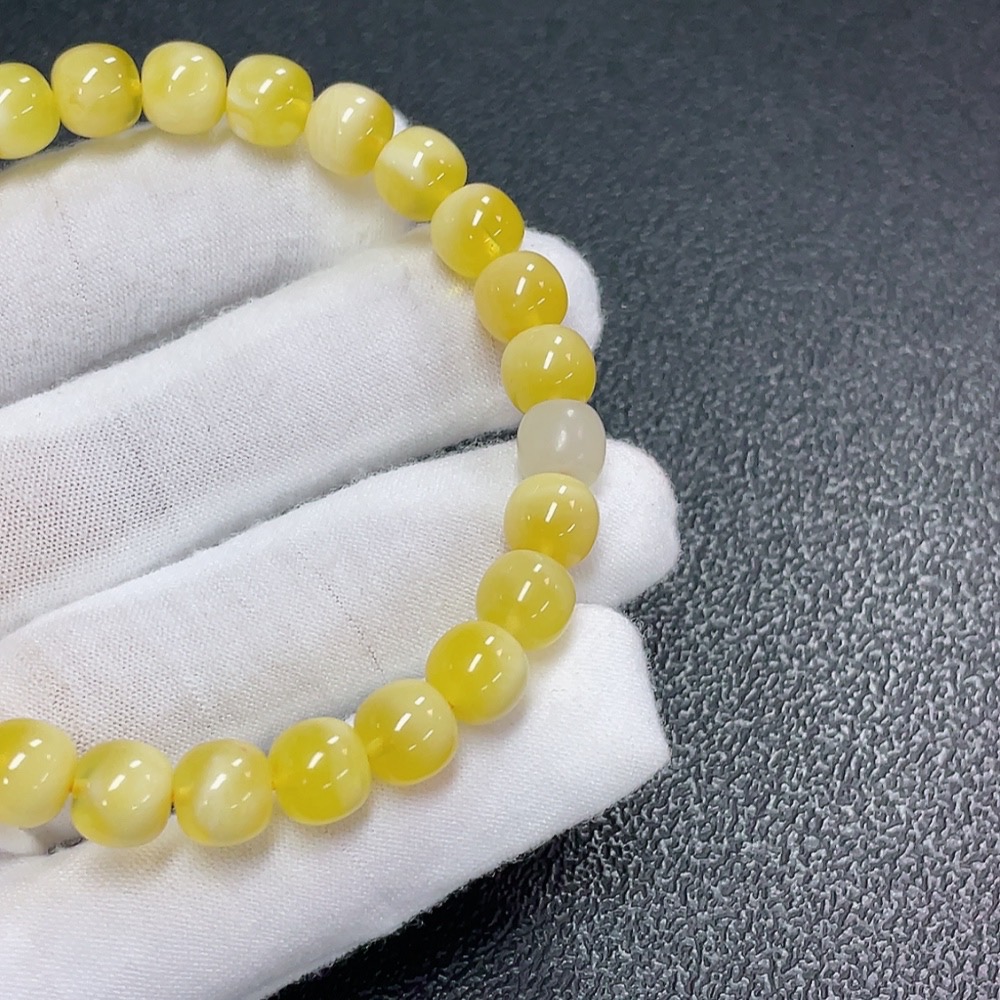 Amber Beeswax Bracelet with Hetian Jade, Total Weight Approx. 8.73g, Size About 7.9mm