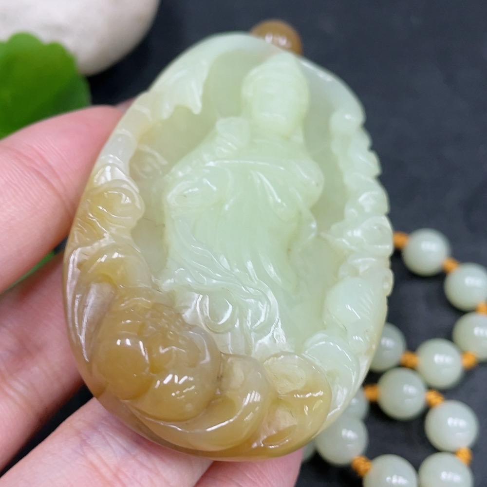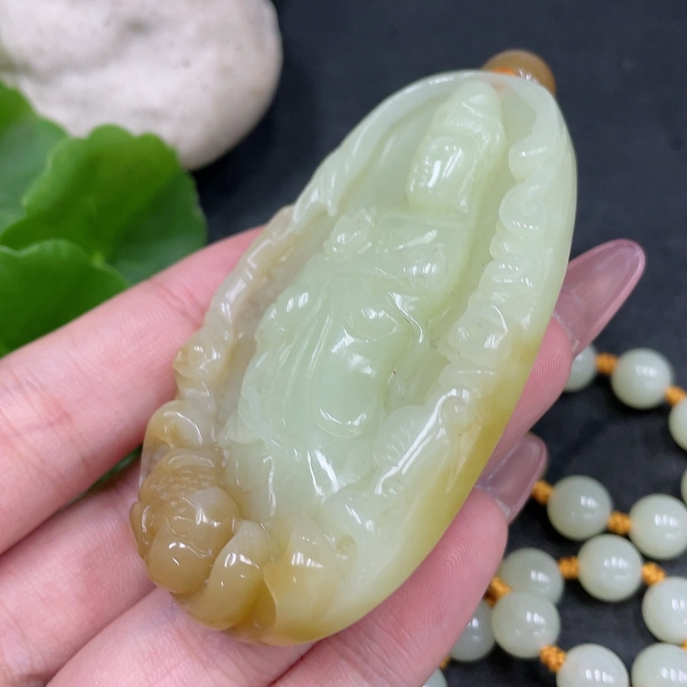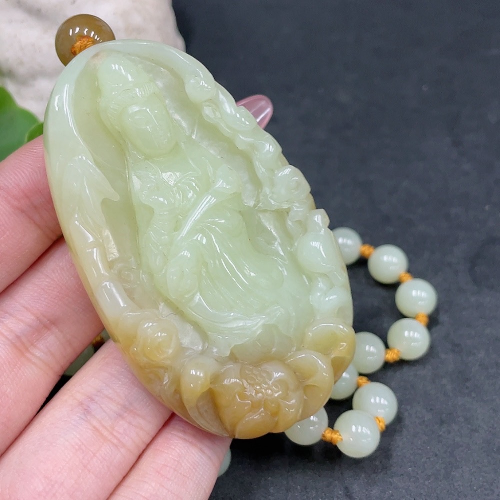 Hetian Jade Pendant Guanyin Total Weight (including chain): 109.2g