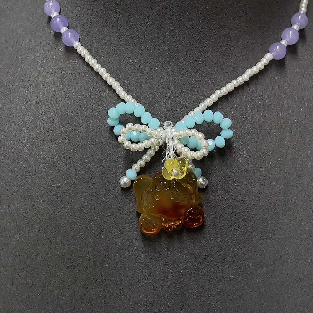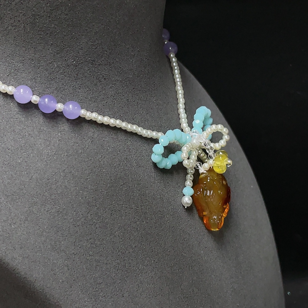 Amber Beeswax Pendant with Colorless Coating, Non-Natural Chain, Total Weight Approx. 14g Including Chain