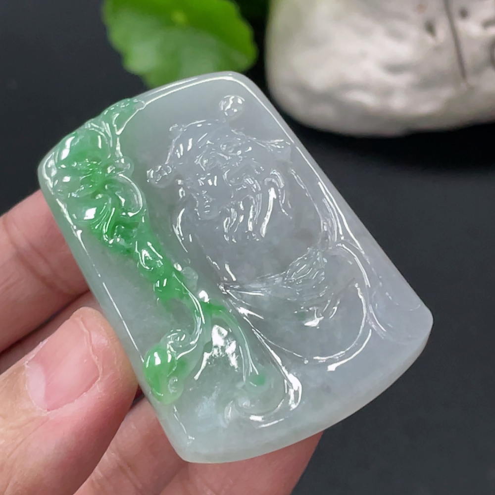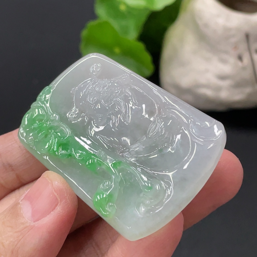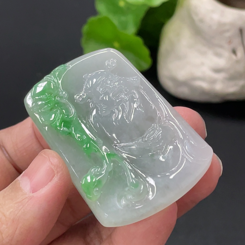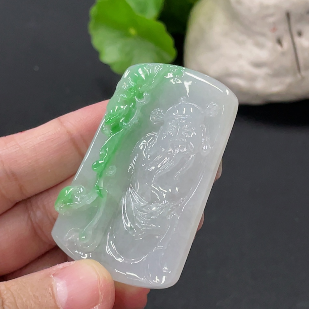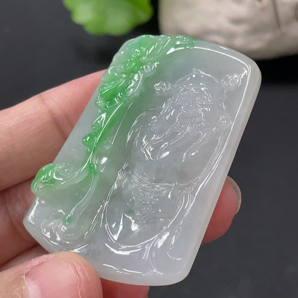 Jadeite God of Wealth Pendant Total Weight: Approx. 26.7g