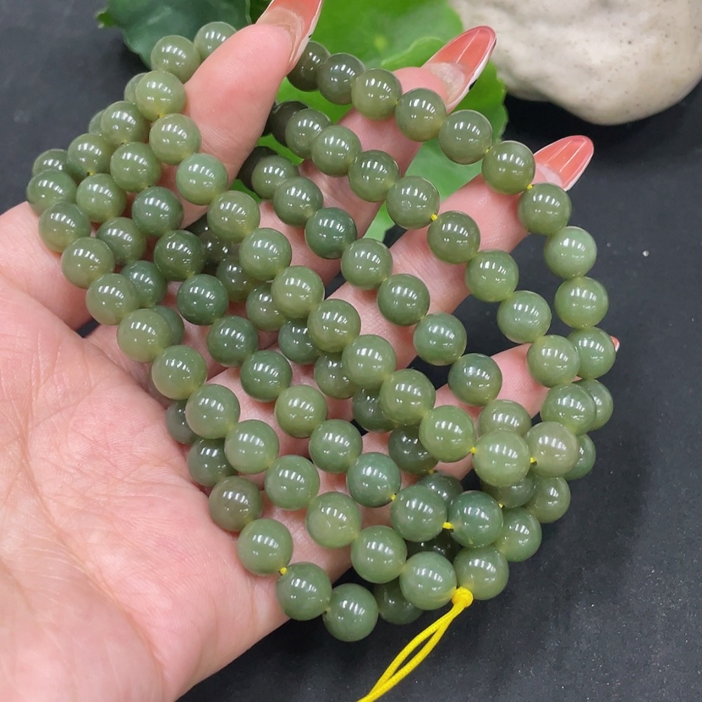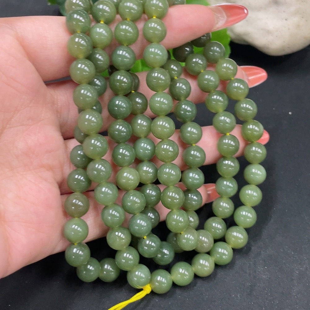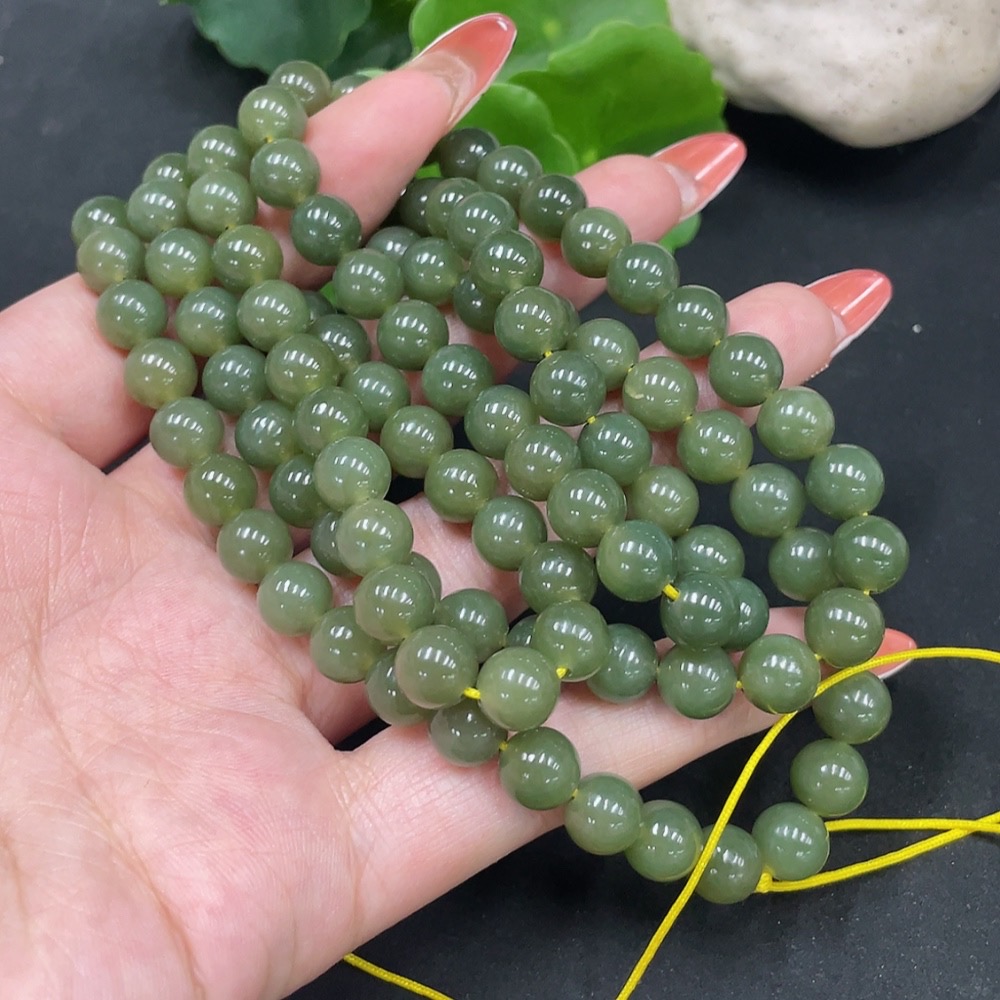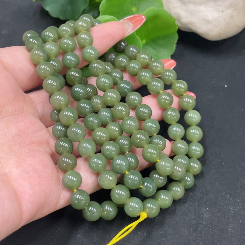 Hetian Jade Bead Necklace Approx. 7.7mm Total Weight Approx. 81.9g