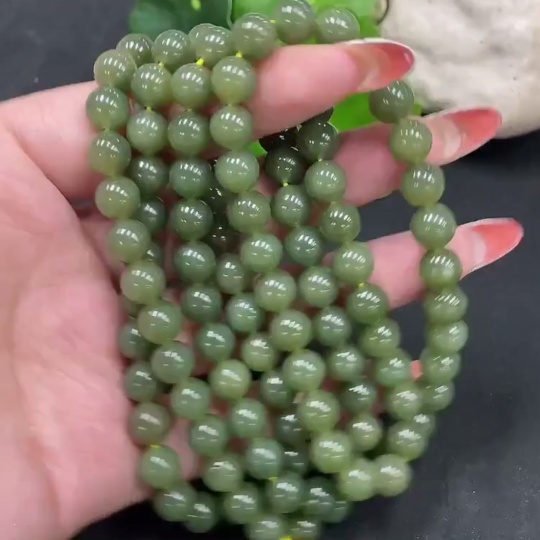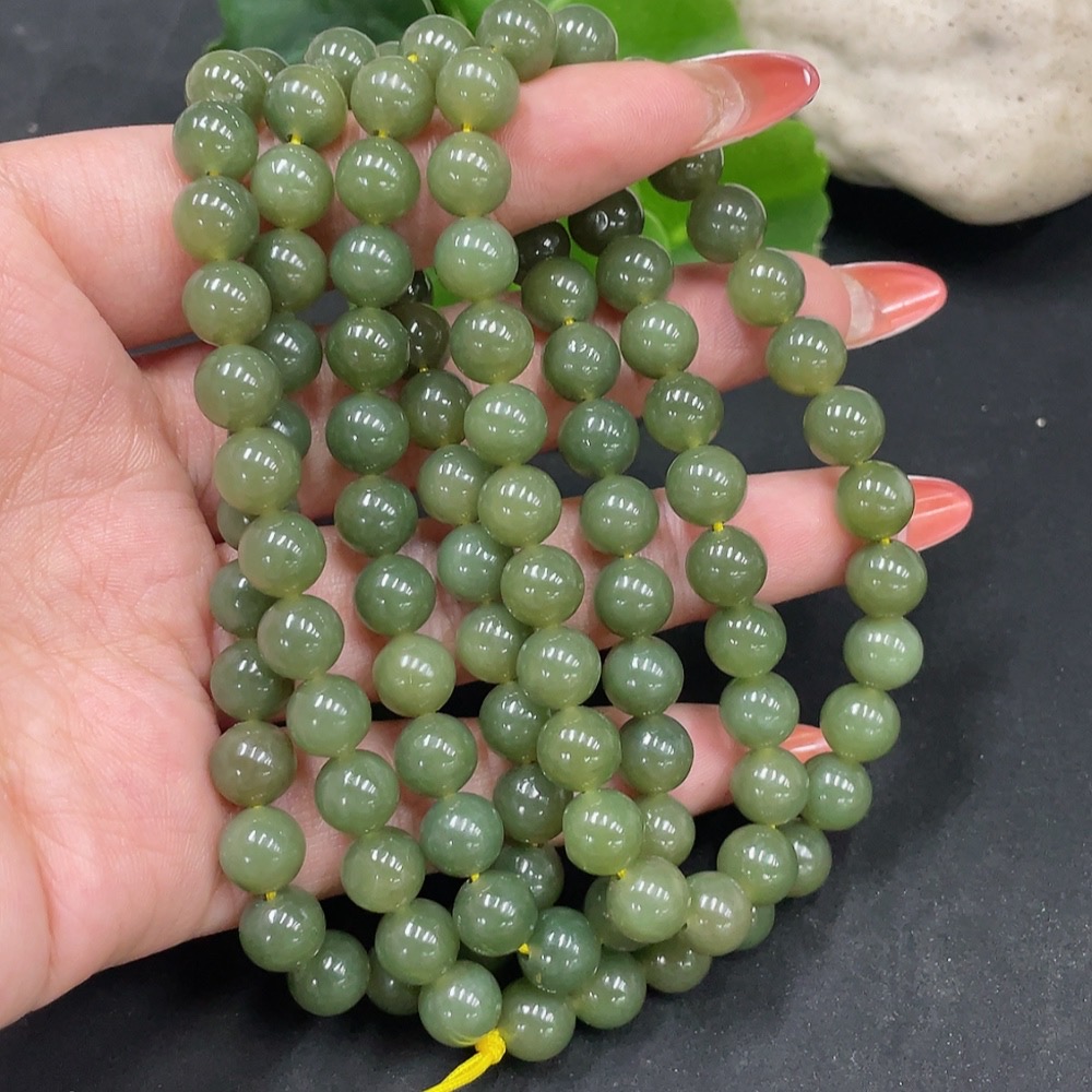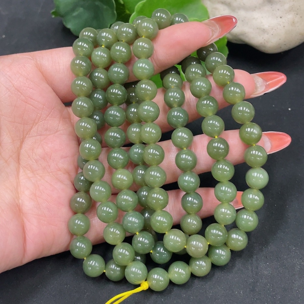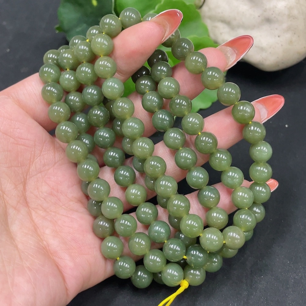 Hetian Jade Bead Necklace Approx. 7.7mm Total Weight Approx. 81.9g
