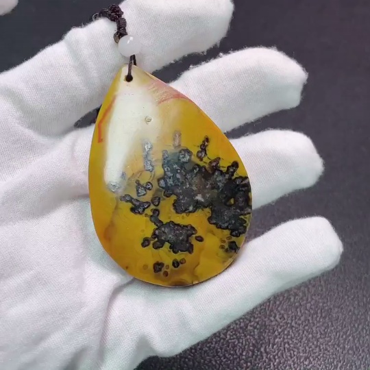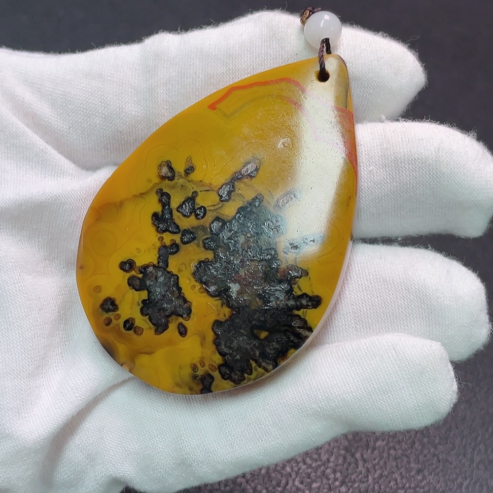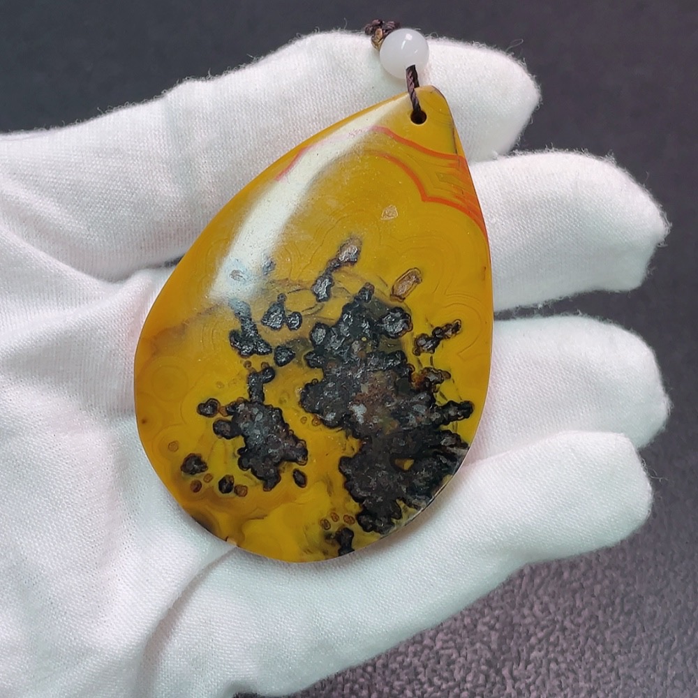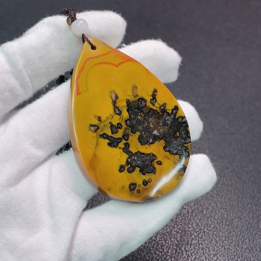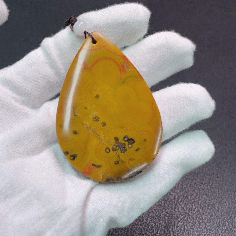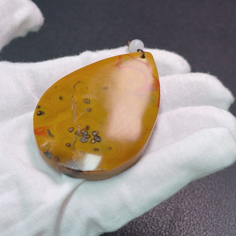 Warring States Red Pendant with Visible Organic Matter, Non-Natural Accent Stones, Total Weight Approx. 56.89g, Including Chain