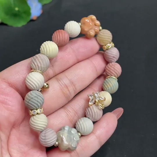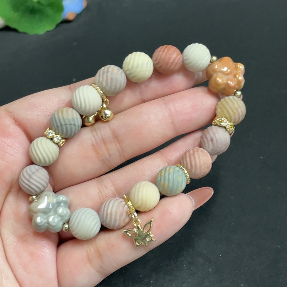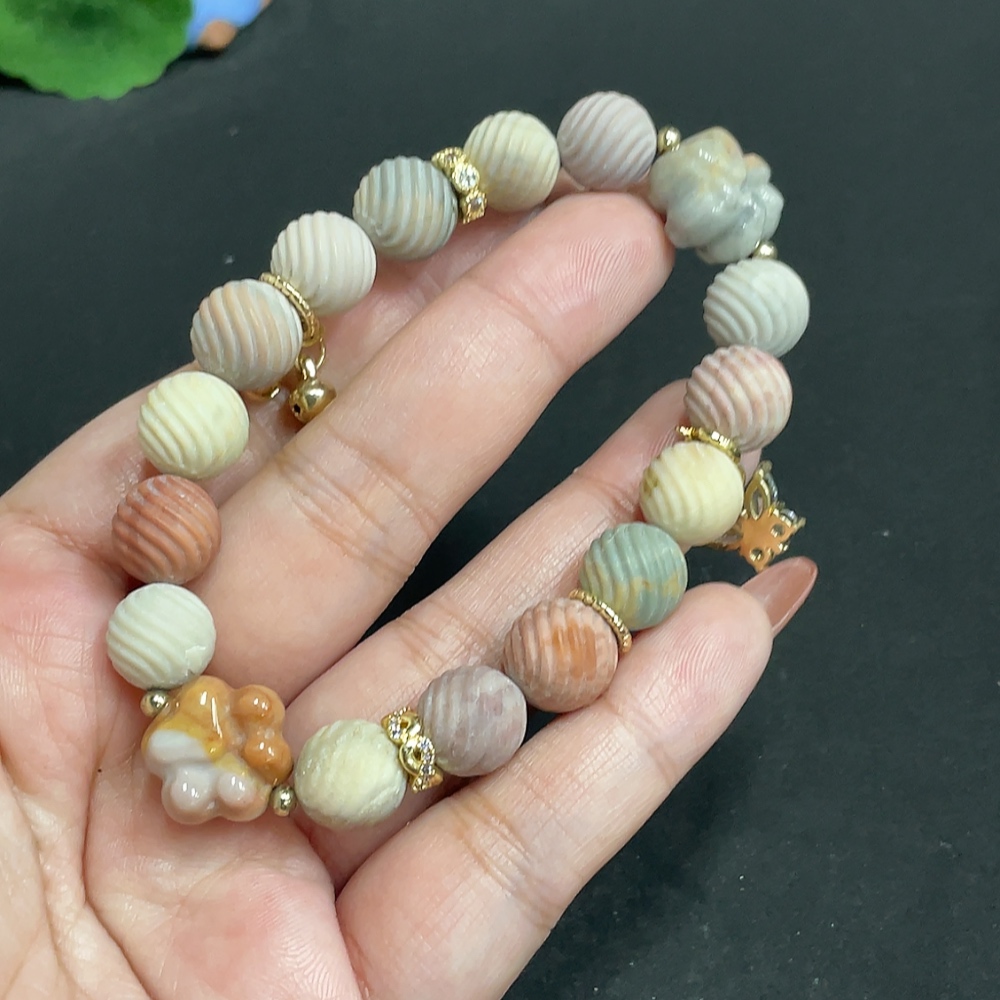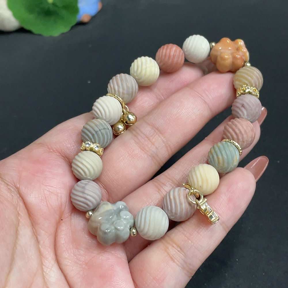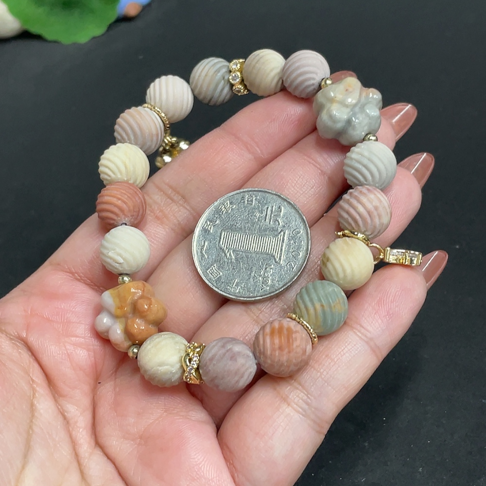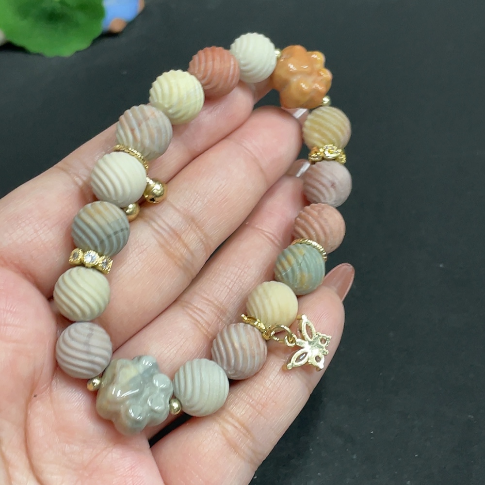 Alashan Agate Bracelet, approx. 10.6mm, containing other mineral components, total weight approx. 33.4g, non-gold