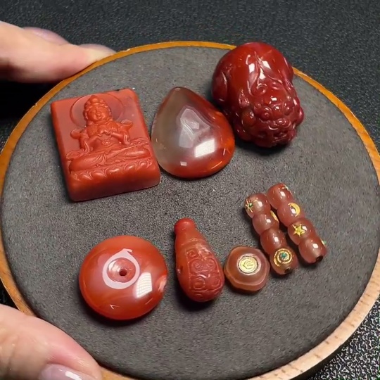 South Red Agate Ornament, Non-Gold, Visible Organic Matter, Total Weight Approx. 70.77g, Sell as a Lot