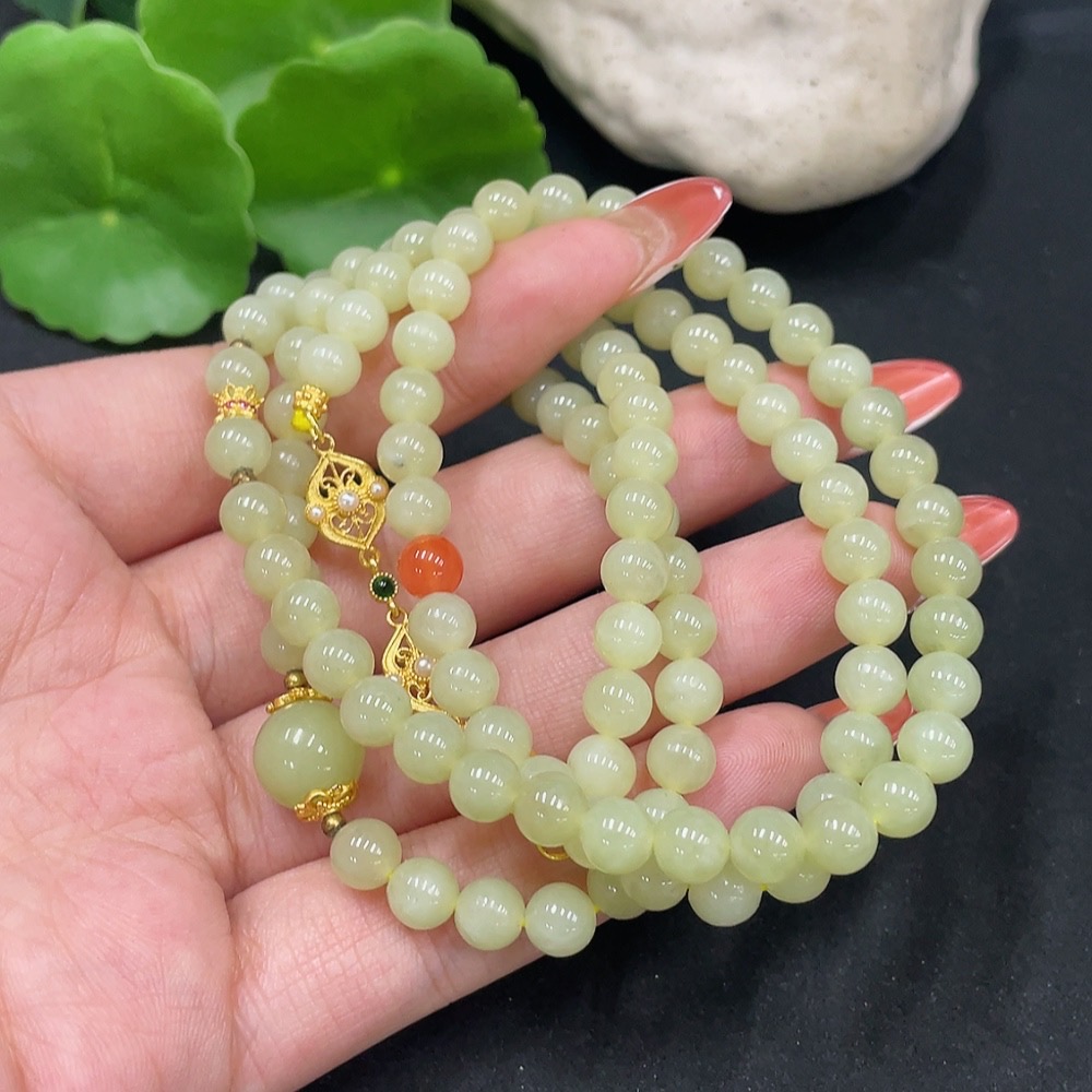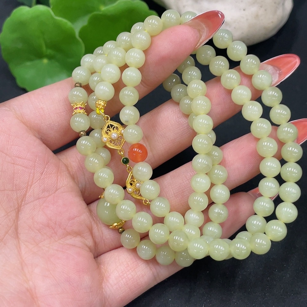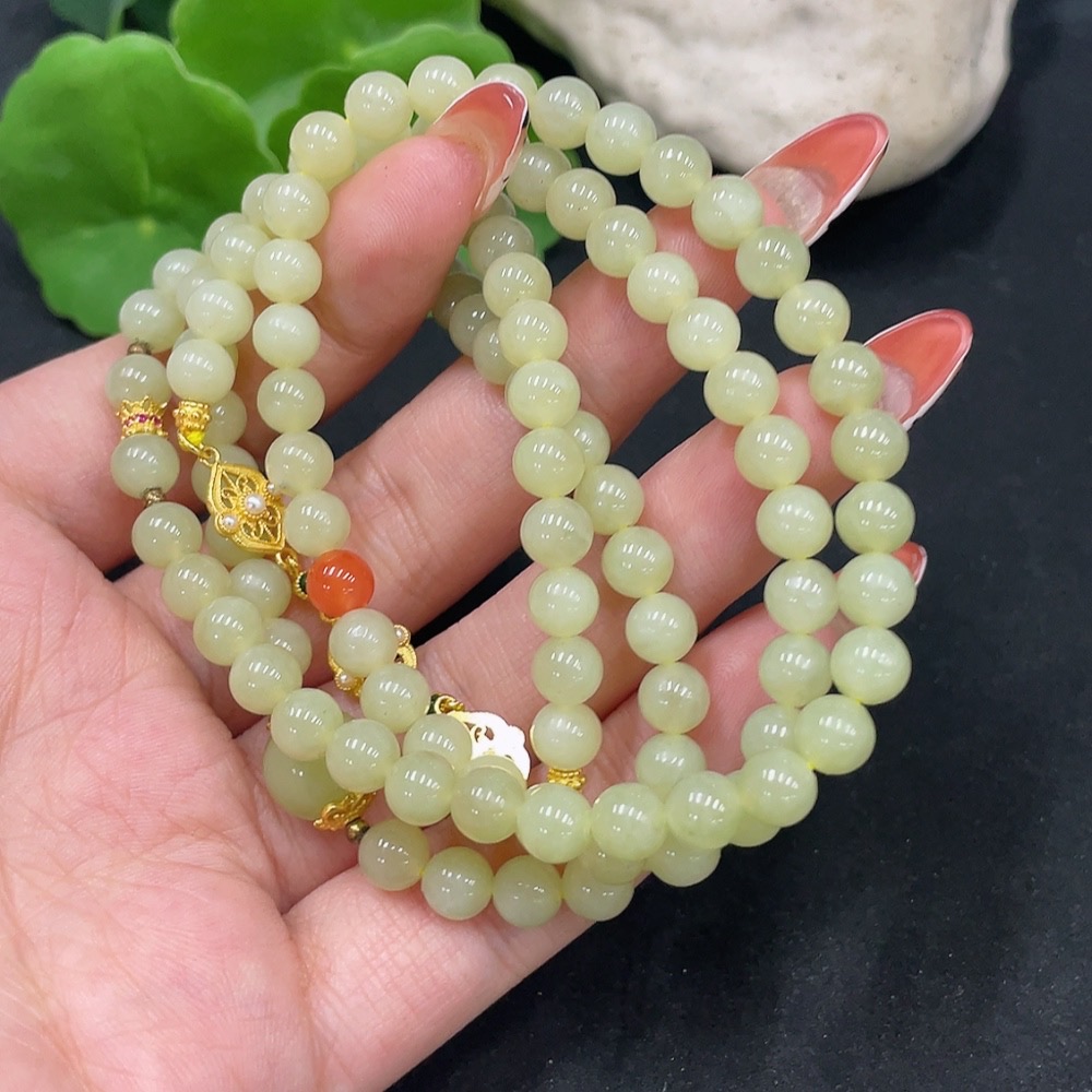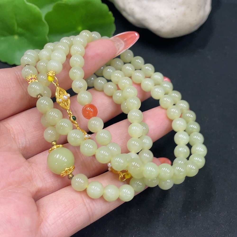 Hetian Jade Bead Necklace Non-Gold About 6mm Total Weight Approx. 40.3g With Southern Red Agate