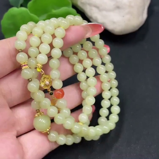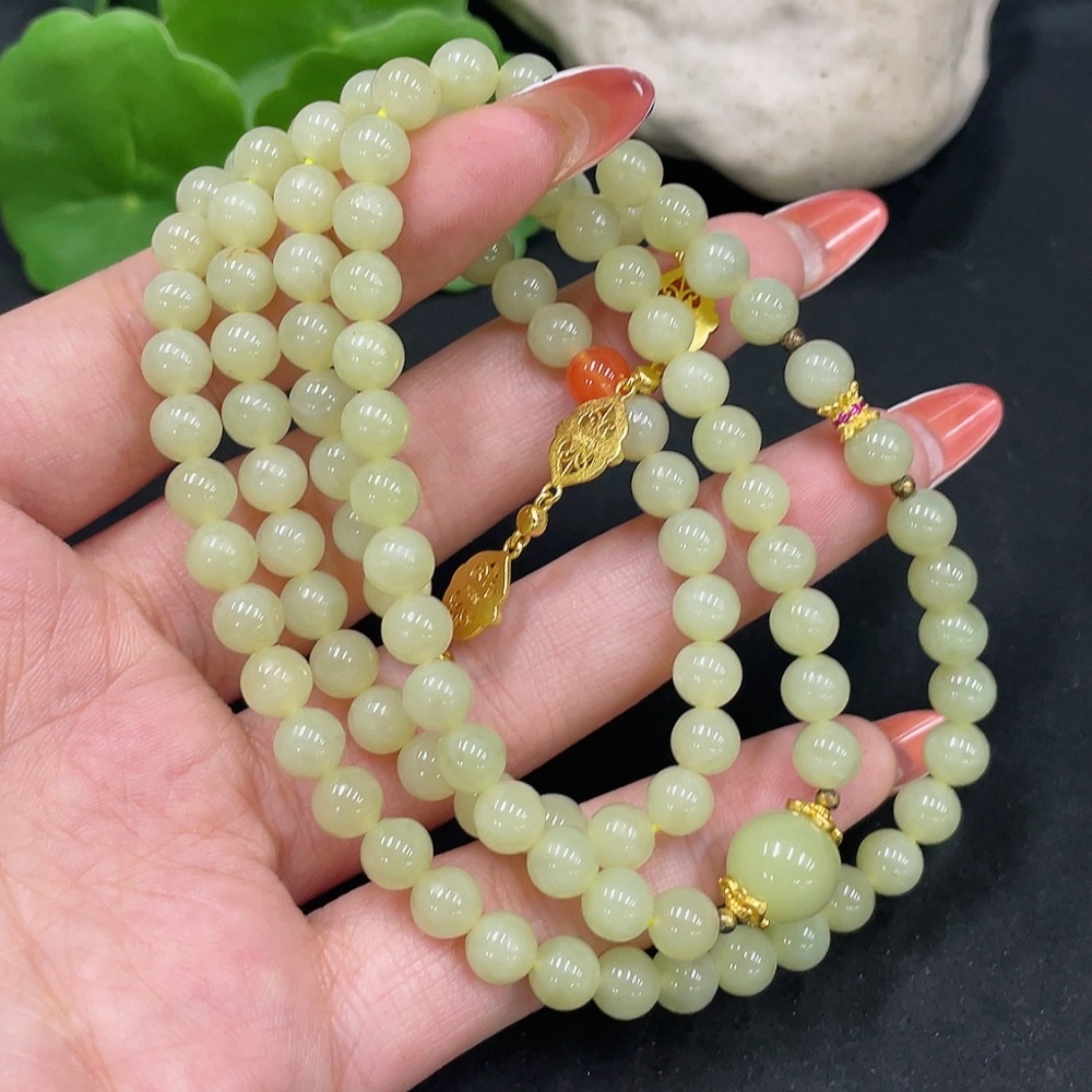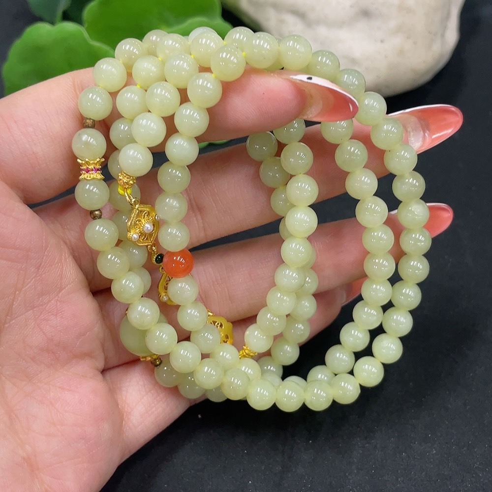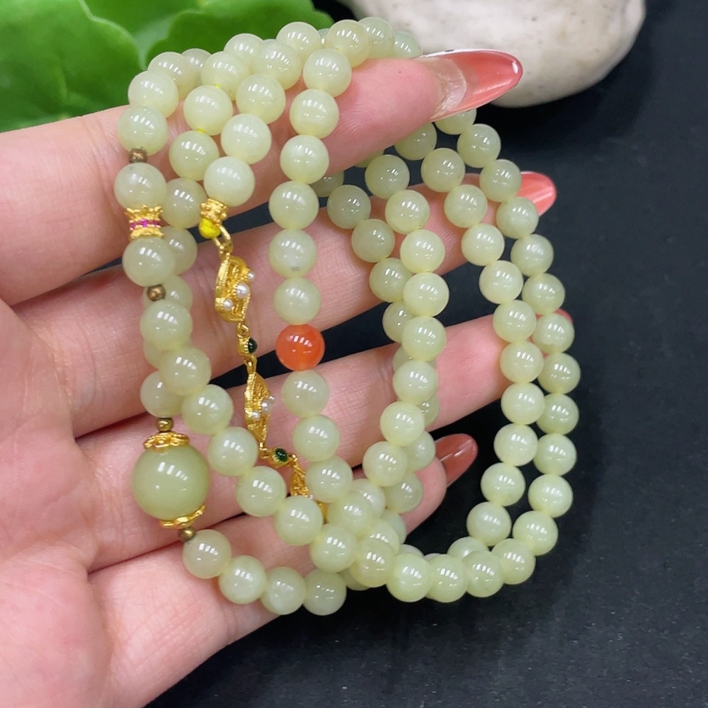 Hetian Jade Bead Necklace Non-Gold About 6mm Total Weight Approx. 40.3g With Southern Red Agate