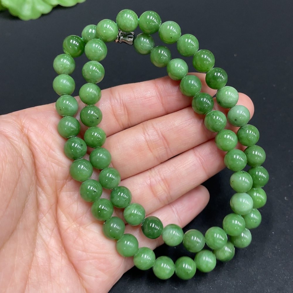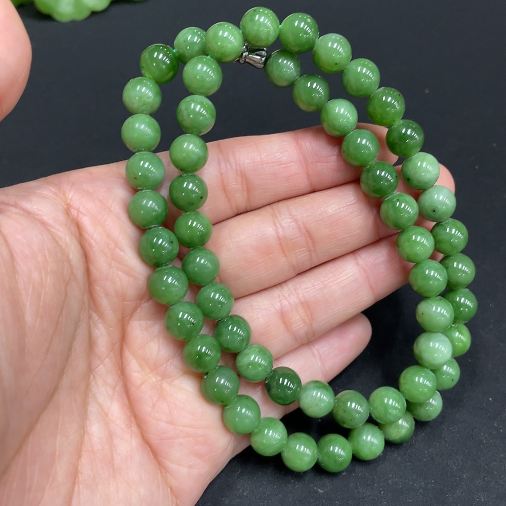 Trezaar - Hetian Jade Bead Necklace, approx. 7.5mm, total weight approx. 42.2g