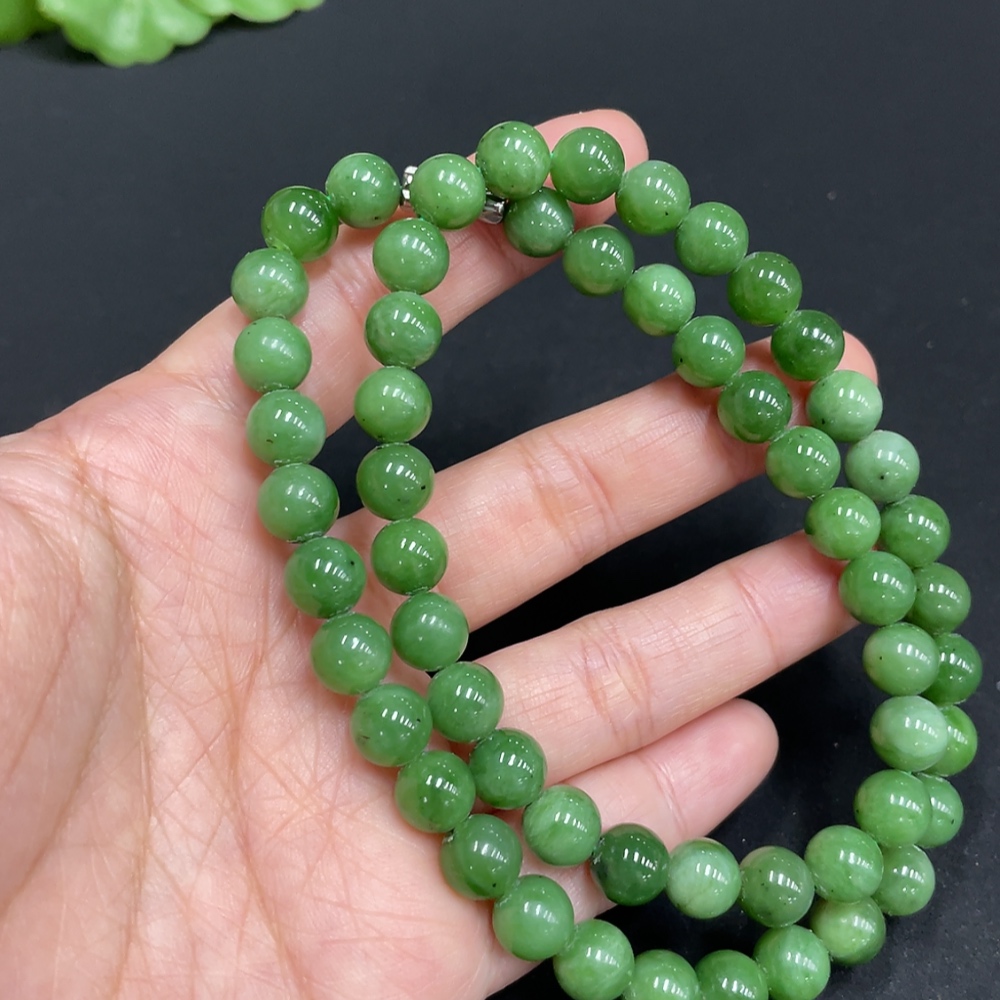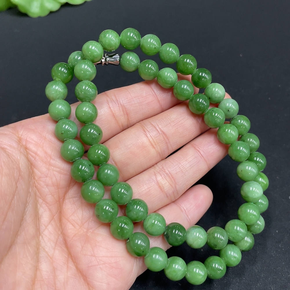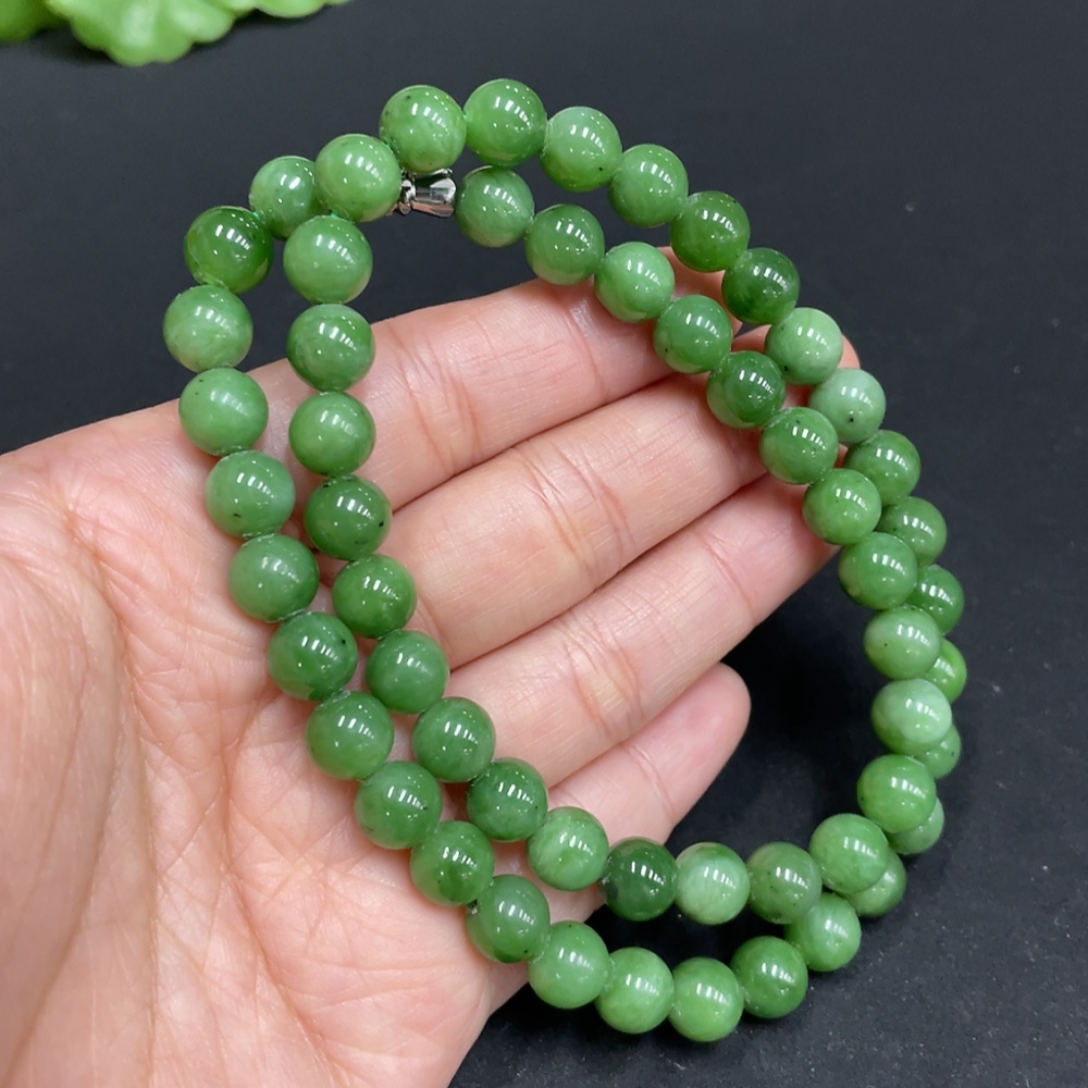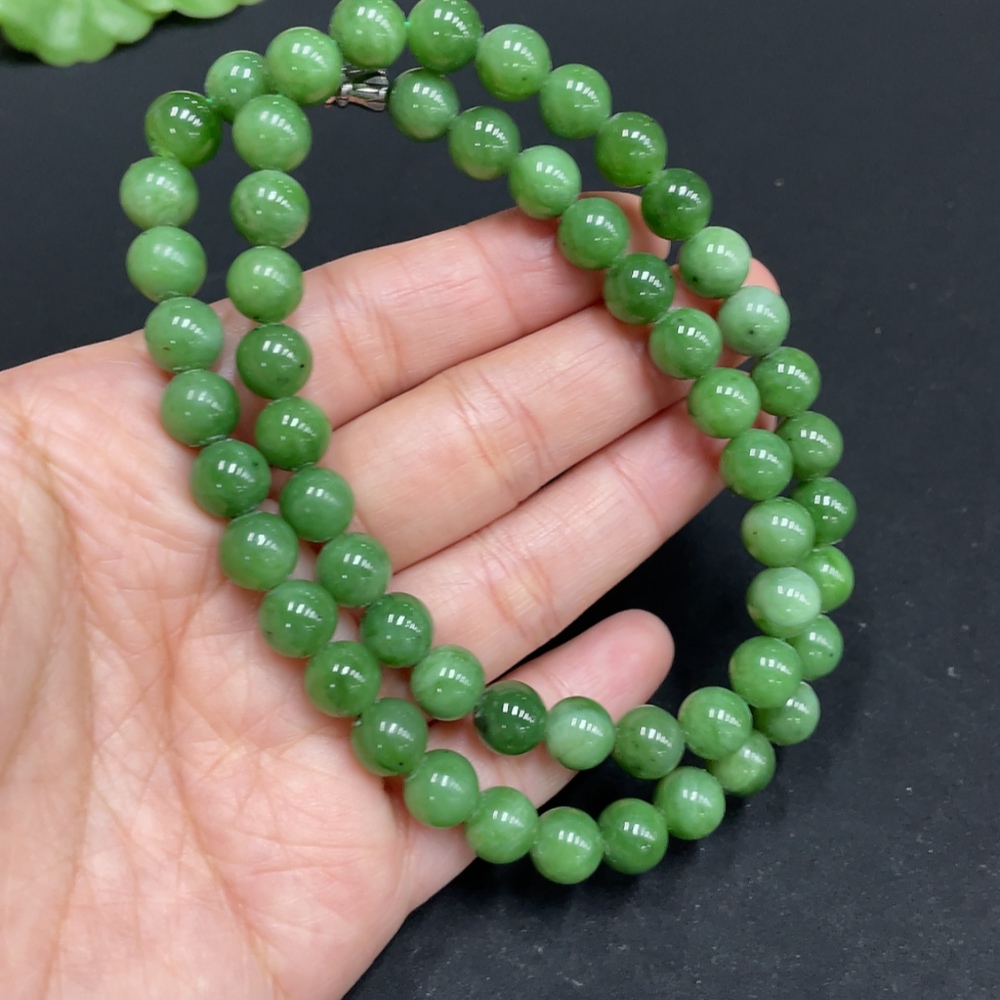 Hetian Jade Bead Necklace, approx. 7.5mm, total weight approx. 42.2g