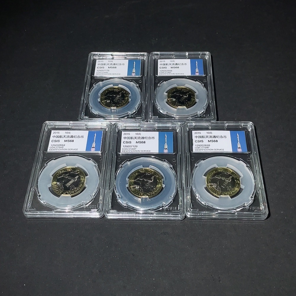 2015 China Aerospace Commemorative Coin Five Pieces Xintai Graded MS68 10 Yuan Face Value