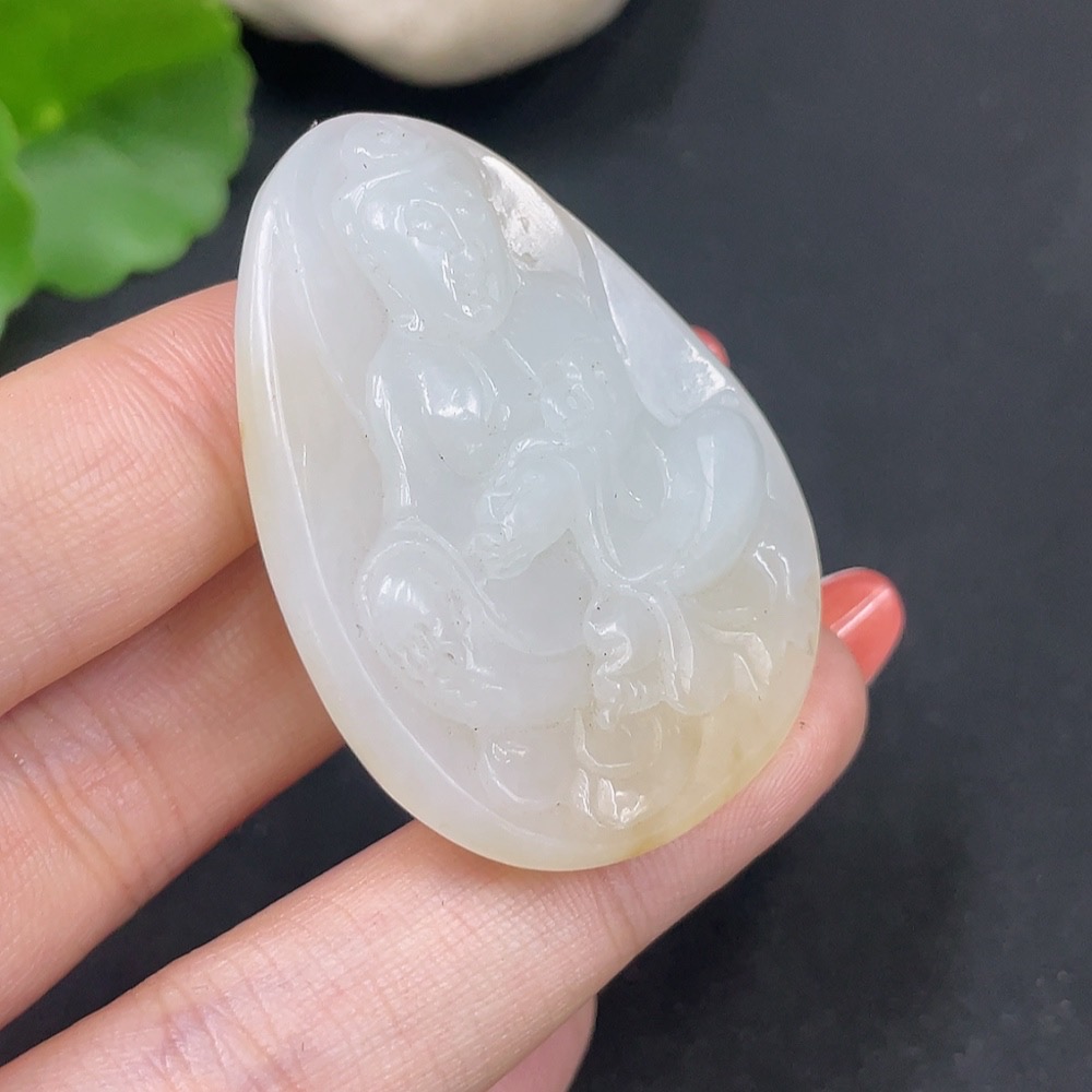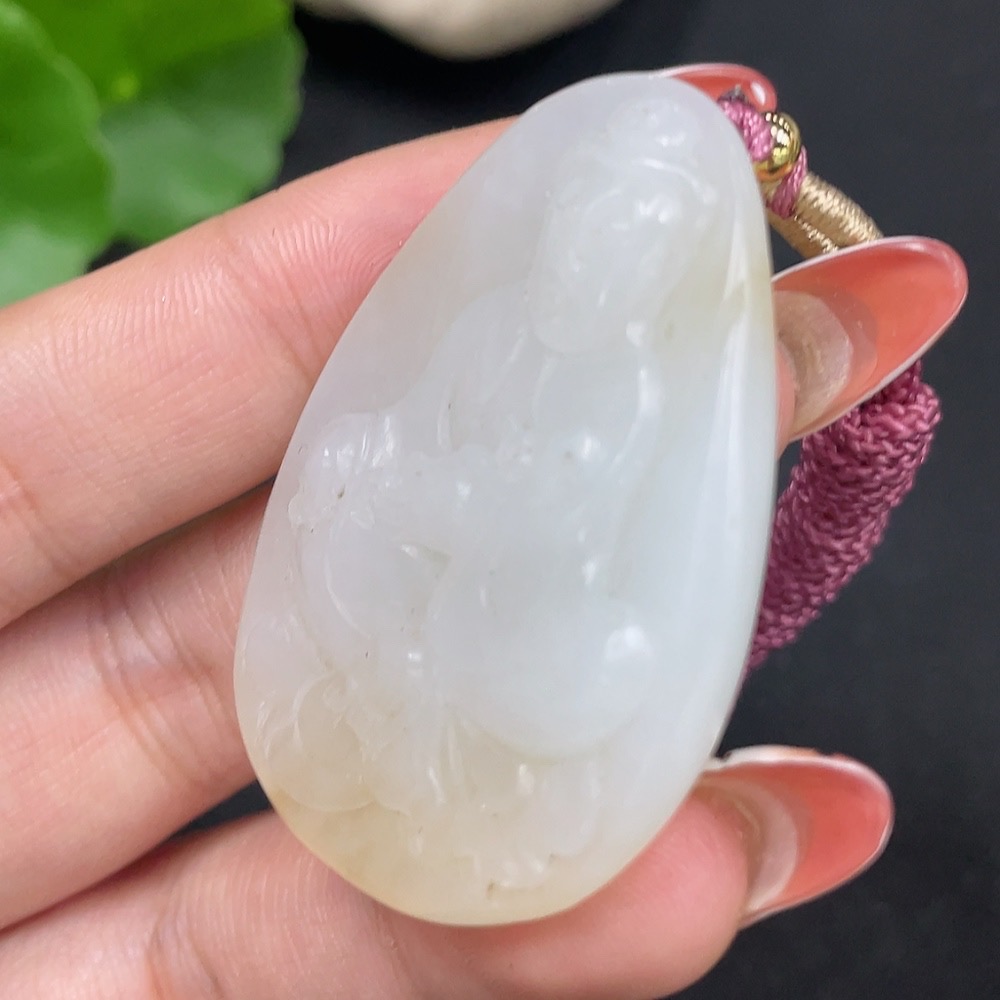 Hetian Jade Pendant Guanyin Total Weight (including rope) 25g