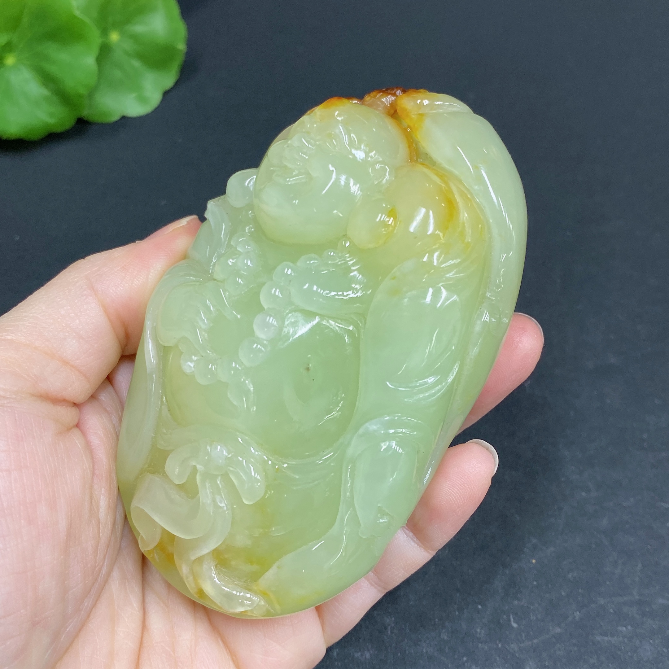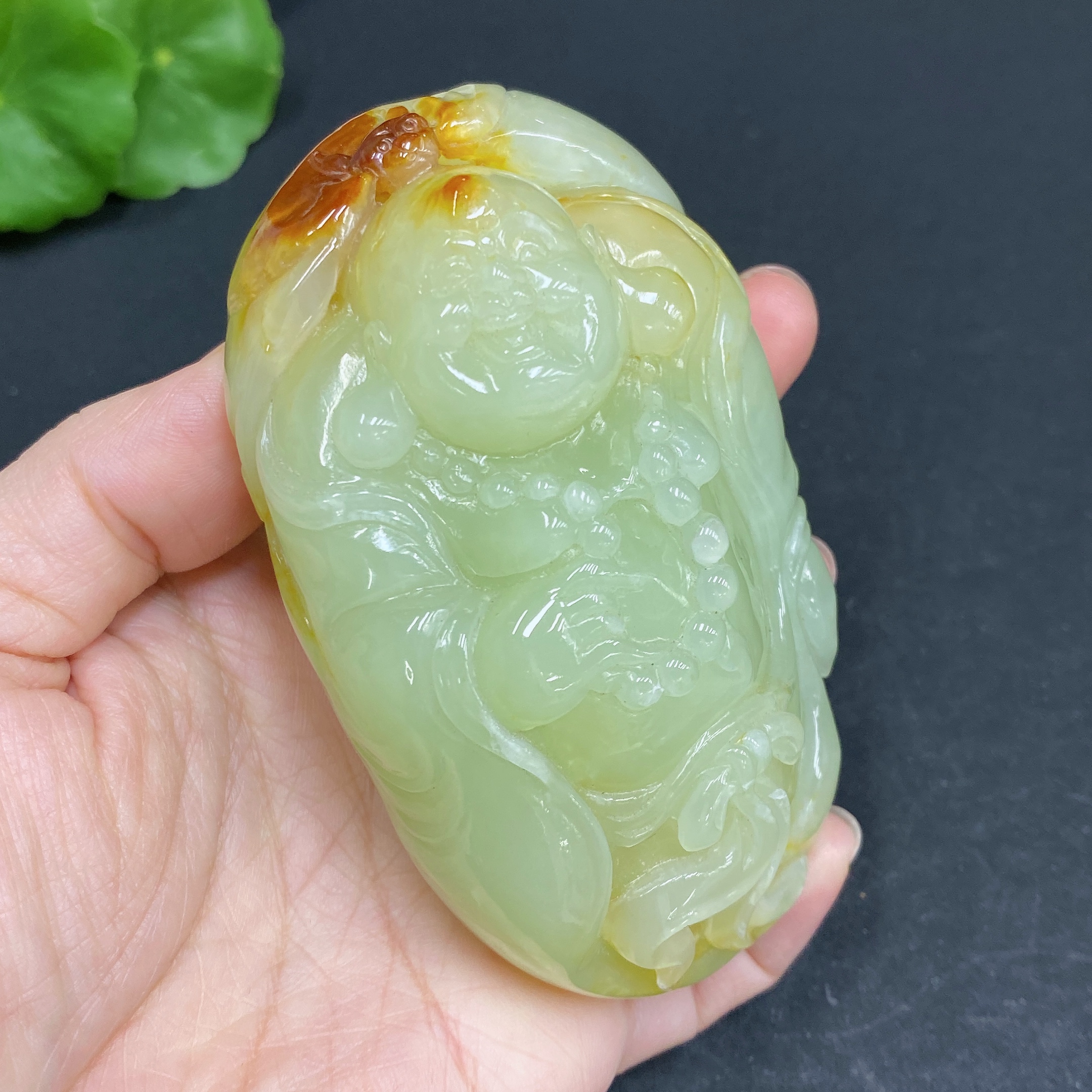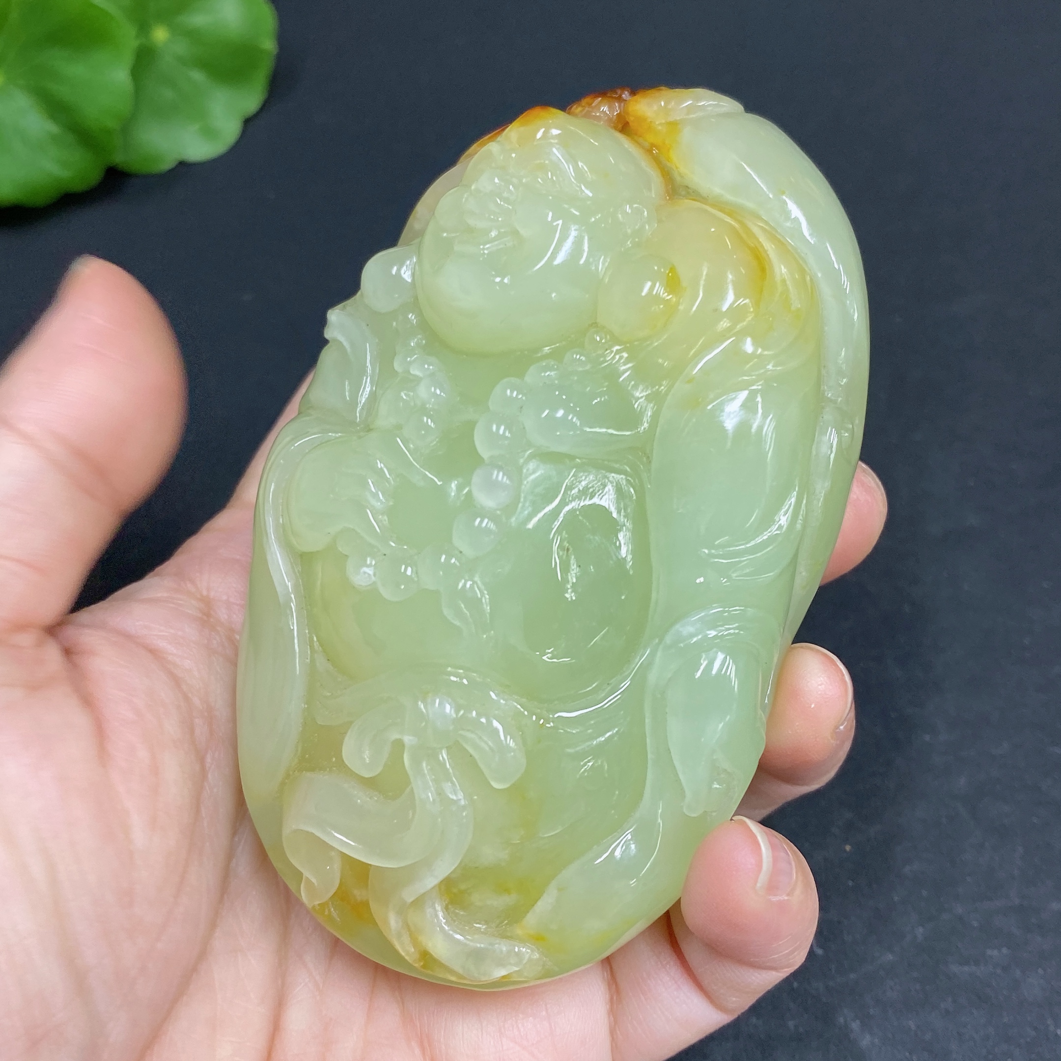 Hetian Jade Handheld Piece Buddha Skin Color Origin Undetermined Total Weight Approx. 298.2g