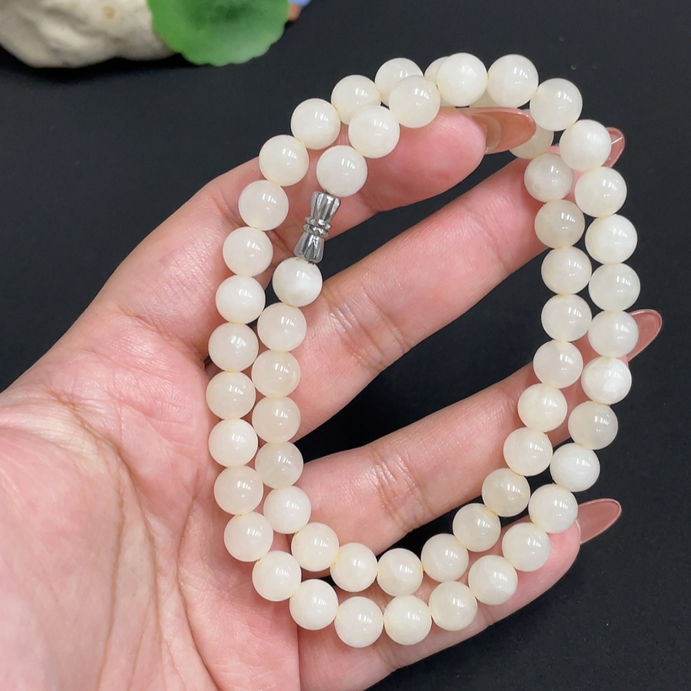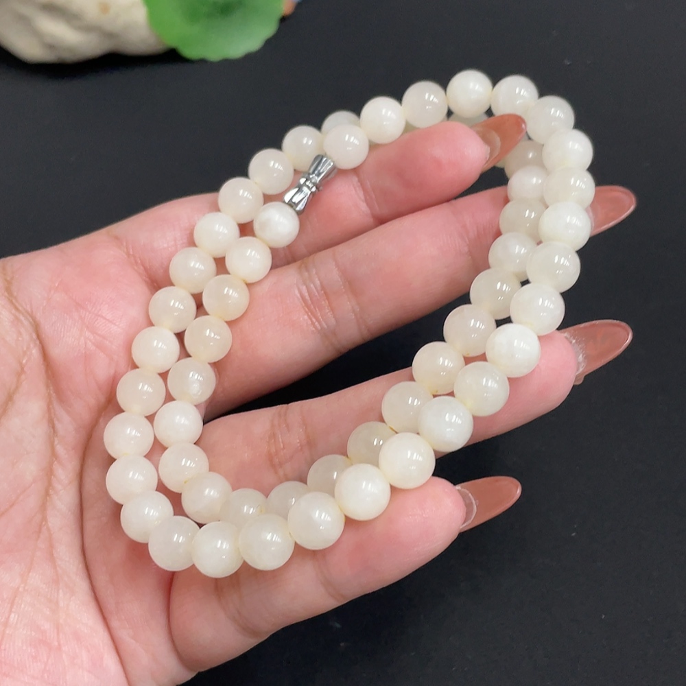 Hetian Jade Bead Necklace, Approx. 7.8 mm, Total Weight Approx. 45g, Containing Other Mineral Components