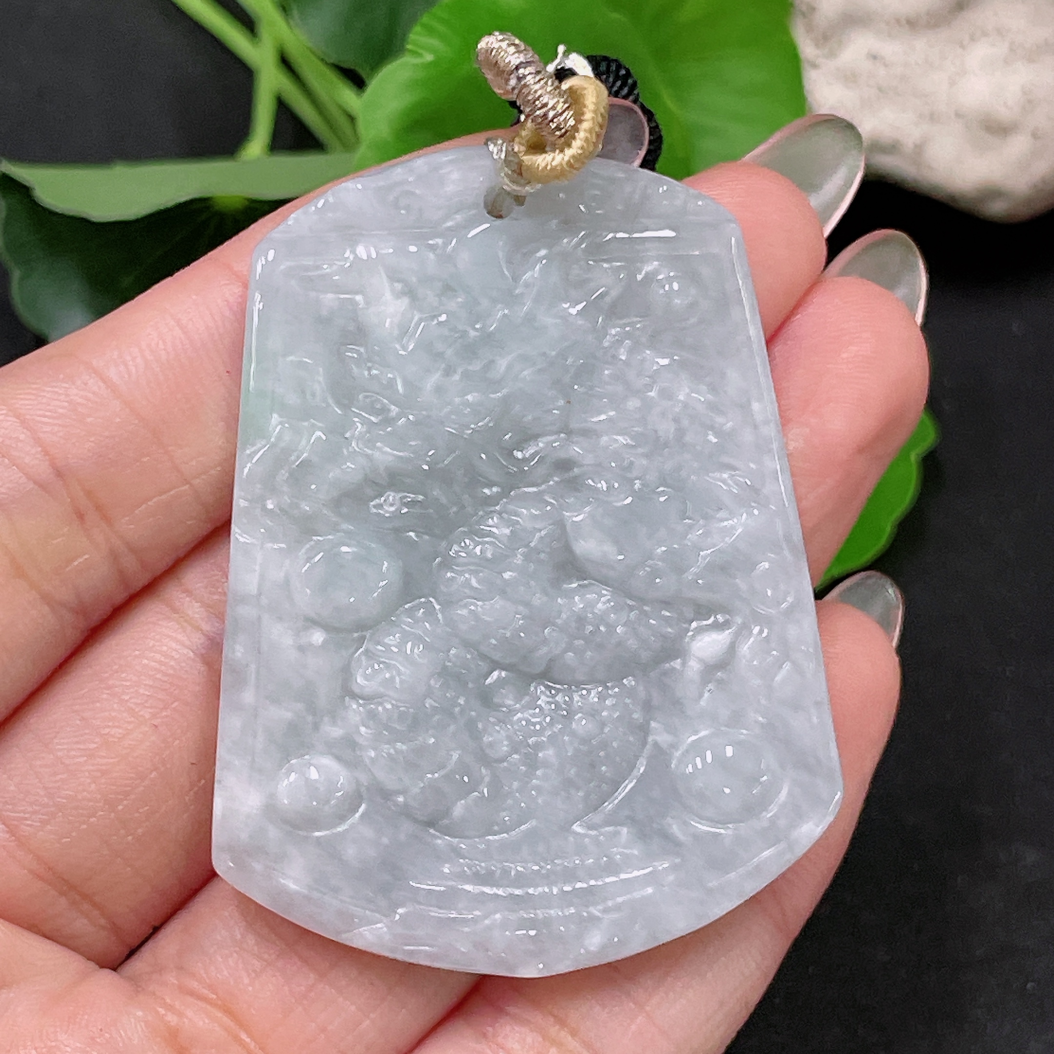 Jadeite Dragon Pendant with Cord, Total Weight Approximately 34.2g