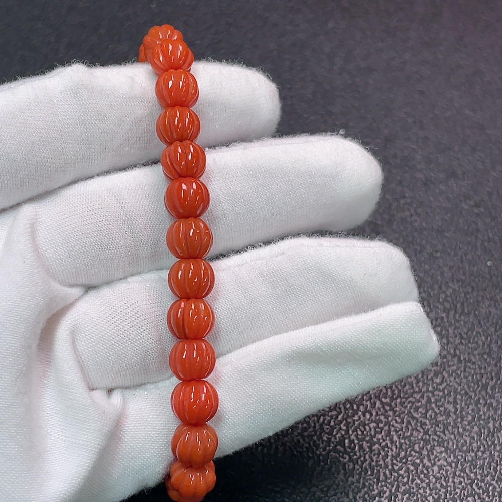 Red Agate Bracelet with Visible Organic Matter, Total Weight Approximately 14.57g, Bead Size About 7.5mm