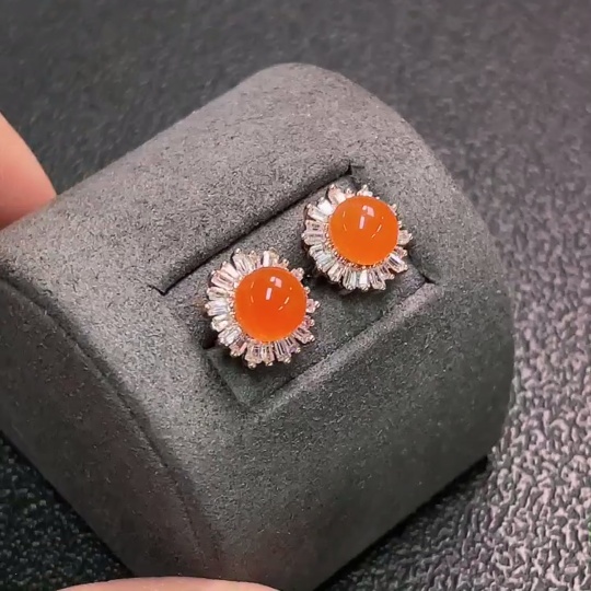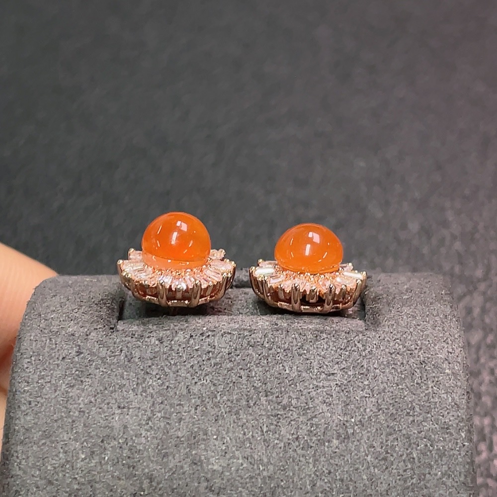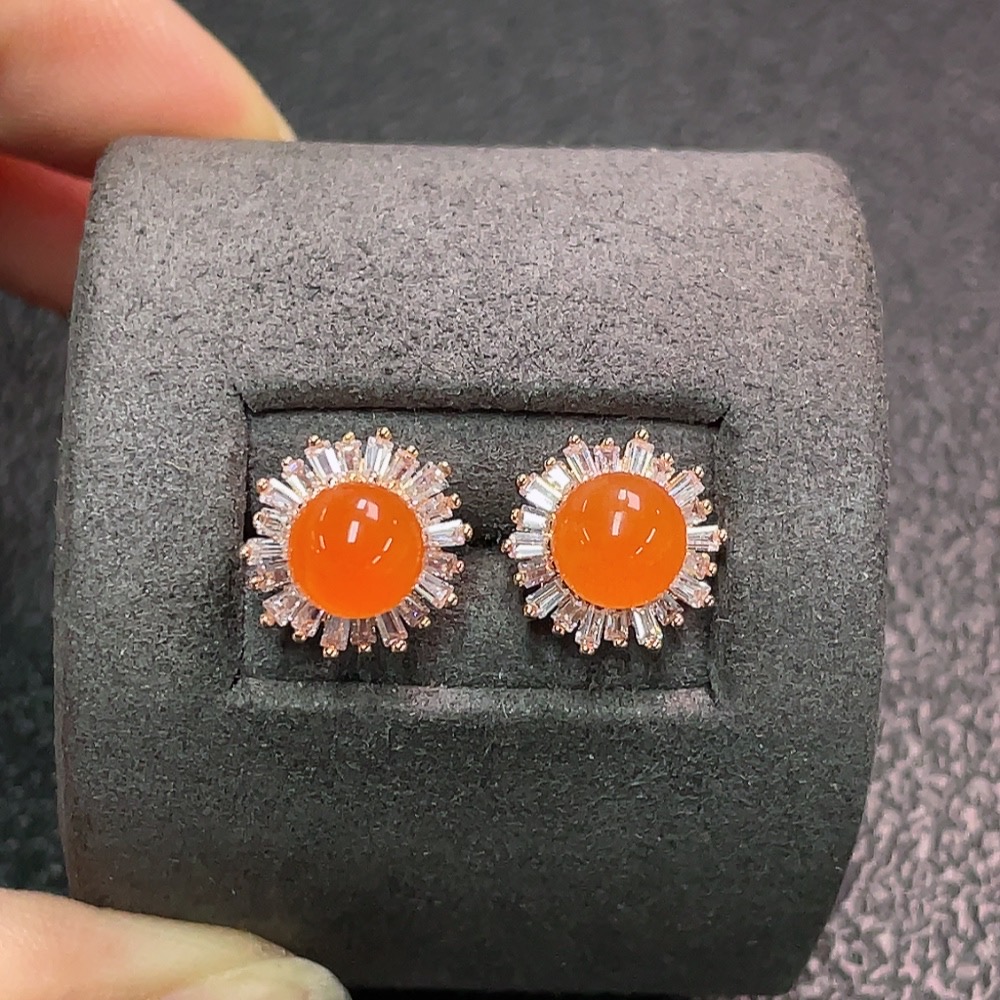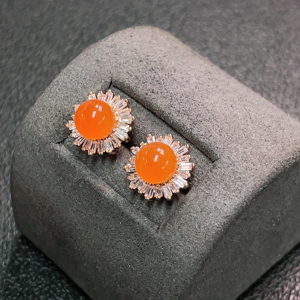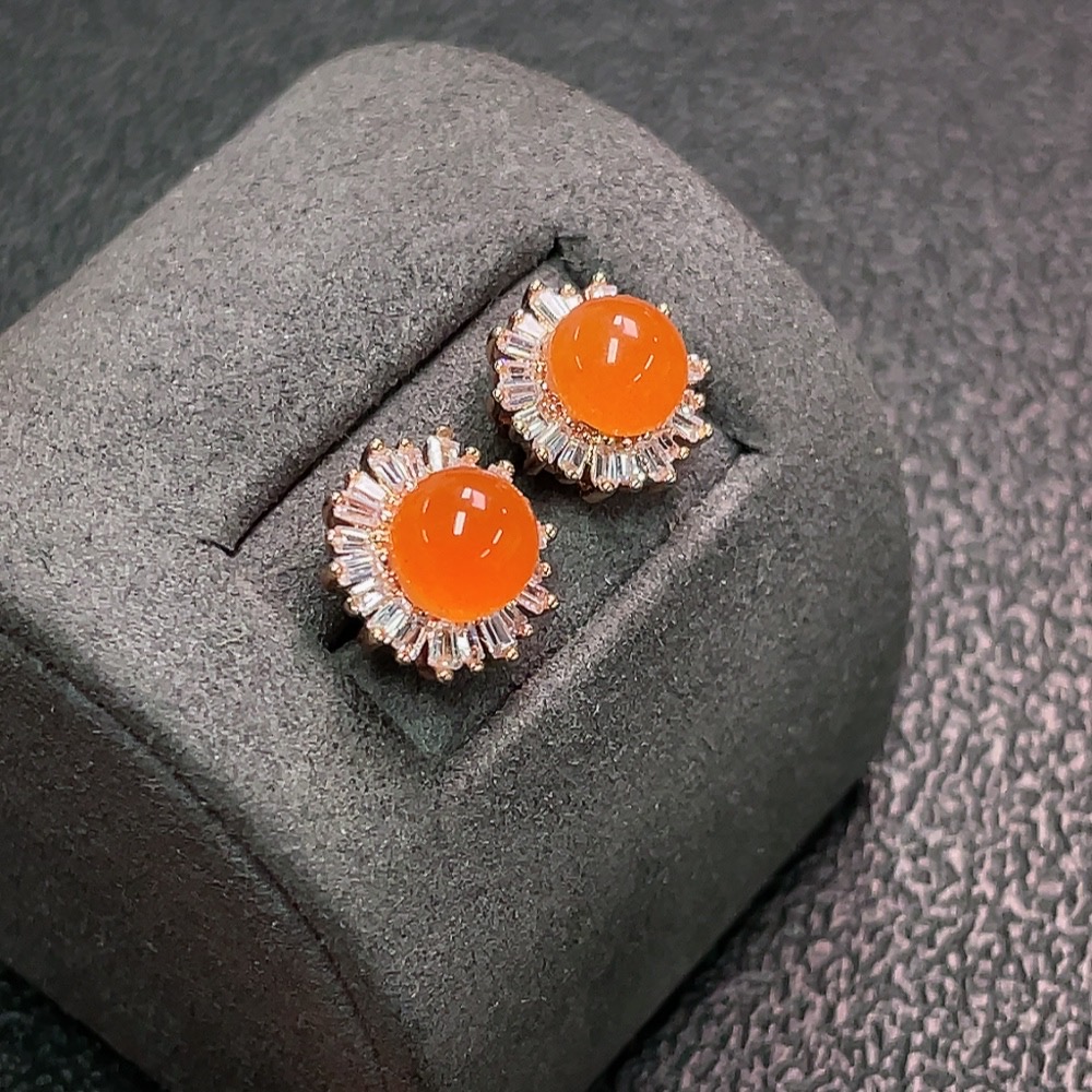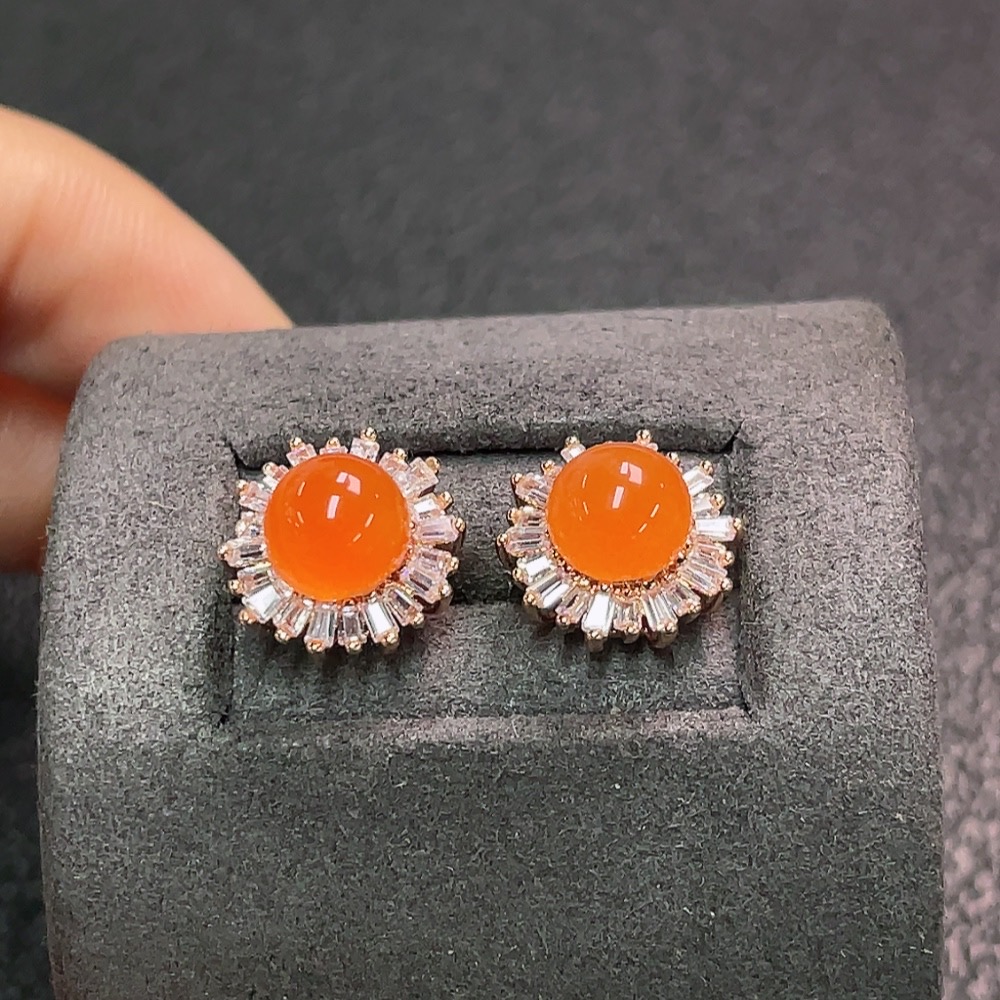 Red Agate Earrings Non-Gold Total Weight Approx. 2.53g Size About 6.4mm