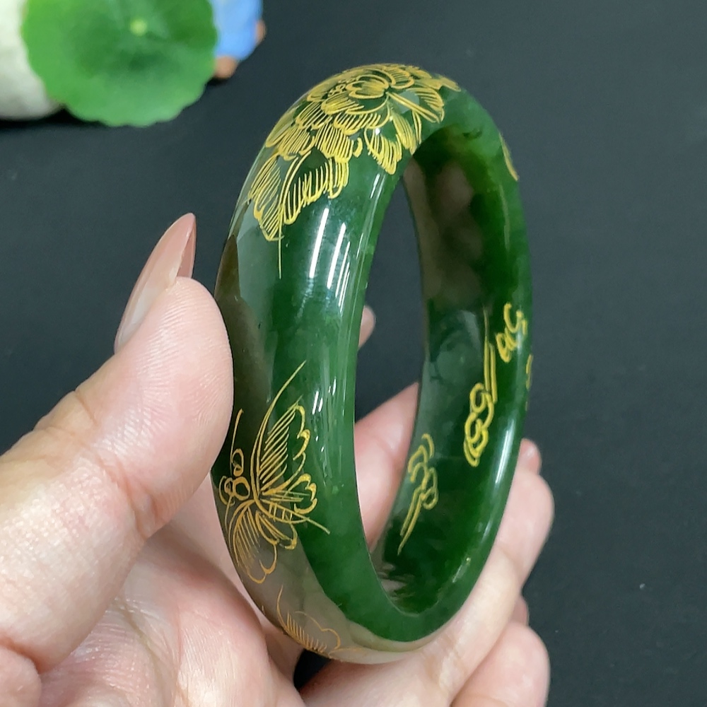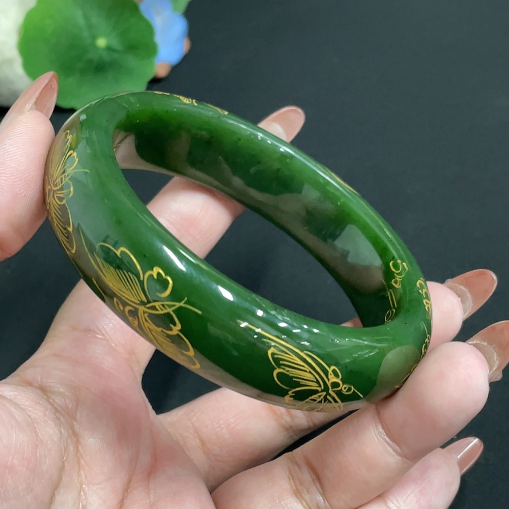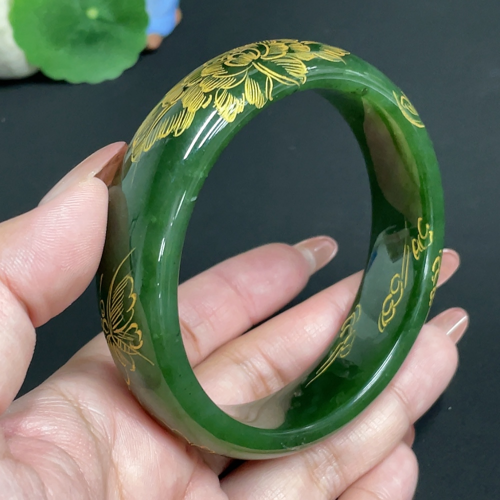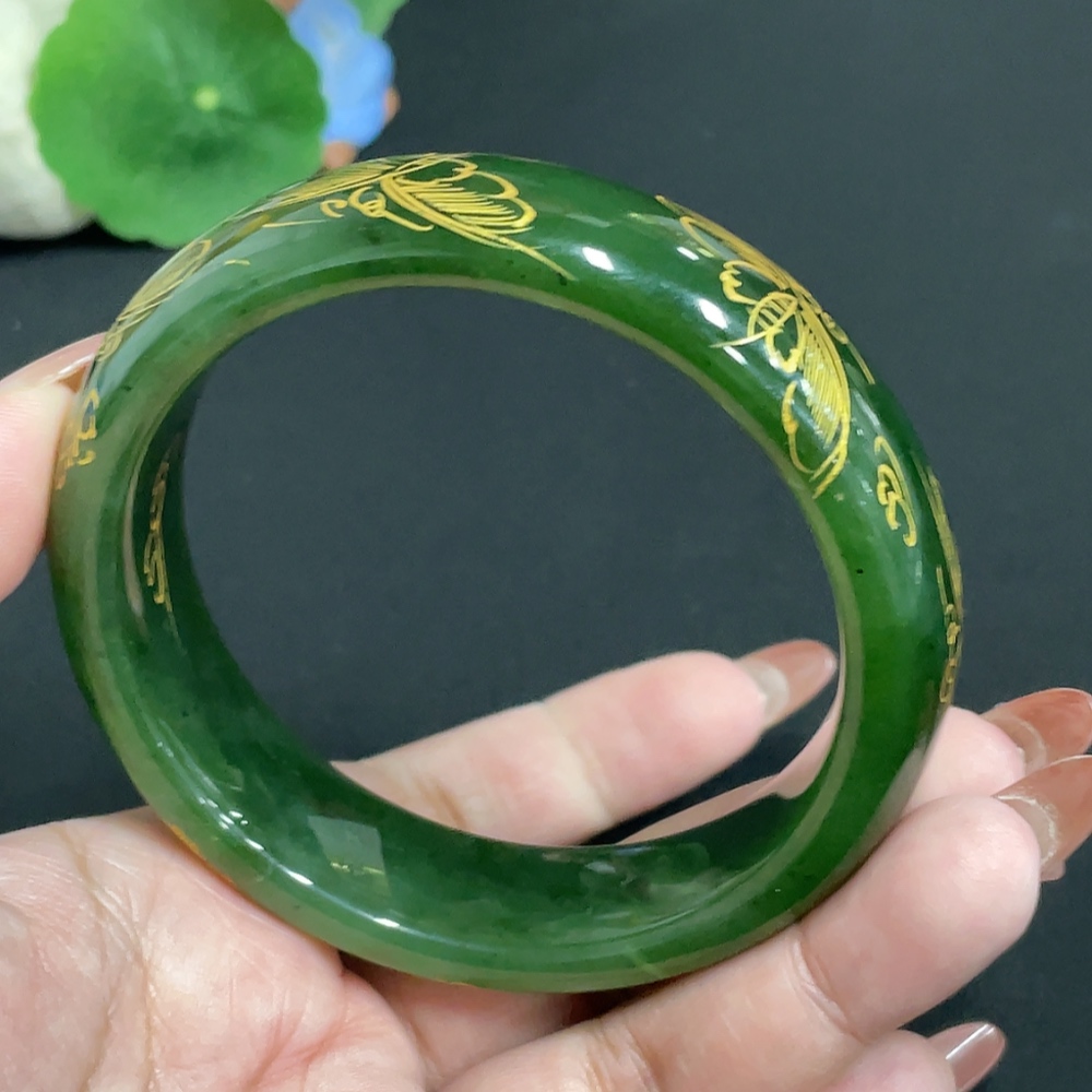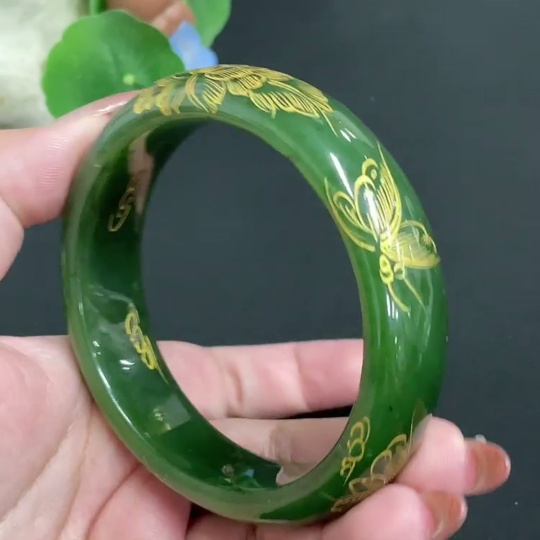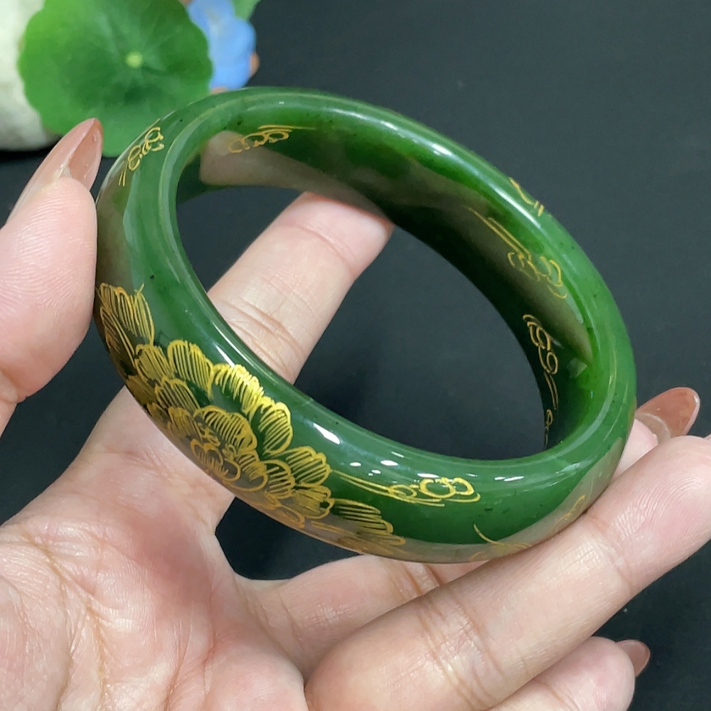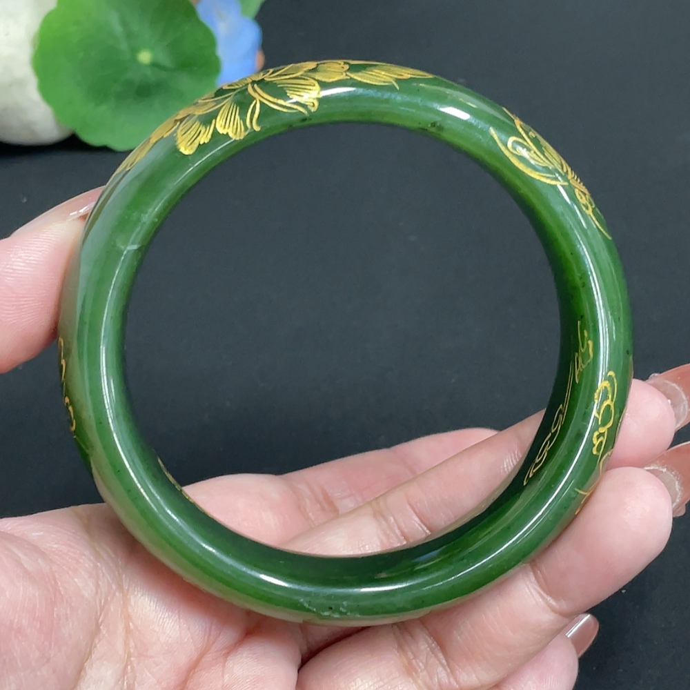 Hetian Jade Green Jade Round Bracelet Size 64.2 Total Weight About 93g