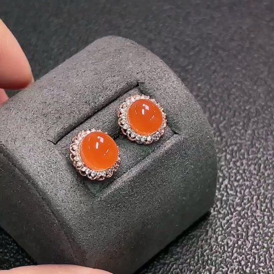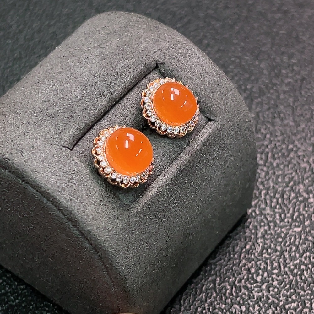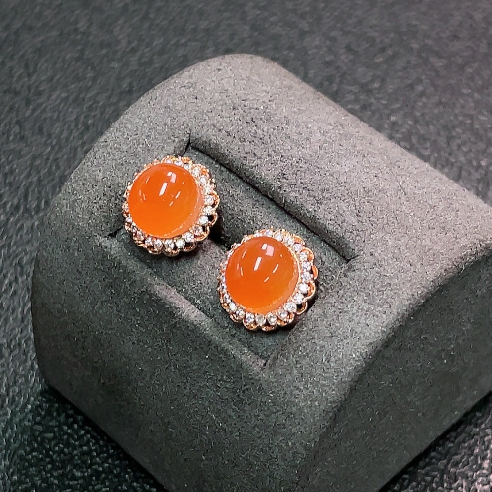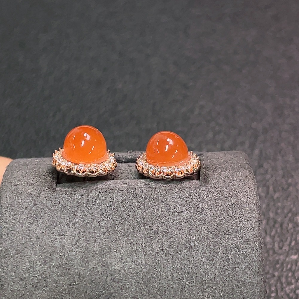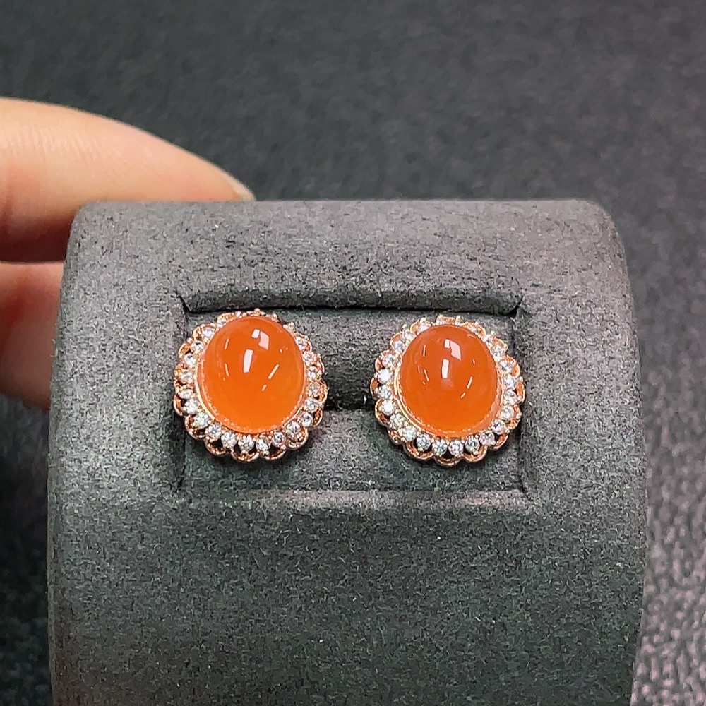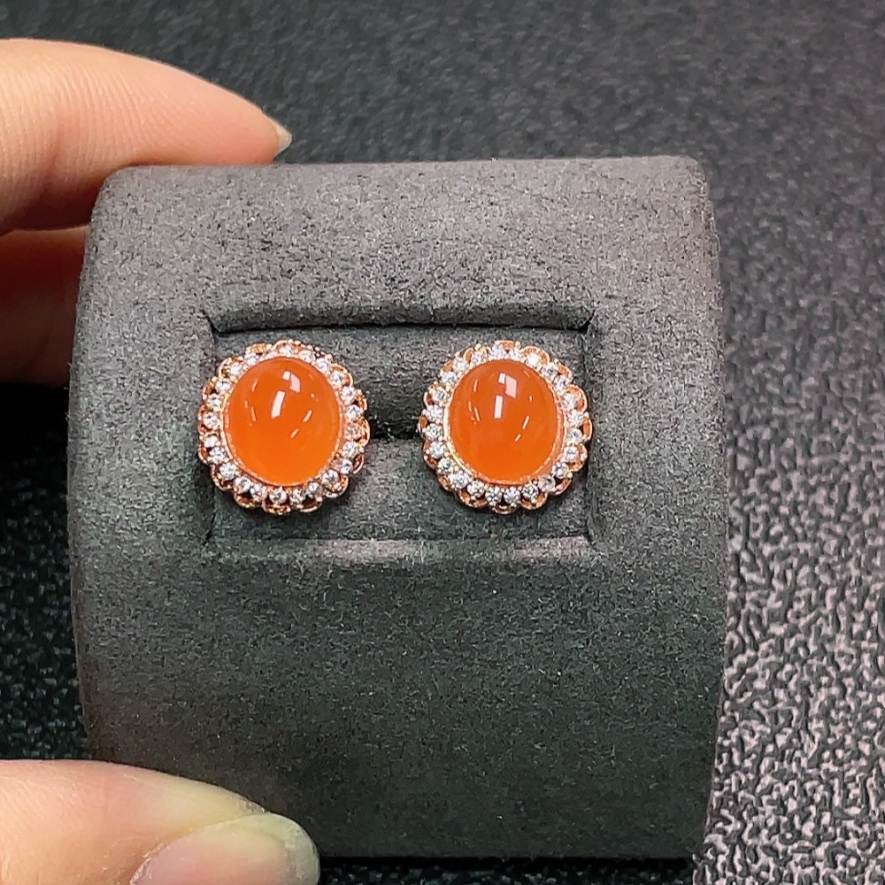 South Red Agate Earrings Non-Gold Total Weight Approx. 2.24g Size 7.7*6.8mm
