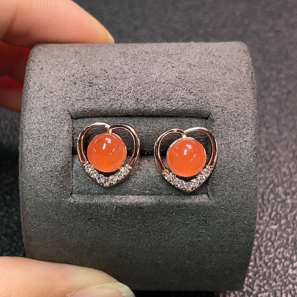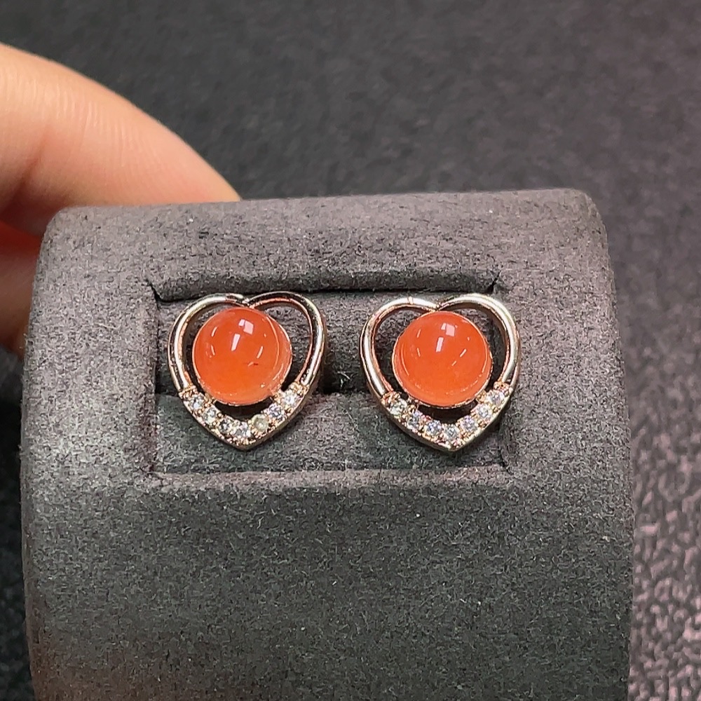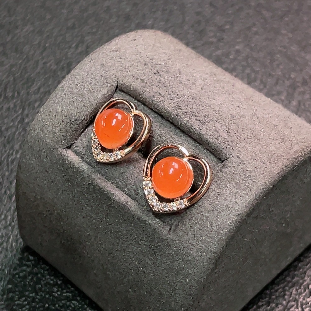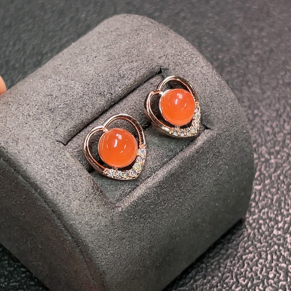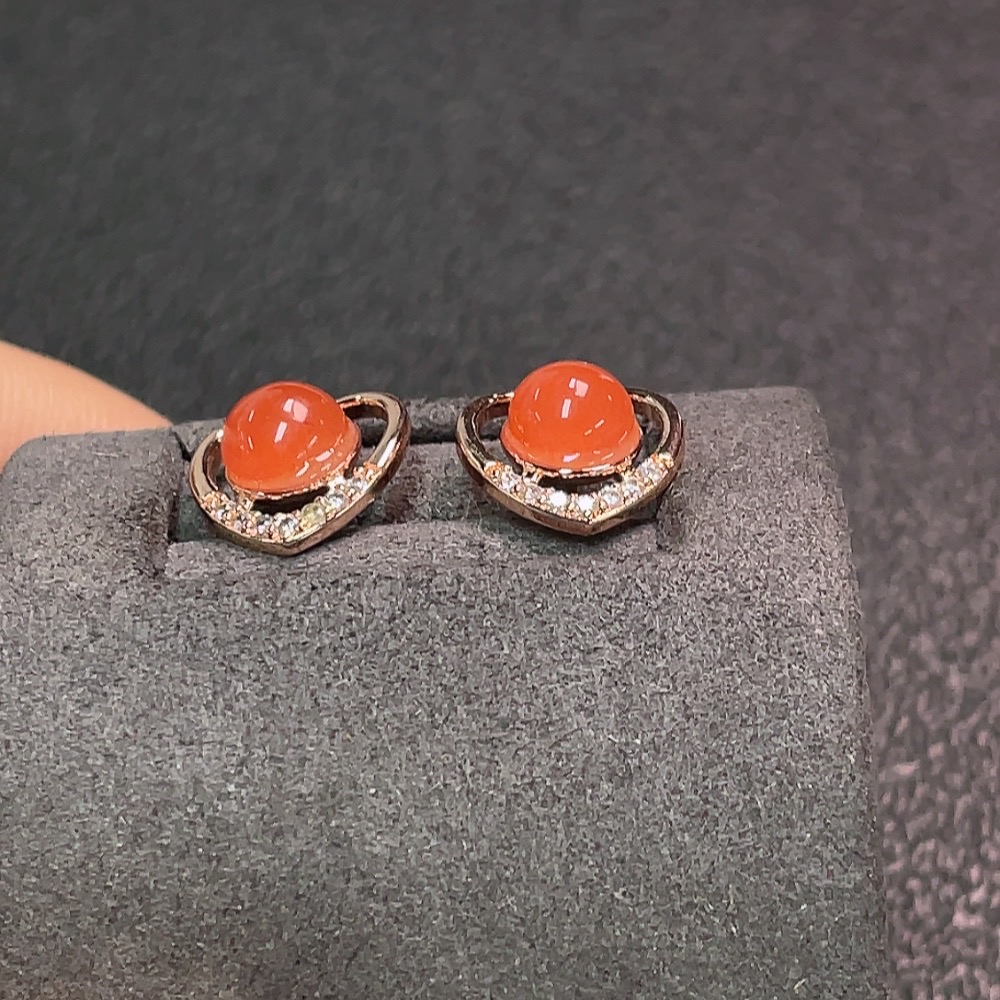 Red Agate Earrings Non-Gold Total Weight Approx.1.77g Size 6.3mm